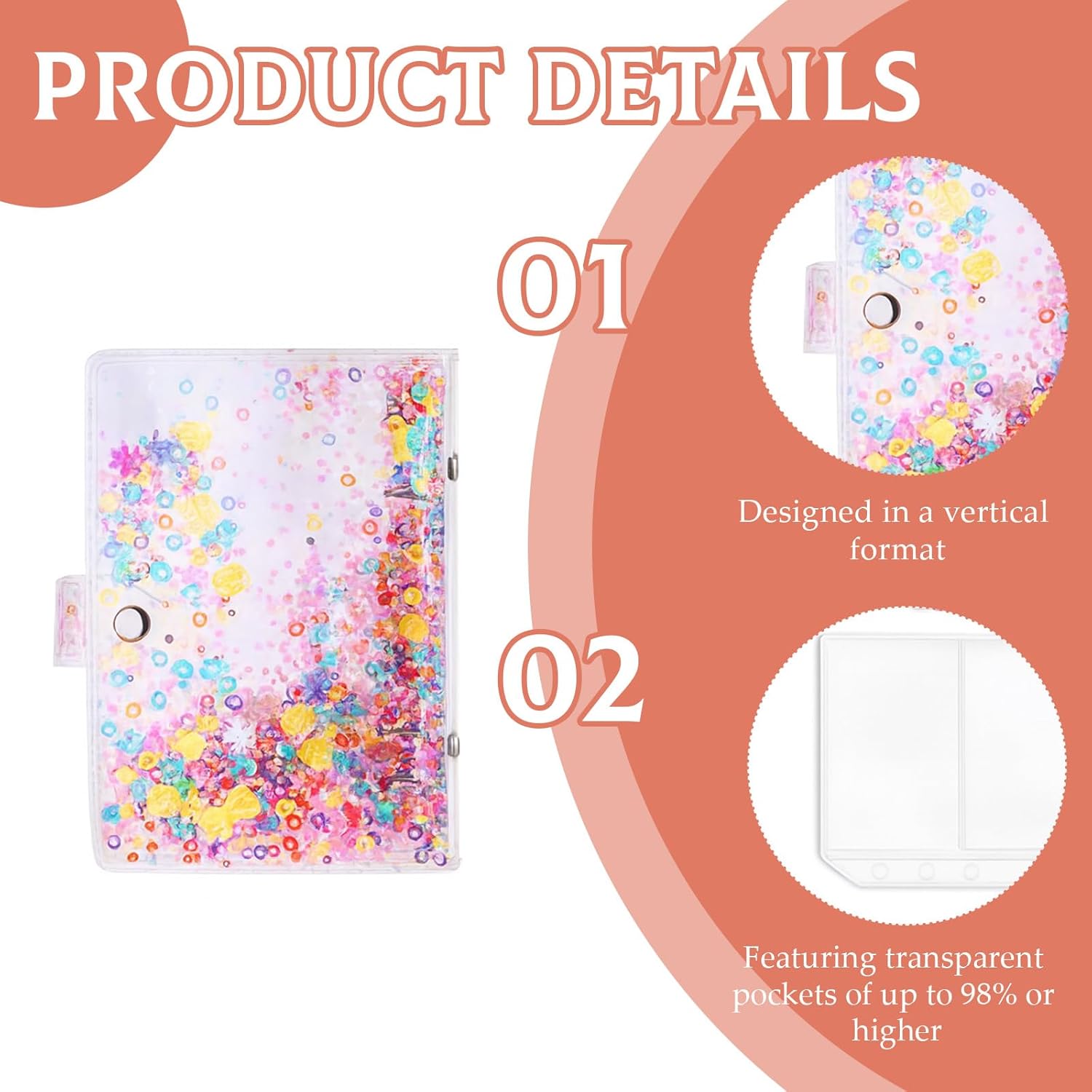 Contenuto del set: riceverai un raccoglitore a sei anelli, otto tasche trasparenti con cerniera, una tasca per carte, due tasche trasparenti con doppio slot per schede, un righello a forma di cuore e un'etichetta autoadesiva. Design unico: il mini album presenta elementi di design unici come conchiglie e stelle galleggianti, paillettes colorate o disegni semplici ed eleganti, creando un'atmosfera unica e un aspetto accattivante. Grande capacità di archiviazione: le pagine per raccoglitori di carte fotografiche sono disposte strategicamente per ospitare più foto o carte, fornendo ampio spazio per organizzare momenti e oggetti preziosi. È adatto per una vasta gamma di collezioni ed esposizioni. Materiali di alta qualità: il mini album fotografico è realizzato con materiali di alta qualità come PP, durevoli, impermeabili, resistenti agli odori e atossici, garantendo un uso stabile a lungo termine. Comodo utilizzo: il design ad anello per piccoli album fotografici rende facile aggiungere, rimuovere e sostituire le pagine. Compatto e flessibile, è facile da usare e permette di creare un album personalizzato.