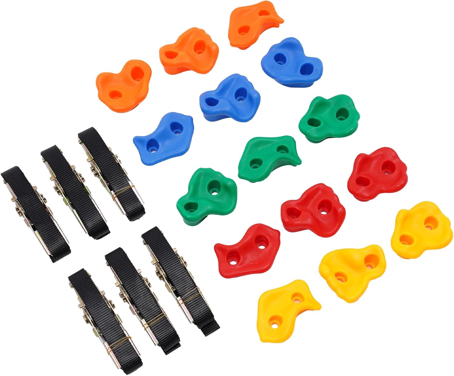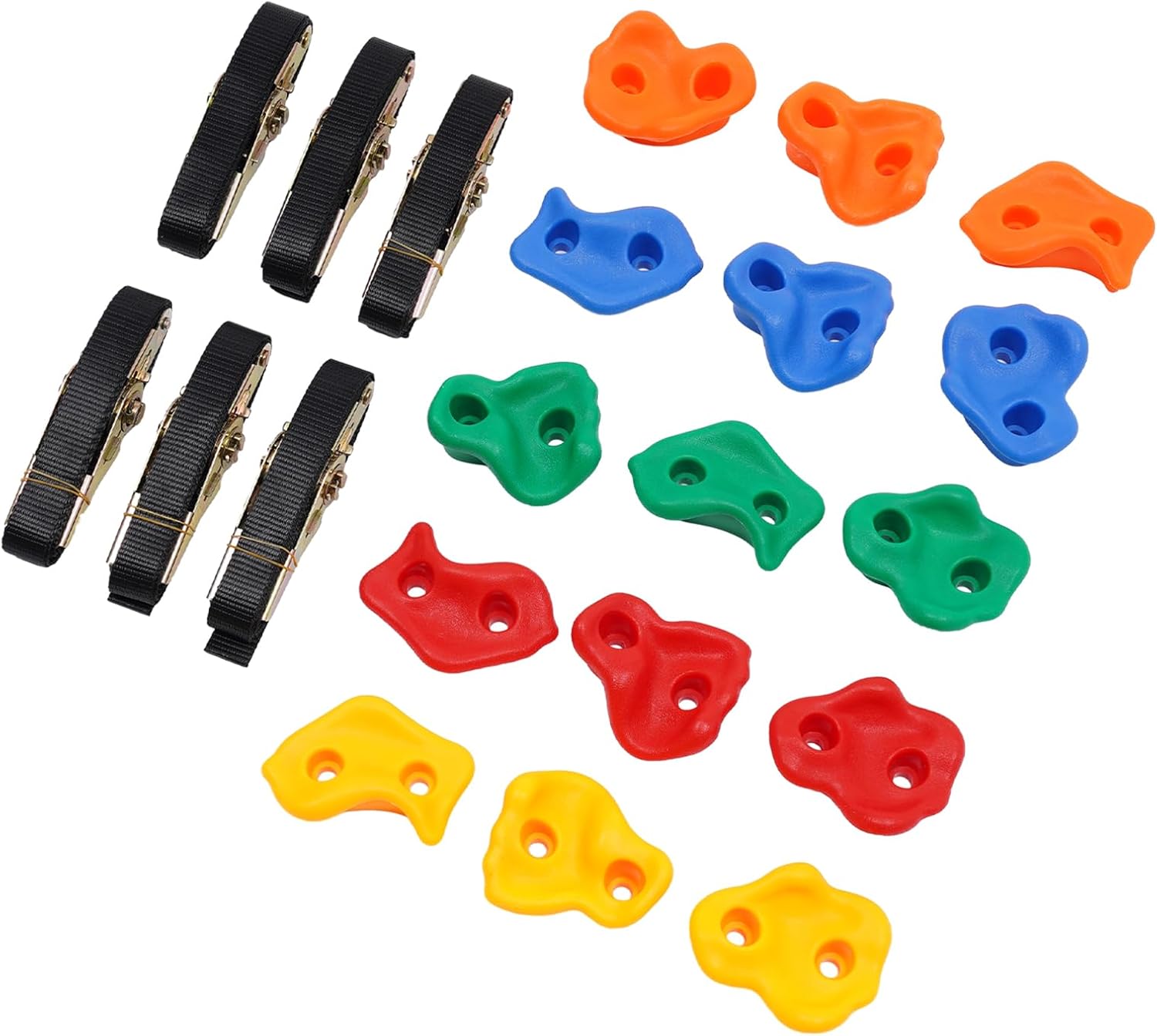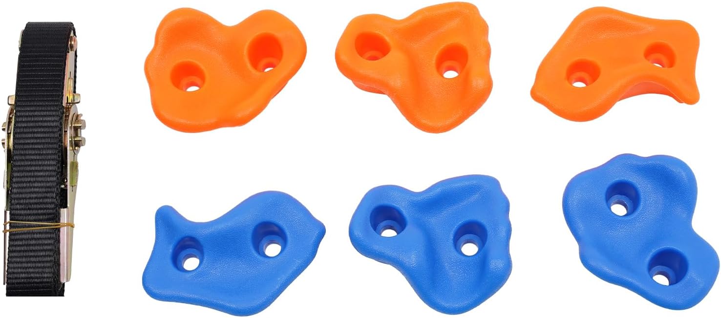 MATERIALE DI ALTA QUALITÀ: maniglie da arrampicata realizzate in robusto materiale PE mediante stampaggio a iniezione, queste maniglie resistono a un carico fino a 100 kg e sono durevoli per uso interno ed esterno, senza deformazioni o corrosione Goditi le attività di arrampicata: 15 maniglie per arrampicata in diverse misure per bambini. Il set con 15 manici e 6 cinghie a cricchetto offre molteplici possibilità per vari percorsi di arrampicata che risvegliano e promuovono l'interesse e la gioia di arrampicarsi nei bambini Promuove la salute fisica e mentale: le maniglie per le pareti rocciose tengono i bambini lontani dagli schermi, rafforzano la loro fiducia e la loro resistenza attraverso emozionanti avventure di arrampicata e garantiscono così il tempo libero attivo che rassicura i genitori DIVERTIMENTO E COMFORT: maniglie da arrampicata facili da montare su tavole con spessore di 1,5-3 cm, consente percorsi creativi e selezione dei colori per sviluppare le capacità sportive del bambino e garantire la massima sicurezza e comfort durante l'arrampicata FACILE DA INSTALLARE E PULIRE: le maniglie da arrampicata per bambini con peso ridotto di 2,8 kg e dimensioni compatte di 11 x 9 cm le maniglie possono essere montate e smontate rapidamente, mentre la superficie liscia consente una facile pulizia con acqua o panno
