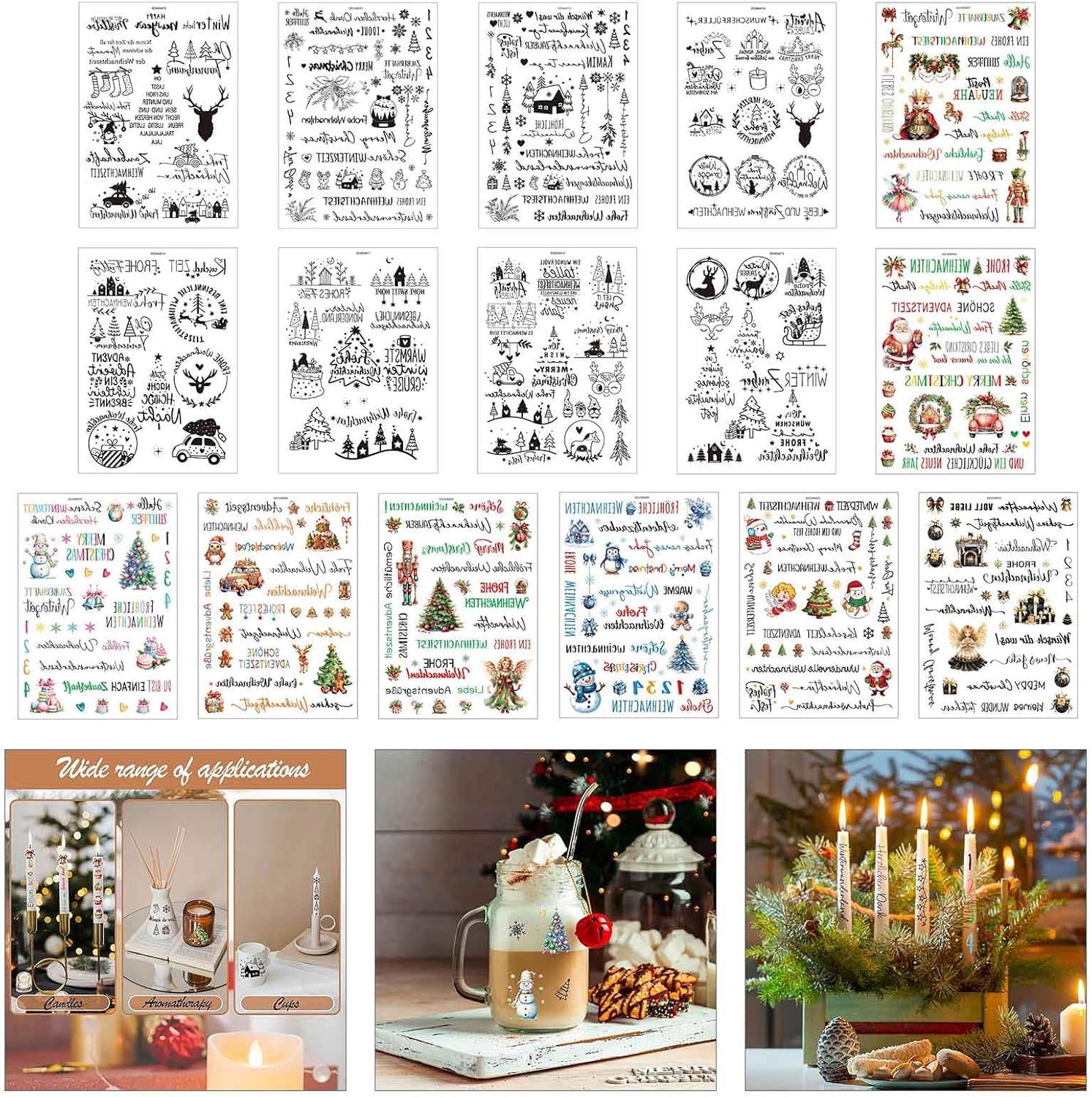 Con istruzioni facili da seguire, questi adesivi offrono uno sbocco creativo sia per principianti che per decoratori esperti, rendendo un'aggiunta essenziale alle tue forniture per feste e progetti artigianali per festival Adatto per gli appassionati di artigianato e chiunque cerchi di aggiungere un tocco individuale alle loro decorazioni natalizie, soprattutto per coloro che amano creare regali e decorazioni per la casa Questi adesivi sono progettati con una stampa invertita per garantire durata e protezione, consentendo alla pellicola di rimanere saldamente sulla parte anteriore per una decorazione stabile Per l'uso durante Natale, Avvento o qualsiasi occasione di festival in cui si desidera migliorare l'atmosfera con disegni personalizzati Trasforma il tuo in ornamento da festival con questa confezione da 16 adesivi natalizi, caratterizzati da molteplici motivi unici utilizzando una tecnologia di stampa cubica avanzata