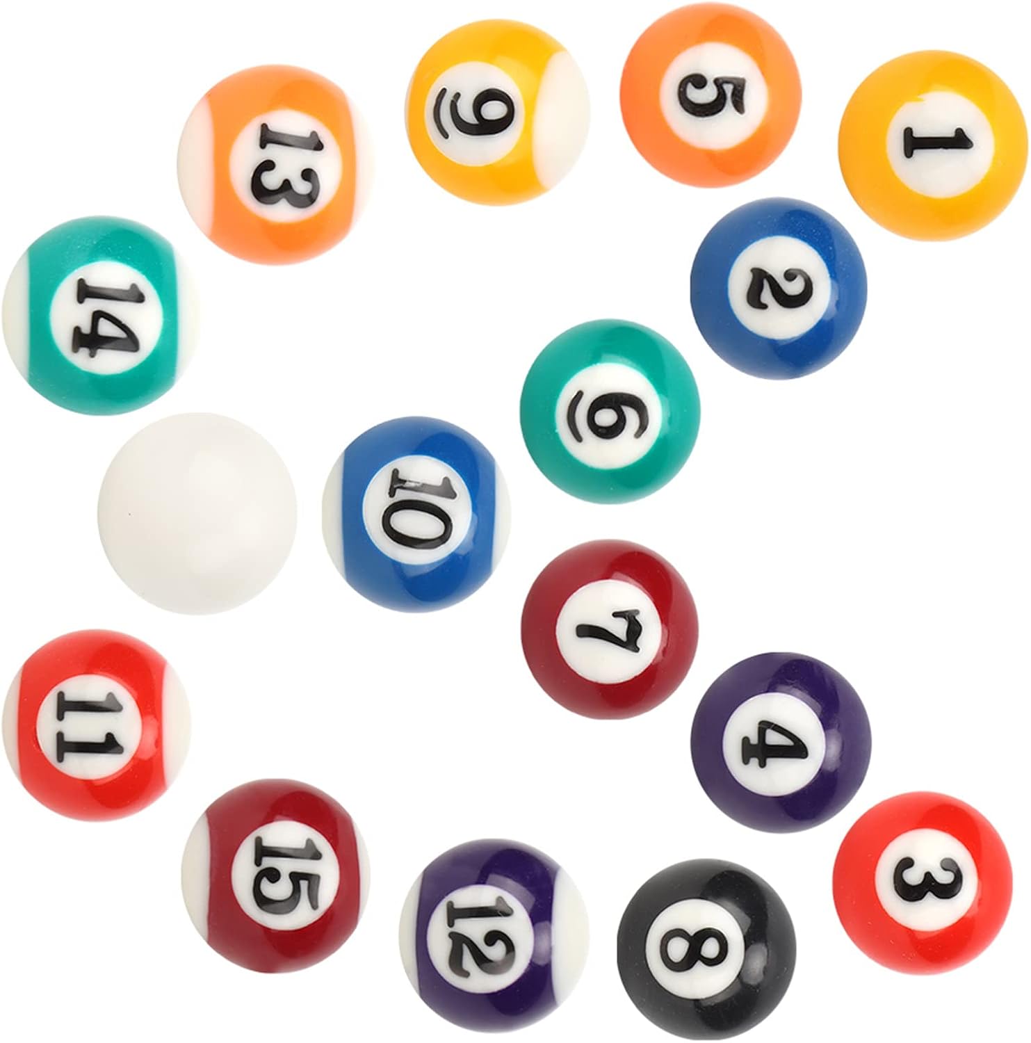 [MATERIALE IN RESINA] Realizzate in resina poliestere, queste mini palle da biliardo sono resistenti agli urti e ai graffi per un uso a lungo termine. [DESIGN PRECISO E LISCIO] Ogni pallina è perfettamente rotonda e bilanciata, rotola dolcemente per tiri precisi e un gameplay migliorato. [SET COMPLETO DI PALLINE DA BILIARDO] Viene fornito con 15 palline numerate e 1 pallina bianca, fornendo i componenti necessari per un gioco completo di biliardo con amici e familiari. [UTILIZZO MULTIUSO] Adatto a sale giochi, bar, giochi sportivi e ricreativi, offrendo opzioni di intrattenimento per vari ambienti ed eventi. [PORTATILE E FACILE DA CONSERVARE] Leggere e compatte, queste palle da biliardo da 1 pollice sono comode da trasportare e riporre, rendendole ideali per i viaggi e all'aperto.