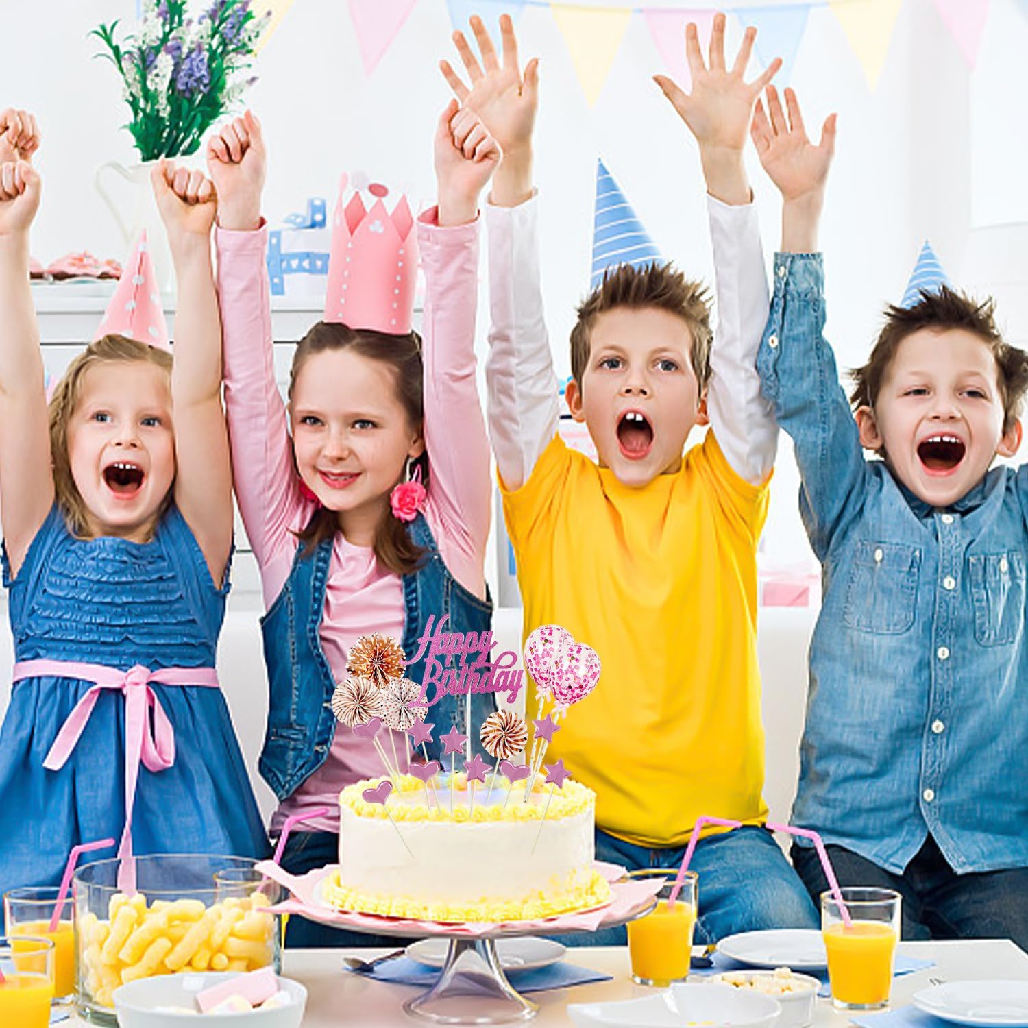 Contenuto della confezione: 2 palloncini coriandoli oro rosa, 5 pendenti a stella rosa, 5 pendenti d'amore rosa, 1 pendente rosa Happy Birthday, 4 etichette decorative in carta, un gran numero, sufficiente per soddisfare le tue esigenze di compleanno. Materiale del prodotto: questo topper per torta è realizzato in carta atossica e inodore. Può essere inserito direttamente nella torta ed è innocuo a contatto con gli alimenti. Decorazione semplice: la decorazione rosa della torta è semplice e facile da usare, basta inserirla nella torta e dare alla torta un effetto decorativo delicato e bellissimo. Design carino: gli inserti rosa della torta adottano disegni carini e adorabili, come cuori, stelle, ventagli di carta rotondi, ecc., che possono rendere la torta speciale e squisita, rendendola più dinamica e affascinante e migliorando l'atmosfera della celebrazione. Celebrazioni: le decorazioni per torte rosa sono adatte per varie celebrazioni come feste di compleanno, matrimoni, festa della mamma, luna piena, ecc. E aggiungono un senso di festa e gioia ai momenti speciali.