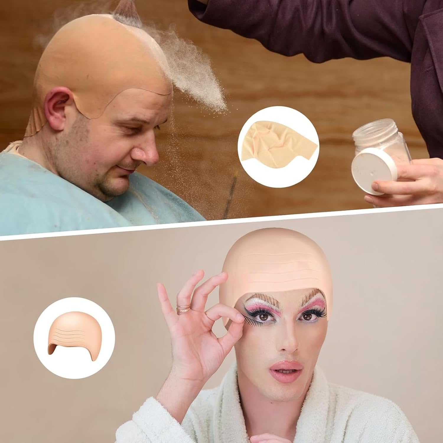 ♥ Riceverai una confezione composta da 1 fascia per capelli e 1 cuffia per parrucca in rete per vestirti con la tua famiglia, i tuoi bambini e i tuoi amici. ♥ Il grande cappello calvo può coprire facilmente i capelli di uomini, donne e bambini, facendoli sembrare calvi e lucenti. ♥ Questo berretto calvo è realizzato in lattice elastico di alta qualità, adatto a tutte le dimensioni della testa, non facile da rompere e comodo da indossare. L'effetto dell'uso effettivo è realistico e può nascondere bene i capelli originali. ♥ Applicazione: puoi utilizzare la cuffia in rete per fissare i capelli esistenti e la cuffia in lattice di gomma elastica per adattarla alla testa. Suggerimenti caldi: puoi applicare il lattice liquido sull'orlo del cappello e attaccarlo alla pelle. Per ottenere i migliori risultati, indossa un trucco adatto al tono della tua pelle. ♥ Ampia applicazione: il nostro set di berretti calvi è ampiamente utilizzato in costumi di Halloween, spettacoli teatrali, film, concerti, feste a tema, decorazioni generali, ecc. Accessori perfetti per occasioni importanti o costumi natalizi.