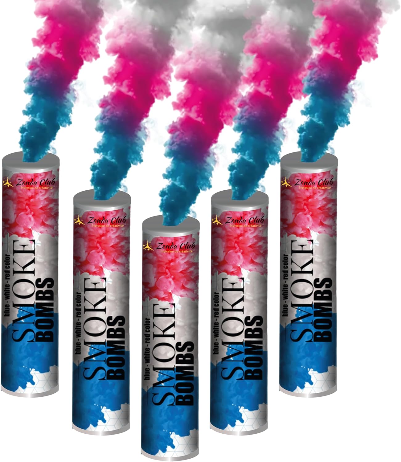 2 fumogeni tricolori – blu bianco rosso due bombe da fumo dai colori vivaci per un doppio impatto visivo ️ Effetto di 60 secondi per fumogeno Ogni fumigena diffonde un fumo denso per 1 minuto – 2 minuti di effetto totale! 🔥 Accensione a stoppino – Semplice e veloce Nessun attrezzo necessario, attivazione istantanea per i tuoi eventi all'aperto ◇️ Categoria F1 – Sicuro e certificato CE Fumigeni a basso rischio, utilizzabile all'aperto da adulti Consegna rapida 24/48H – Zenda Club Stock spedito dalla Francia – ricevi il tuo lotto in tempo per le tue feste o spettacoli