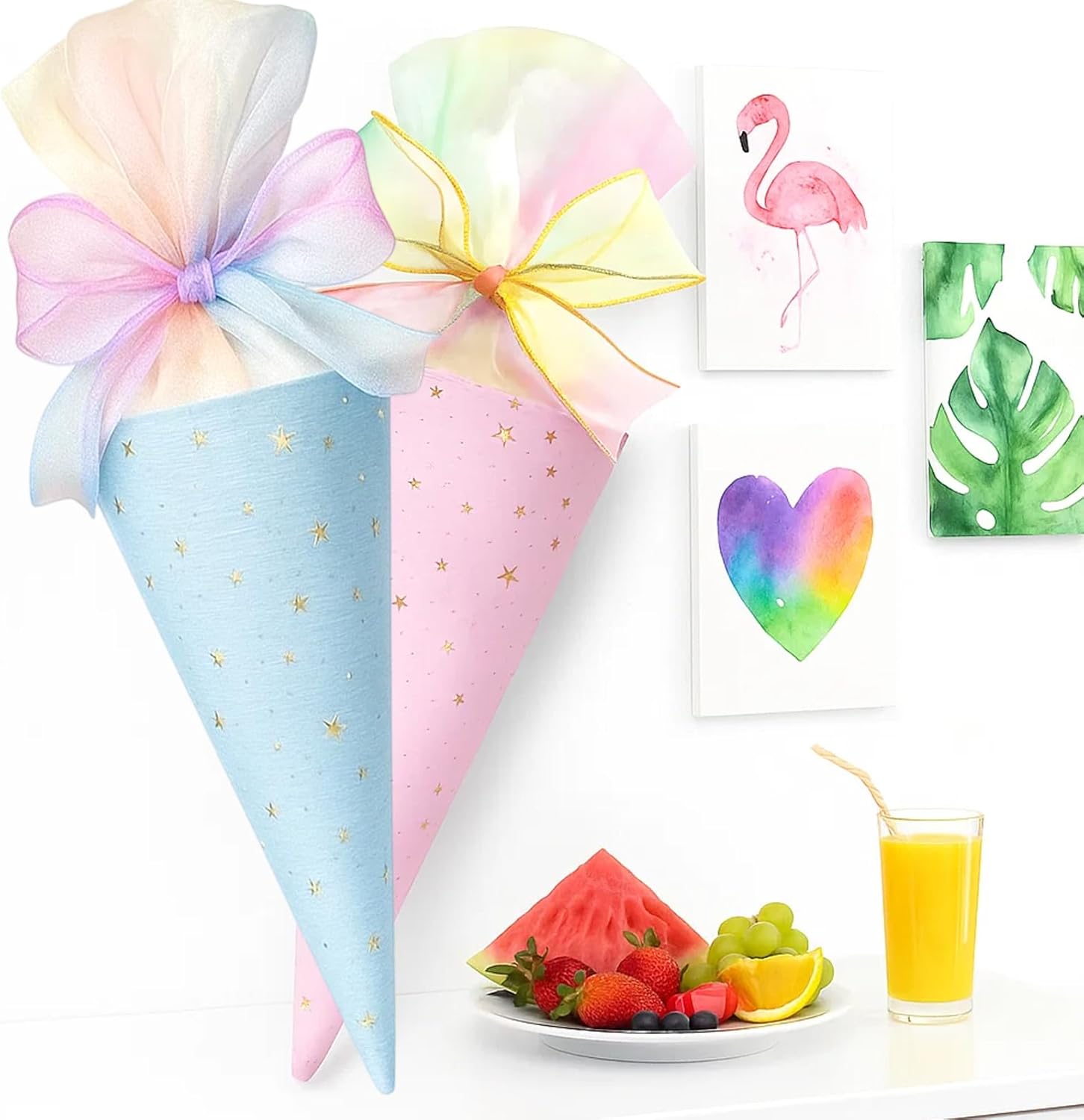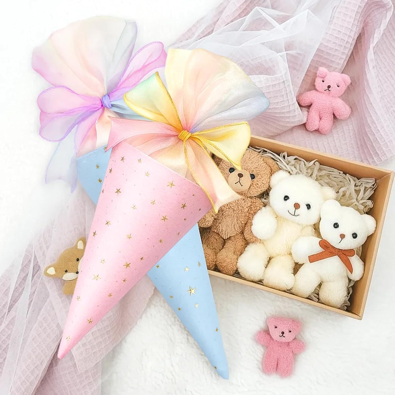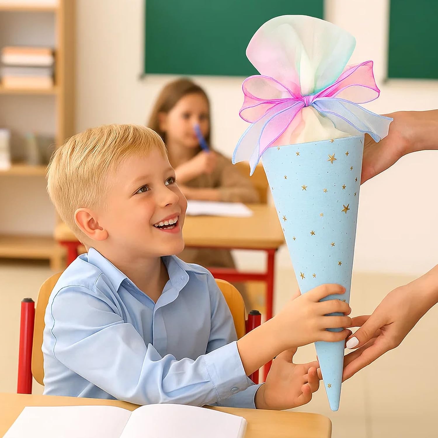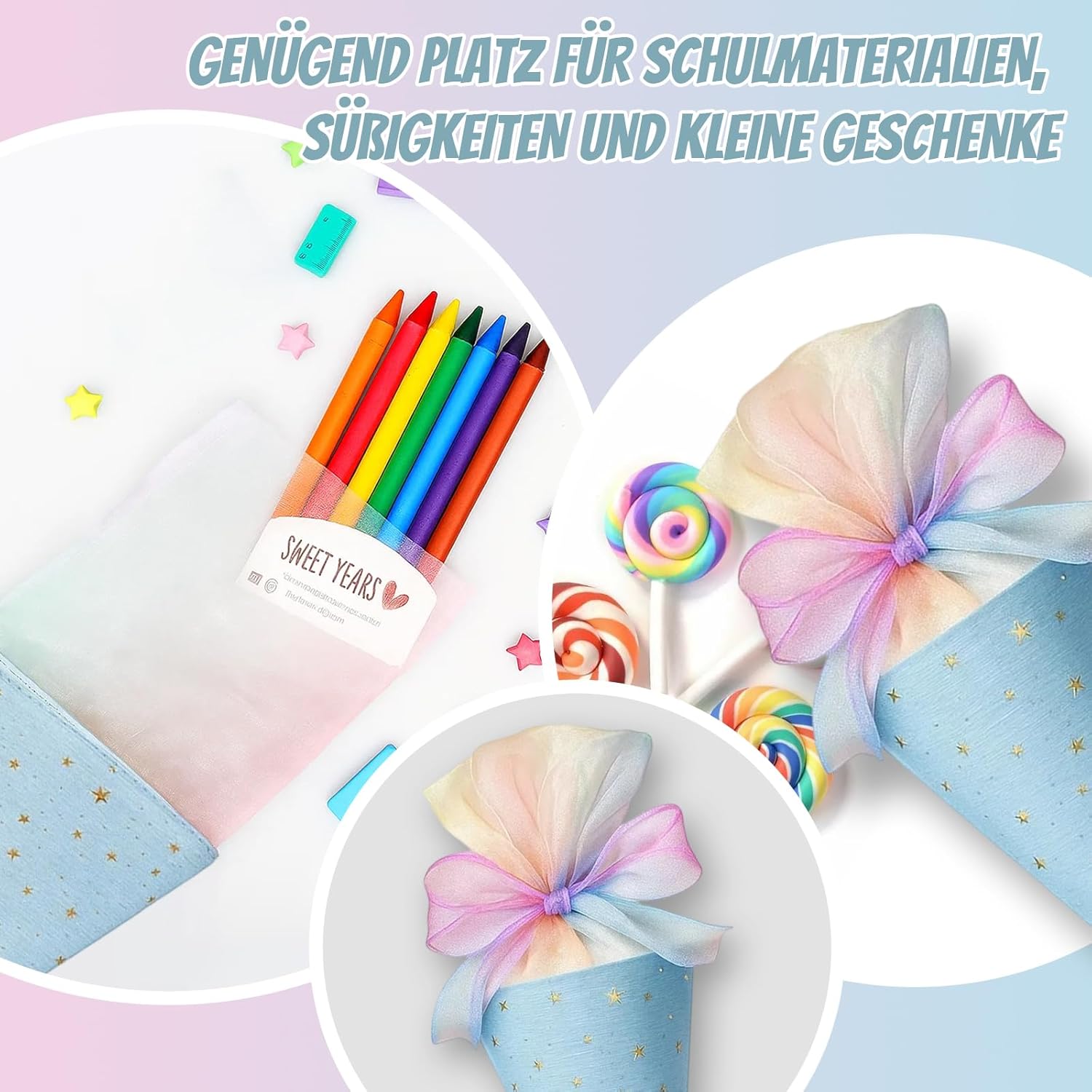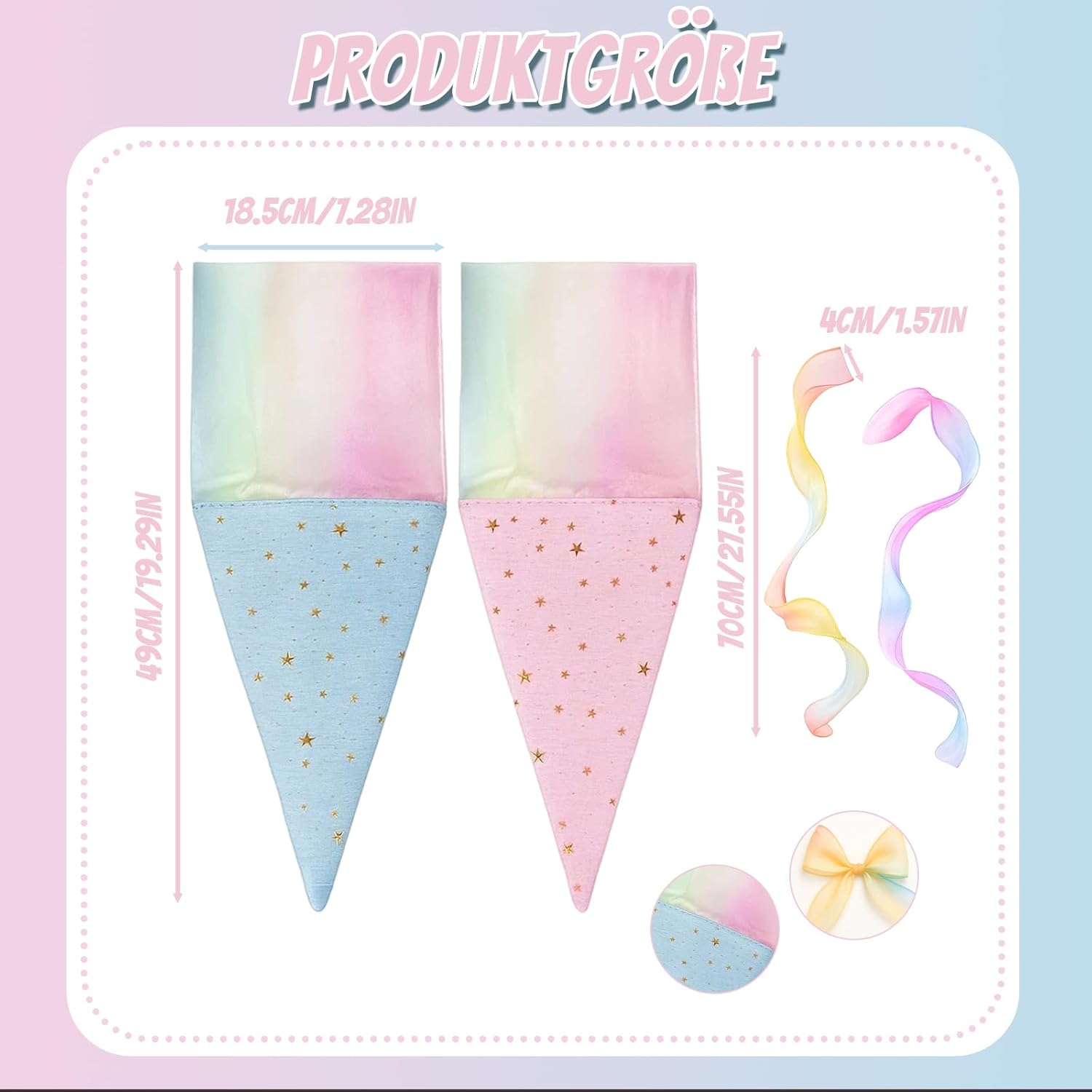 Set di coni per la scuola: contiene due mini sacchetti per la scuola nei colori blu e rosa, ideali per fratelli o compagni di classe; i piccoli sacchetti sono perfetti per il primo giorno di scuola e possono essere riempiti individualmente Mini sacchetti per la scuola da riempire: i piccoli sacchetti per la scuola offrono spazio sufficiente per dolci, accessori scolastici o piccole sorprese; ideali come regalo per l'inizio della scuola o come ricompensa in classe Materiali di alta qualità: realizzati in cotone resistente, resistente e delicato; i sacchetti sono decorati con accenti decorativi e sono perfetti per l'inizio della scuola Facile da usare: i mini sacchetti sono facili da riempire e trasportare; grazie alle dimensioni pratiche, sono ideali anche come accessorio per il primo giorno di scuola Regalo emotivo: il cono per la scuola dei fratelli è un bel modo per celebrare l'inizio della scuola e creare ricordi duraturi; Perfetto per genitori, insegnanti o parenti che cercano un regalo speciale