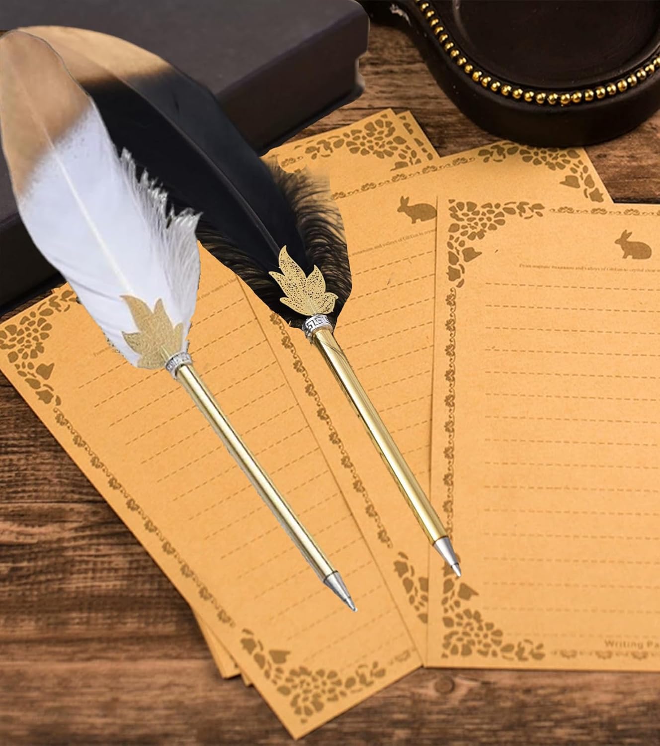 DESIGN ELEGANTE: il set di penne a sfera in stile vintage combina l'artigianato classico con un look moderno, ideale per chi cerca una penna elegante e nostalgica. Esperienza di scrittura fluida: le penne a sfera di alta qualità garantiscono una scrittura fluida, ideale per l'uso quotidiano e per prendere appunti. LUNGA DURATA DI UTILIZZO: ogni penna a sfera è dotata di inchiostro a lunga durata, che consente una scrittura permanente, senza frequenti ricariche, ideale per l'ufficio e l'uso scolastico. Regalo perfetto: il set di penne a sfera viene fornito in un'elegante confezione ed è un regalo ideale per gli amanti della letteratura, studenti o come elegante decorazione per ufficio. Materiali di alta qualità: le penne a sfera sono realizzate con materiali di alta qualità che garantiscono una lunga durata e offrono un'eccellente esperienza di scrittura, perfette per l'uso quotidiano e la scrittura.