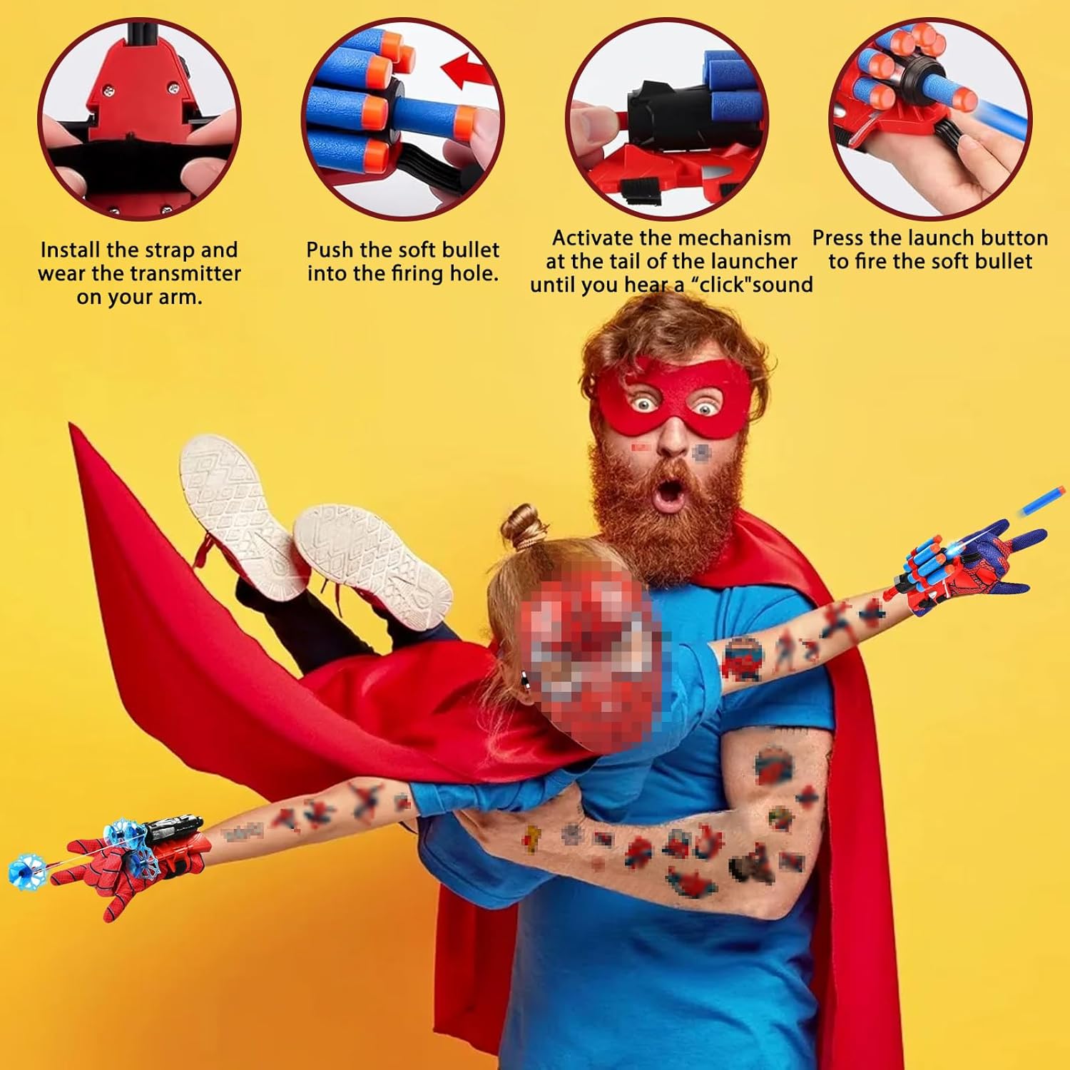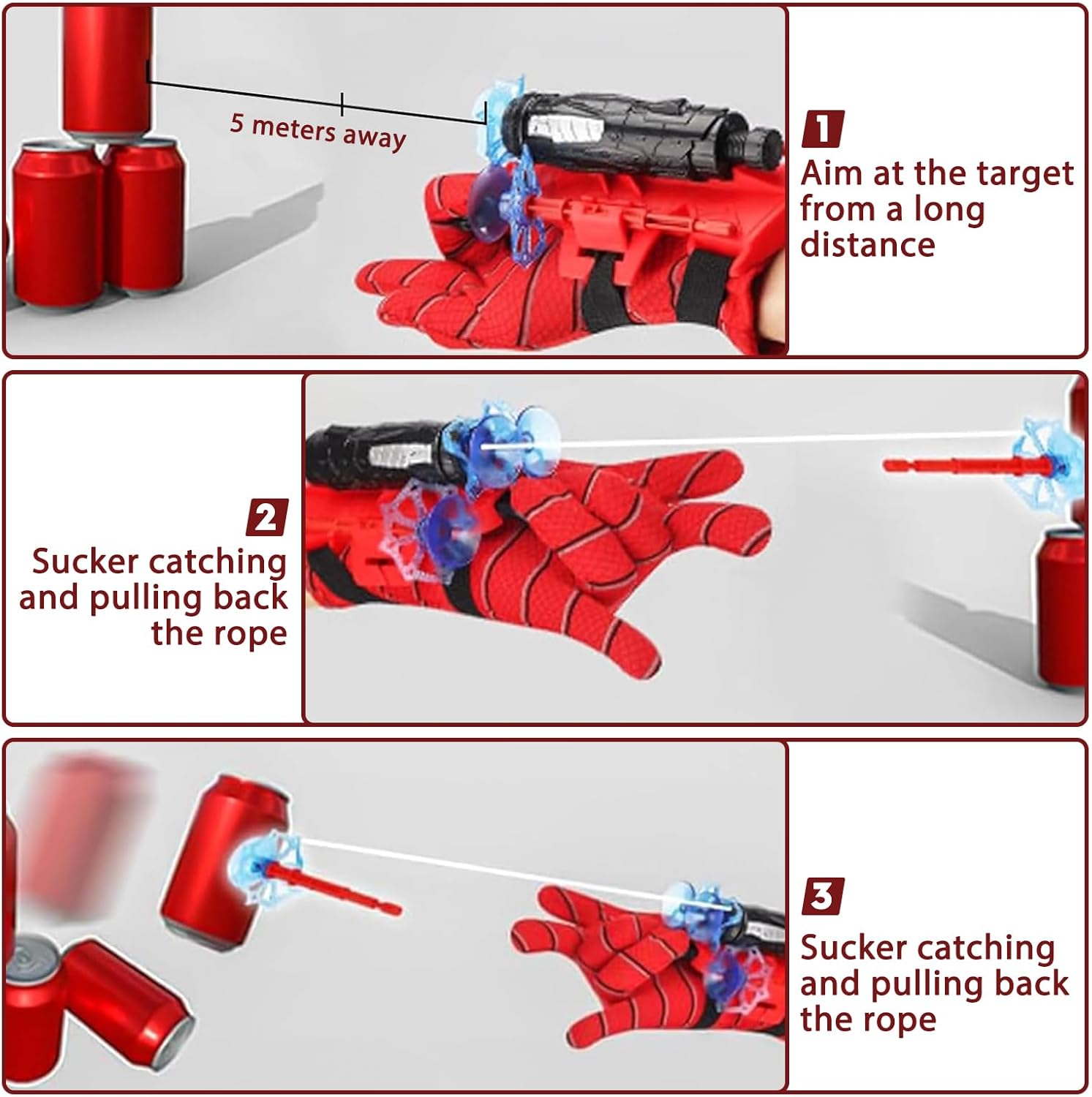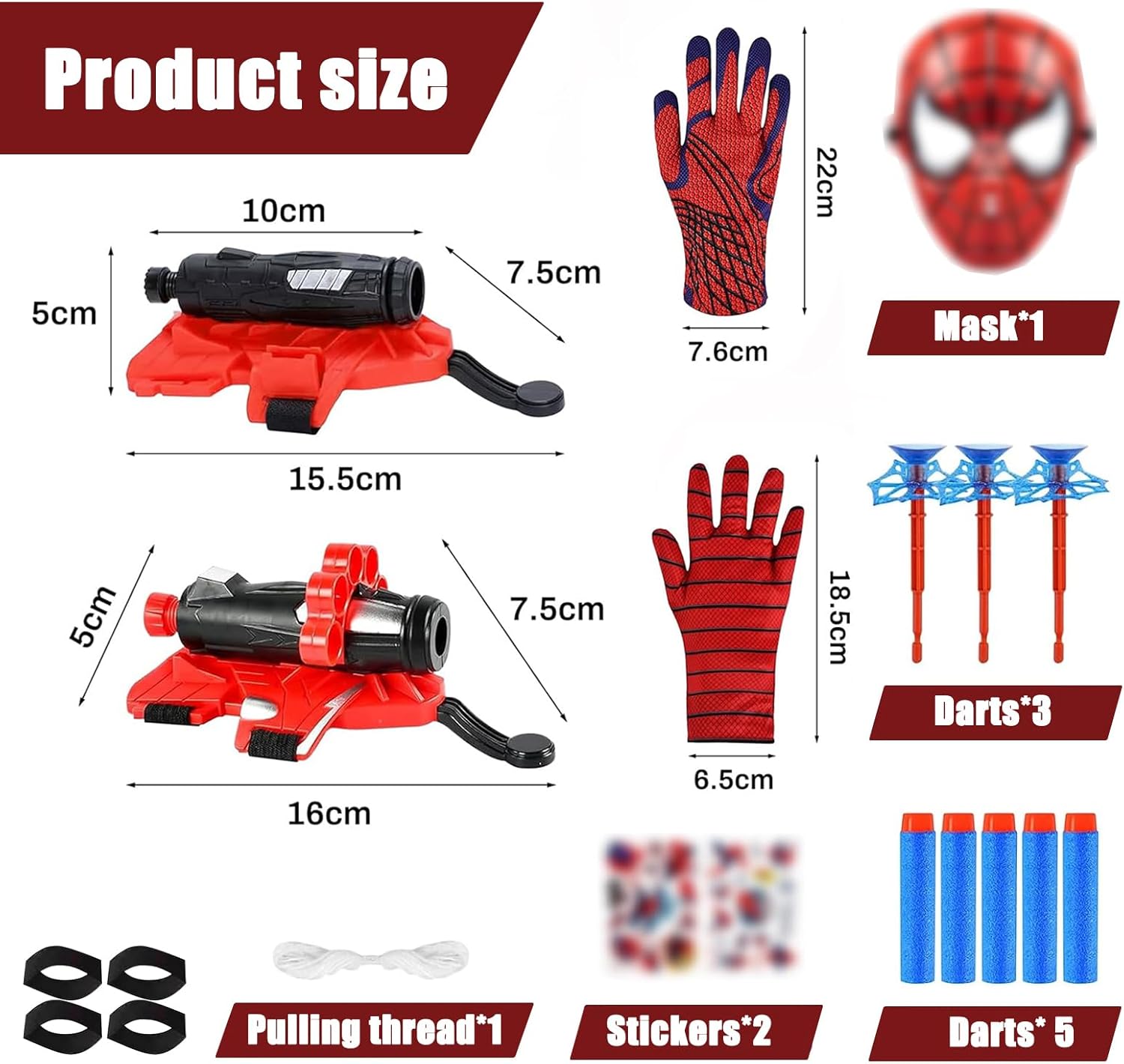 Guanti launcher: Il set include 2 Guanti Spider, 2 Spider Launcher, 3 freccette a ventosa, 5 freccette a testa tonda, 2 tatuaggi spiderm, 1 spiderm maschera, 1 corda bianca, 4 cinturini da polso regolabili. I bambini possono sviluppare la propria visione del mondo e la propria missione giocando a giochi di eroi Materiali di qualità: Spiderm Glove Launcher è realizzato in plastica di alta qualità, ben fatto e comodo da indossare, senza ingredienti nocivi, può essere utilizzato in sicurezza dai bambini, è un giocattolo essenziale per gli appassionati del film Facile da usare: Launcher Giocattoli Molto facile da usare, devi solo installare il Freccette sul trasmettitore, quindi legarlo con un banda elastica e quindi usarlo sulla mano per usarlo. I guanti sono della taglia giusta per la maggior parte dei bambini Stimola creatività: Spiderm Guanti per Bambino possono aumentare l'interazione dei bambini e consentire loro di sviluppare la loro visione del mondo, la loro coscienza della spedizione, la loro immaginazione e creatività mentre si divertono e giocano Ampiamente usato: Il guanto di lancio per Spiderm è perfetto per feste di compleanno, feste a tema, cosplay, interazioni quotidiane o altre occasioni. È un giocattolo indispensabile per i bambini, è regalo ideale per bambino
