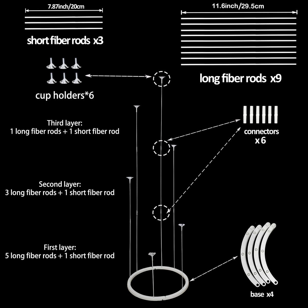 Design stabile: il nostro supporto per palloncini da tavolo è realizzato in plastica di alta qualità, resistente e riutilizzabile. Il fondo rotondo offre una buona stabilità, evitando che i bastoncini del palloncino si ribaltino o cadano durante l'uso. Ampia applicazione: questo supporto per palloncini è adatto a varie occasioni, come matrimoni, feste di compleanno, baby shower, anniversari, Halloween, Natale. Può essere utilizzato come centrotavola o per decorare qualsiasi stanza. Facile da usare: il kit arco per palloncini è facile da montare. Basta inserire i bastoncini dei palloncini nei fori sulla parte superiore del supporto, quindi gonfiare i palloncini con aria o elio. Il supporto per palloncini è progettato per contenere palloncini di diverse dimensioni. Design unico: rispetto ai tradizionali supporti per palloncini, i nuovi bastoncini per palloncini modellabili hanno forme variabili e un senso di gerarchia più forte. La confezione include: riceverai 2 supporti per palloncini, ogni set include 3 aste in fibra corta, 9 aste in fibra lunga, 6 tazze per palloncini, 6 connettori e 4 basi