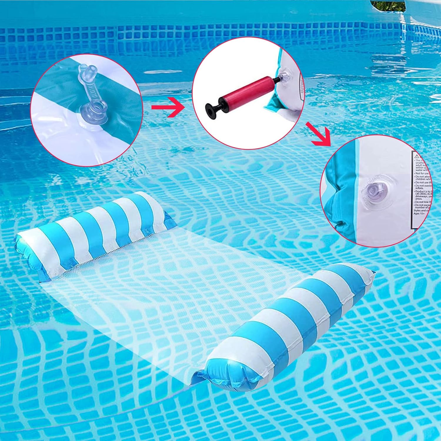 ★[Materiale di qualità]: questa amaca acquatica è realizzata in materiale PVC di alta qualità, ecologico, non tossico, durevole e resistente a rotture e perdite. Il fondo interno in tessuto a rete dell'amaca ti manterrà fresco in piscina. ★[Super supporto]: con il suo design semi-sommergibile, il design ergonomico dell'amaca offre molto supporto e comfort, fornendo un supporto perfetto e un migliore raffreddamento in acqua. ★[Funzioni multiple]: grazie alla sua versatilità, sia come amaca d'acqua, poltrona lounge, sella sportiva o tappetino da spiaggia, l'amaca d'acqua è l'accessorio ideale per la piscina, perfetto per nuotare nell'acqua e divertirsi giocando e rilassandosi. ★[Facile da usare]: l'amaca portatile è pieghevole e compatta, quindi è facile e veloce da gonfiare e sgonfiare. Quando non gonfiato, è abbastanza piccolo e leggero da poterlo arrotolare facilmente e trasportarlo in spiaggia, in piscina o in qualsiasi altro luogo. ★[Servizio soddisfacente al 100%]: forniamo un servizio che ti rende soddisfatto, se hai problemi con il prodotto, ti preghiamo di contattarci.