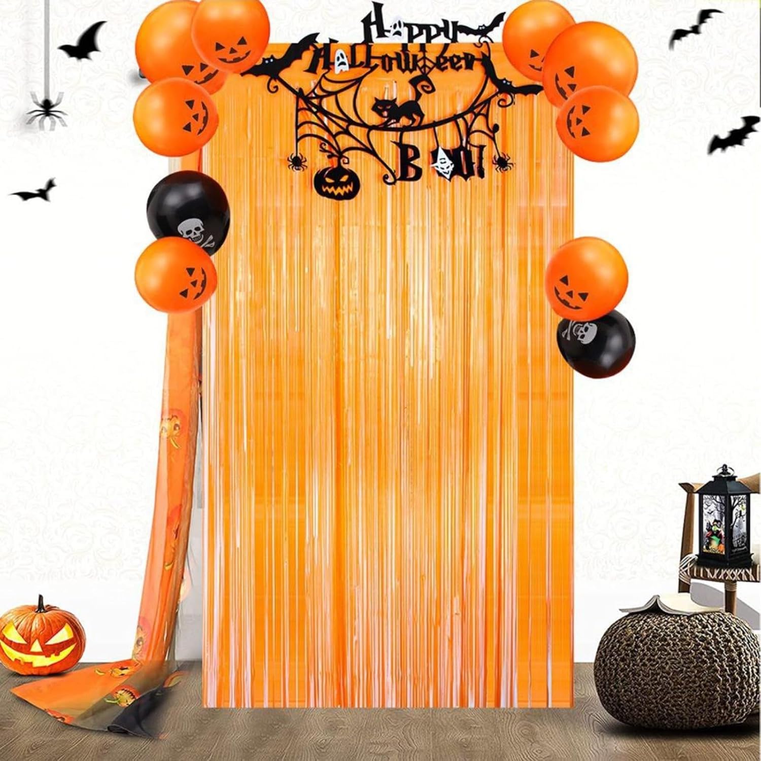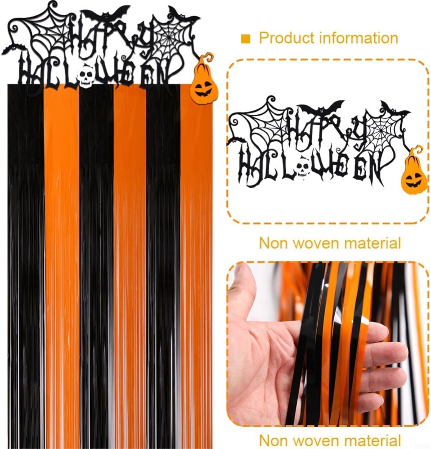 [Atmosfera festosa] Trasforma la tua stanza in un paese delle meraviglie spaventoso con questo set di decorazioni per feste di Halloween. Crea un'atmosfera impressionante che cattura l'eccitazione della vacanza. [APPLICAZIONE] Questa tenda decorativa è adatta per diversi ambienti, tra cui soggiorno, camera da letto, ingresso e spazi esterni, ed è una fantastica aggiunta alla tua decorazione festiva. [Design adesivo] Con una lunghezza di 2 metri, i colori vivaci e il design unico di questa tenda attirano l'attenzione e aumentano l'effetto visivo complessivo della vostra festa di Halloween. [FACILE INSTALLAZIONE] Grazie al materiale leggero, appenderlo è un gioco da ragazzi, in modo da poter applicare la decorazione rapidamente e senza attrezzi o sforzi complicati. [Momenti indimenticabili] Che si tratti di riunioni o feste, questa decorazione crea il palcoscenico per indimenticabili esperienze di Halloween con amici e persone care.