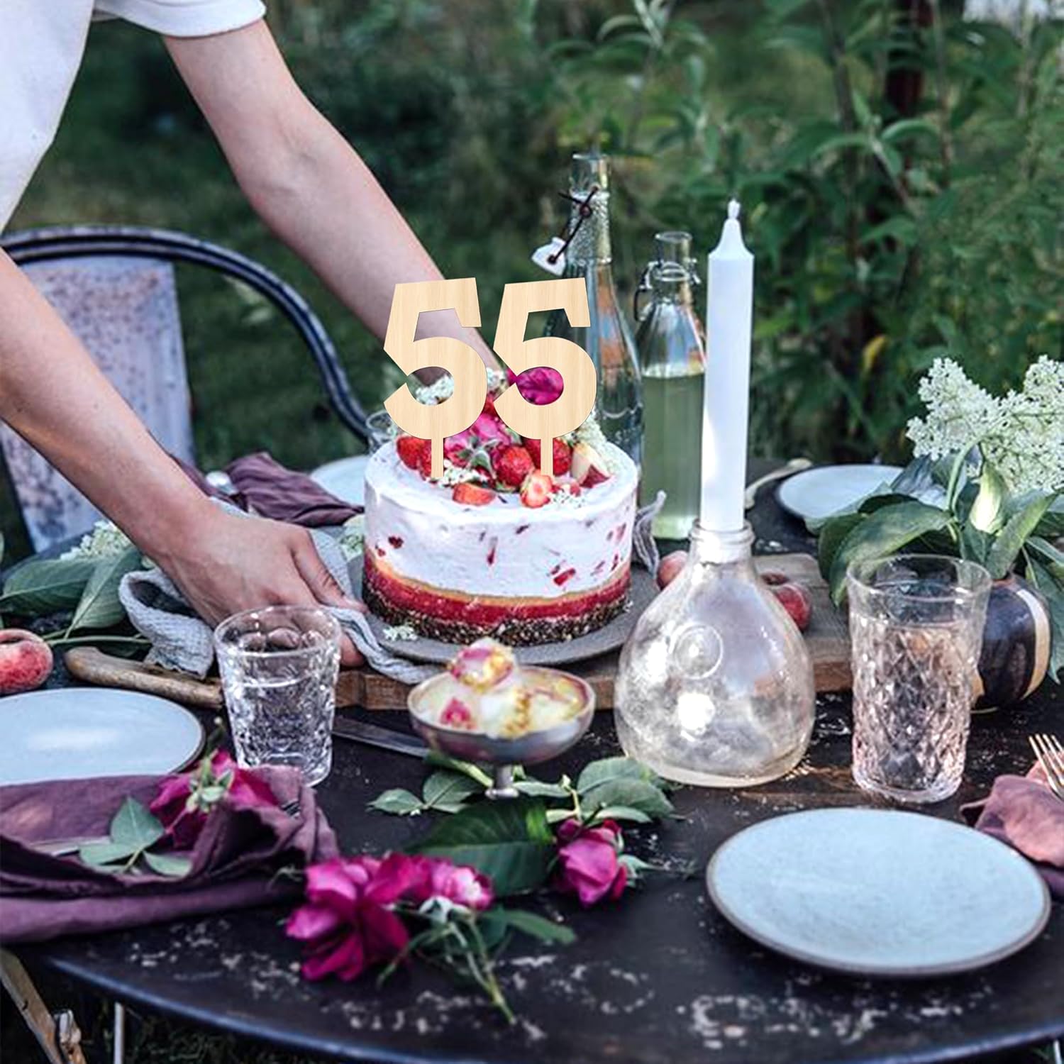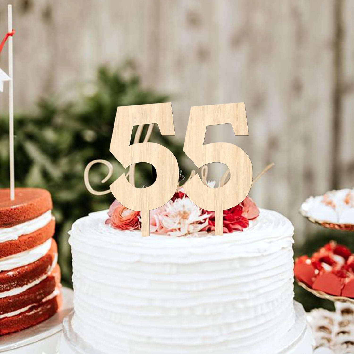 MATERIALE: i nostri toppers per torta sono realizzati in legno di alta qualità, atossico, inodore e non facile da rompere. CONFEZIONE: contiene 2 pezzi di toppers per torta, 1 sacchetto del opp, il toppers per torta è preassemblato, puoi usarlo direttamente quando lo ricevi. Dimensioni: la dimensione è L 5,1 pollici. H 8,7 pollici e L 13 cm. H 22,2 cm con bastoncino) Utilizzo: Queste decorazioni per torta sono perfette per torte, biscotti, cupcake, frutta, brownies, gelati e altro, particolarmente adatte per l'uso nella festa a tema del 55° anniversario di matrimonio che rende la torta più gustosa e attraente