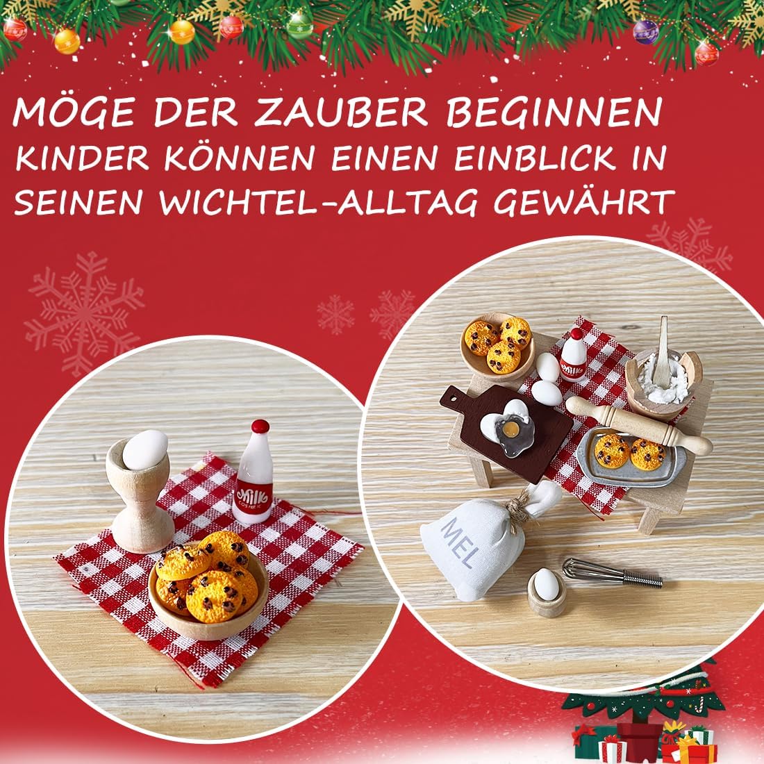 【Una fonte di ispirazione per gli Avventi】 C'è molto da fare a Natale! Con questo set di accessori per dolci il vostro gnomo può cuocere deliziosi biscotti di Natale. I bambini possono dare un'occhiata alla loro vita quotidiana dei gnomi, per rendere il tempo con il gnomo ancora più creativo Accessorio per decorazione della porta del gnomo: questo meraviglioso accessorio per gnomo in miniatura è il complemento perfetto per la porta del gnomo e lo spazio davanti, vi auguro molto divertimento, immergersi nel mondo in miniatura degli gnomi Set di accessori per la cottura a forma di gnomo: include set da forno in miniatura, mattarelli, sacchi di farina in miniatura, biscotti, latte, uova, mini ciotola in legno, tutti gli accessori sono estremamente realistici Esplora il mondo degli gnomi con i tuoi bambini: con gli accessori per gnomo abbiamo potuto costruire belle storie per le nostre visite quotidiane di gnomo, cosa che i nostri bambini hanno celebrato correttamente Accessori per casa delle bambole: questo accessorio a forma di gnomo non è adatto solo per porta di principale, ma è anche il complemento perfetto per una casa delle bambole