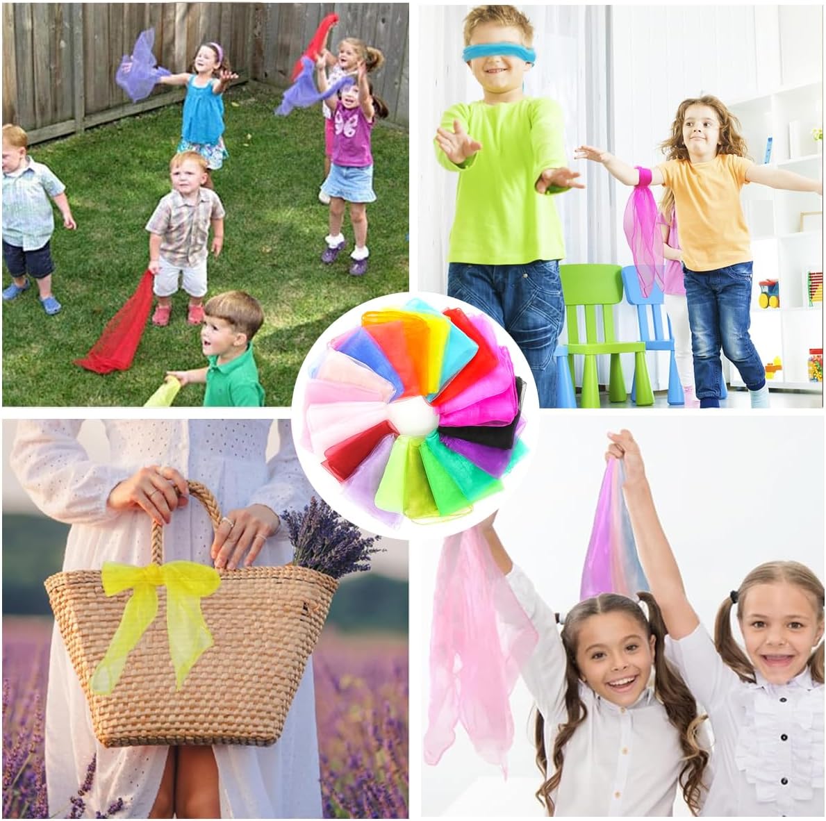 【Colori intensi】: la nostra gamma di sciarpe di seta quadrate convince con un'impressionante tavolozza di 20 colori vivaci, dal fresco giallo limone e blu vibrante alla calda lavanda e rosso brillante. Ogni panno misura esattamente 60 x 60 cm. I vari colori ti consentono di esprimere stili individuali e creare un'atmosfera fresca e vivace in ogni momento. 【Estremamente morbido e delicato sulla pelle】: le nostre sciarpe colorate sono realizzate in nylon traspirante di alta qualità, incomparabilmente morbido e piacevole al tatto. Per preservare la morbidezza e l'intensità del colore a lungo termine, si consiglia il lavaggio a mano con detersivo delicato e l'asciugatura all'aria naturale. In questo modo i panni rimangono morbidi, dimensionalmente stabili e luminosi anche dopo un uso ripetuto, garanzia di piacere duraturo. 【Sviluppo sensoriale e stimolazione della creatività】 : i colori vivaci stimolano la percezione del colore e aiutano a distinguere diverse tonalità e contrasti. Mentre giocano, lanciando, prendendo o fasciando, sviluppano capacità sensoriali, capacità motorie e coordinazione. Anche i giochi ritmici, come l'oscillazione al ritmo della musica, promuovono una migliore consapevolezza e risposta del corpo. 【Molti usi】: queste sciarpe da giocoleria sorprendono con la loro versatilità illimitata. Come accessori possono essere elegantemente legati al collo, attaccati alla borsetta o utilizzati come parrucchino. Nei progetti di artigianato, diventano riempitivi colorati per animali di peluche, decorazioni per feste di compleanno o anche opere d'arte fatte a mano. Nella vita di tutti i giorni servono come pratiche ciotole per le serate fredde, come protezione per cibi delicati nella borsetta o come partner di gioco durante le attività genitori-figli. Come regalo, non solo forniscono ore di gioco, ma promuovono anche la crescita. E' un regalo che piace. Sono un'idea originale per mostrare ai tuoi amici o familiari che li pensi, oppure come elemento decorativo per rallegrare qualsiasi stanza. Ciò rende queste sciarpe un ricordo speciale che verrà ricordato a lungo