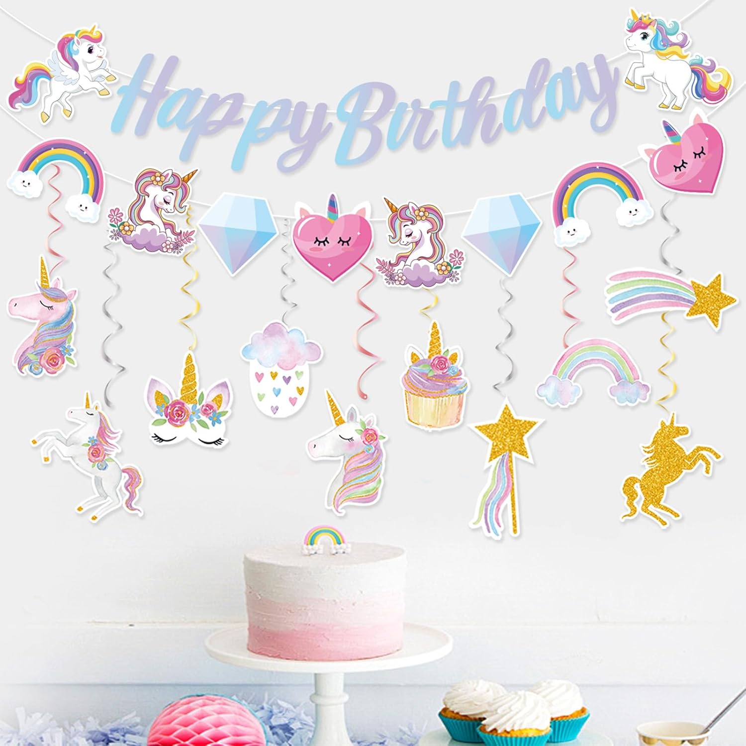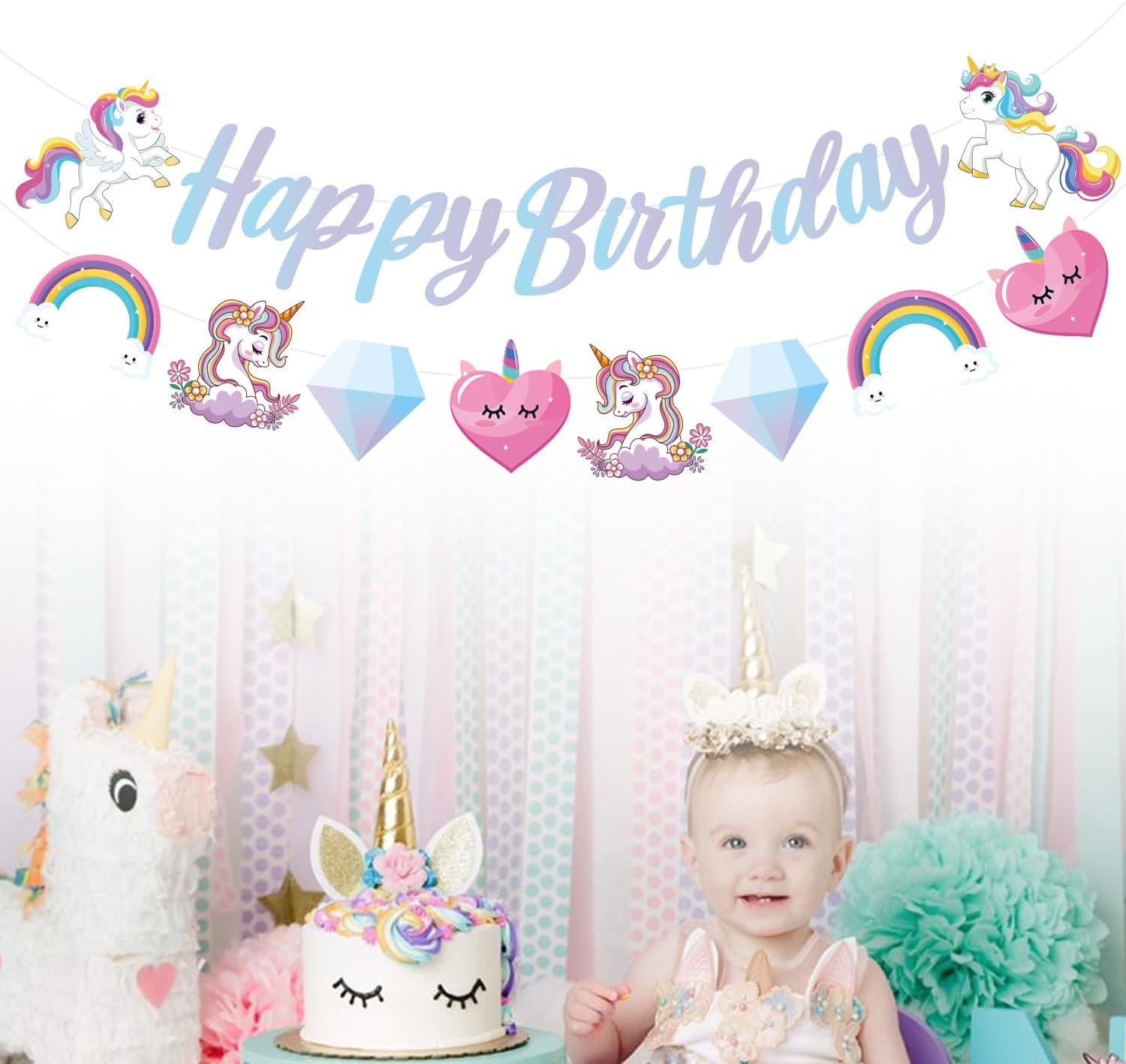 Decorazione magica per feste con unicorni: trasforma qualsiasi stanza in un paradiso da favola con unicorni! Perfetto per feste a tema unicorno, compleanni per bambini o feste a tema. Elegante ghirlanda per compleanno: include un'incantevole ghirlanda a forma di unicorno e una scritta "Happy Birthday". Facile da appendere e ideale per decorazioni di compleanno. Decorazione perfetta per il compleanno dei bambini, sia su pareti, tavoli o come sfondo fotografico, questa dolce decorazione per il compleanno dei bambini crea un'atmosfera festosa per ragazze e ragazzi. Incantevole decorazione di compleanno a forma di unicorno: con simpatici unicorni, arcobaleni e stelle in colori pastello. Ideale per feste di compleanno a tema unicorno Un indimenticabile compleanno con unicorno: sia come decorazione per la stanza o come elemento fotografico, questo set rende ogni compleanno di unicorno un'esperienza magica. Riutilizzabile e di alta qualità.