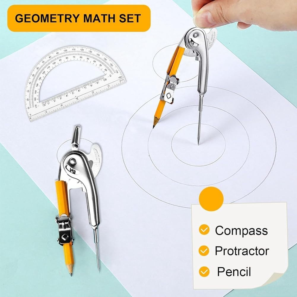 [Informazioni sulle dimensioni] La lunghezza del cerchio da disegno è di circa 5 e il diametro del goniometro per la scuola è di circa 6. Sono leggeri e facili da indossare e adatti alla maggior parte delle persone. Contenuto della confezione: riceverete un set di 20 pezzi per geometria, il pacchetto include 10 bussole geometriche e 10 goniometri per la geometria, queste quantità sono sufficienti per l'uso e la sostituzione, è possibile anche condividerle con altre persone, come ad esempio Studenti, insegnanti, ingegneri, , artisti e altro ancora [Facile da usare] Il goniometro consente di riconoscere facilmente parole, lettere e numeri pagina. È pratico da usare. L'intervallo da 0 a 180 gradi soddisferà la maggior parte delle esigenze. Buoni materiali: il compasso in metallo è realizzato con materiali metallici di alta qualità e il goniometro è realizzato in plastica, che non si deforma o si rompe facilmente. Il circolo matematico per geometria utilizza una tecnologia, gli ingranaggi dei singoli componenti sono strettamente intrecciati e non si staccano facilmente, è possibile utilizzarli per molto tempo. [Strumenti di misurazione e disegno] Il set di goniometri è necessario per matematica, arte e altro ancora. Puoi usarlo per misurare angoli, disegnare angoli e altre attività che . Ti offre una piacevole esperienza di utilizzo.