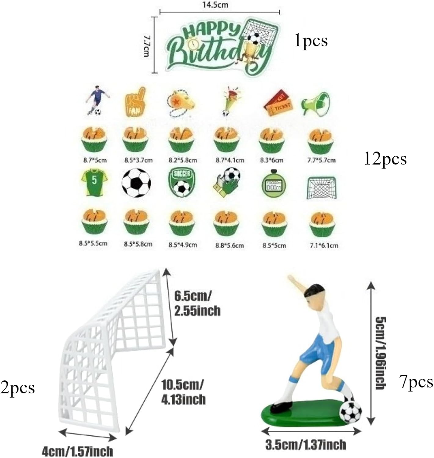 Materiali di alta qualità: questi topper per torta a tema calcio sono realizzati in PVC e carta di alta qualità. Sono sicuri, durevoli, riutilizzabili e inodori, rendendoli perfetti per decorare torte, cupcake, dessert e altro ancora. Decorazioni per torte a tema calcio: questi adesivi per torte a tema calcio presentano un tema di calcio e presentano elementi di design vivaci e accattivanti. Il design unico sarà sicuramente uno dei preferiti dai bambini. Ampie applicazioni: queste decorazioni per torte a tema calcio sono perfette per decorazioni per feste di compleanno per gli appassionati di calcio. Sono adatti anche per feste di compleanno per bambini, feste di compleanno per ragazzi, baby shower, eventi scolastici e molto altro ancora. Decorazioni riutilizzabili: le decorazioni per torte di compleanno sono perfette per cupcake, biscotti, torte, frutta, gelati e altri dessert. Si prega di notare che questi topper per cupcake non sono commestibili e sono solo a scopo decorativo. Evitare di usarli in forno o microonde. Sono lavabili, pulire con un panno umido e lasciare asciugare accuratamente prima di riporli. Sono riutilizzabili. Contenuto della confezione: riceverai 22 decorazioni per torte di calcio, tra cui 3 giocatori di calcio in maglia rossa e 3 giocatori di calcio in maglia blu, 1 arbitro nero, 2 porte e 1 mini calcio, 12 piccoli inserti da calcio e 1 inserto grande. Come mostrato nella foto, la quantità di decorazioni per torte da calcio è sufficiente per soddisfare le tue esigenze.
