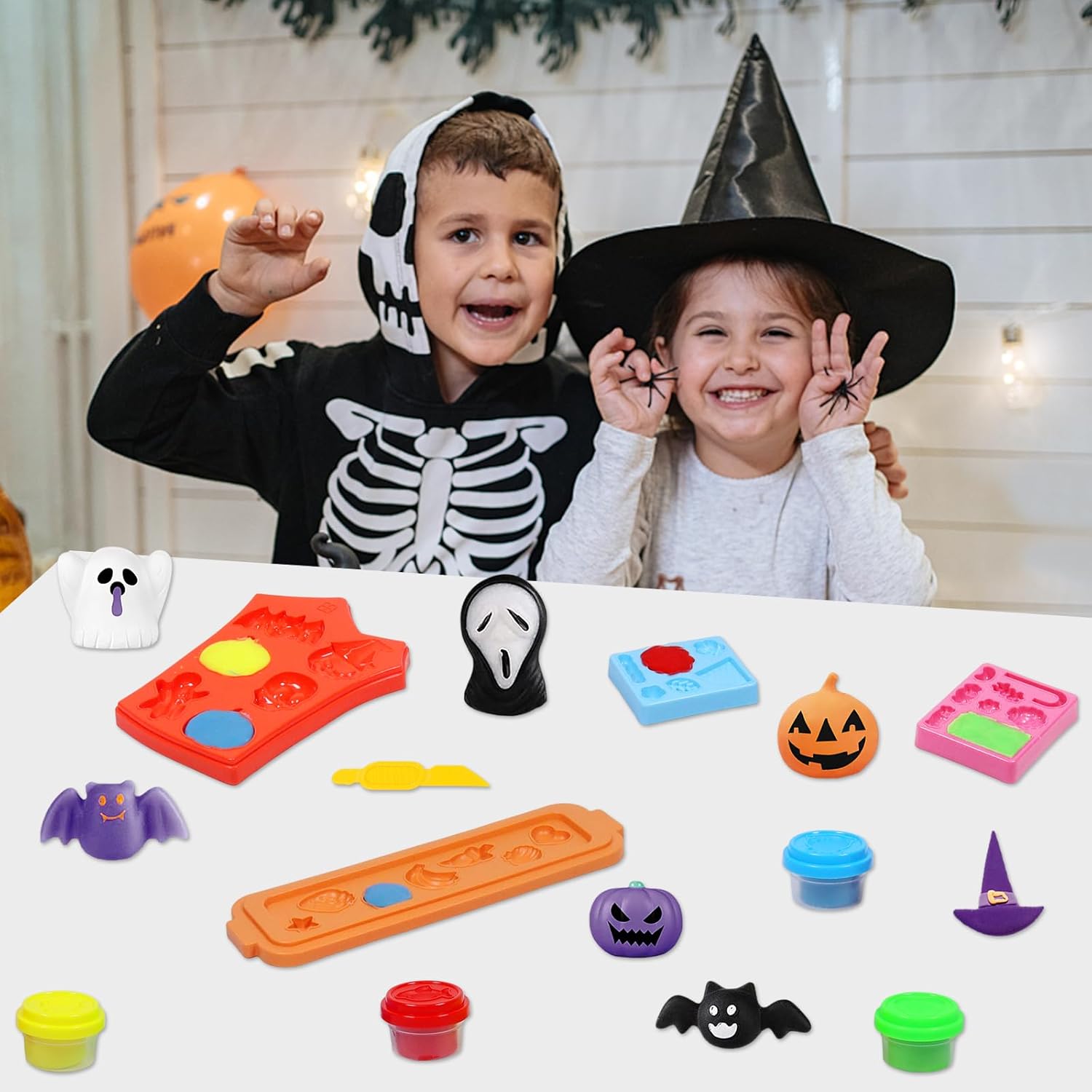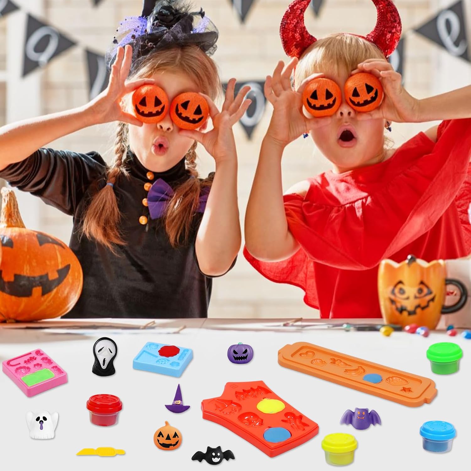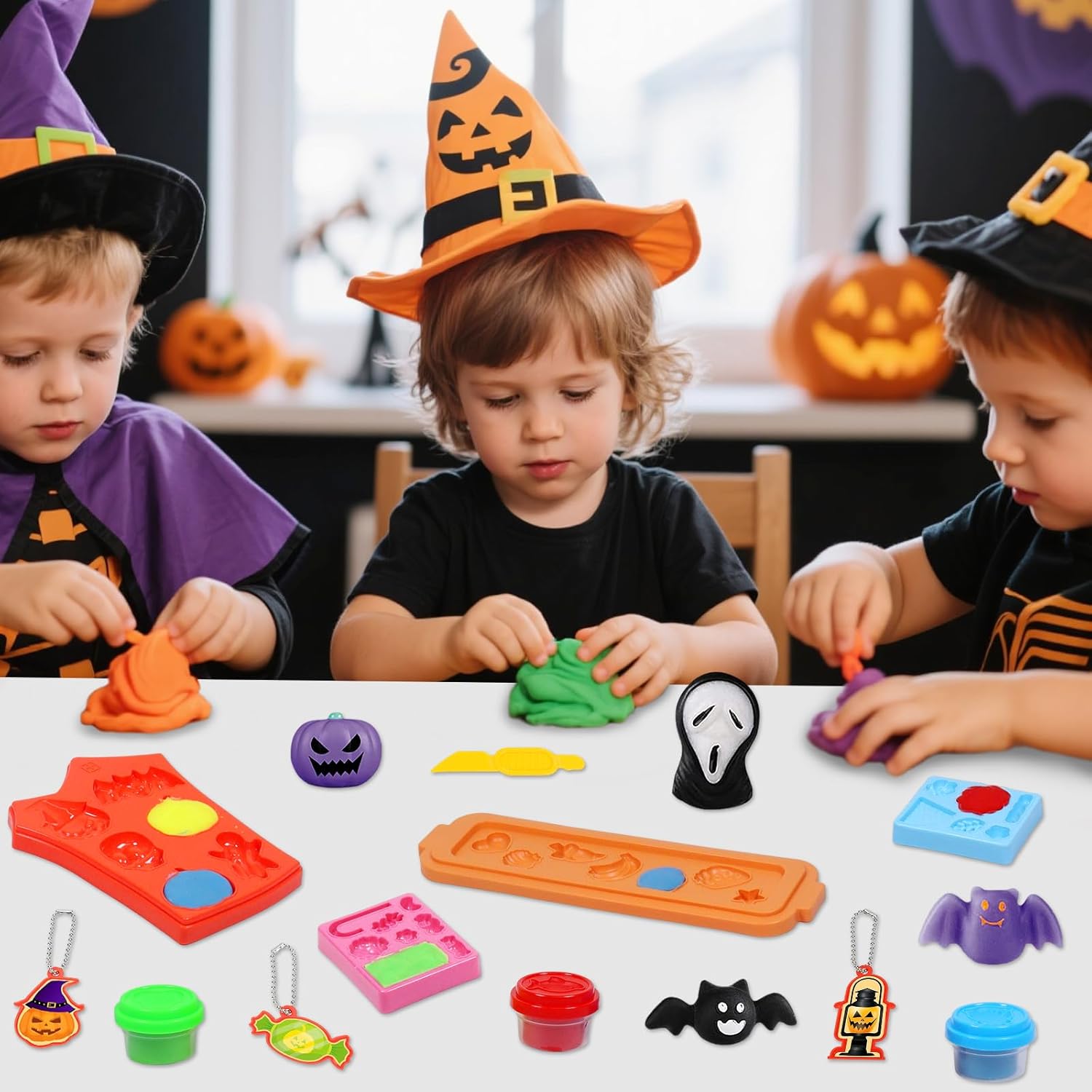 Set di plastilina: questo set contiene modelli di impasto per zucche di Halloween, fantasmi, pipistrelli e cappelli da strega, nonché strumenti come cucchiai, forchette, piatti e rotoli. È colorato e vario e stimola l'immaginazione e la creatività dei bambini a tempo indeterminato. Set di impasti fai da te per bambini: l'impasto della plastilina colorata favorisce le capacità motorie dei bambini ed è ideale come giocattolo educativo per la casa o l'asilo. È un modo senza stress per creare facilmente interessanti figure e progetti artistici. Set di plastilina per Halloween: la plastilina colorata è realizzata con materiali atossici, morbidi e facilmente modellabili, non contiene sostanze nocive ed è inodore. È adatto per bambini dai 3 anni in su e si rimuove facilmente da mani, vestiti o superfici. Set di plastilina per bambini dai 3 anni in su: oltre alla plastilina, il set include anche strumenti ausiliari come formine per biscotti e un rullo per impastare, in modo che senza materiali aggiuntivi possano essere facilmente realizzate belle decorazioni di Halloween o piccole opere d'arte. Set di accessori per plastilina: questo set di plastilina è il regalo perfetto per Halloween per bambini, in quanto è divertente e permette loro di modellare tutto ciò che desiderano a piacere.
