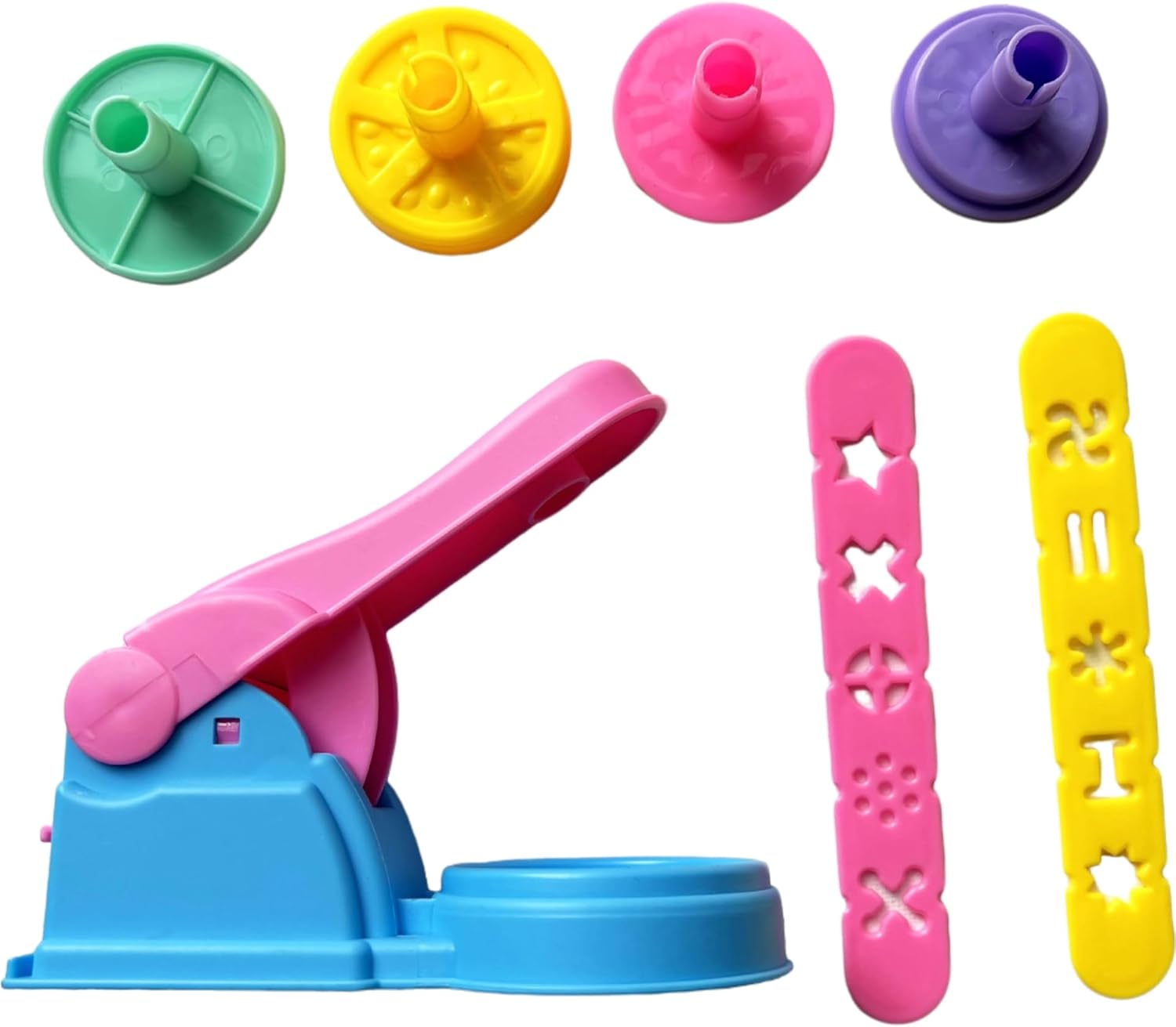 Set completo: set di 20 giocattoli per impastare per bambini, con mattarelli, formine, coltelli da impastare e una pressa per impastare per giocare creativo Gioco a rulli: diversi strumenti come mattarelli e rullo per impastare in colori vivaci – rosa, giallo, viola e menta – per creare fantasia Forme: 8 diverse forme come animali e personaggi per tagliare la plastilina per diverse possibilità di gioco Strumenti creativi: mattarelli e coltelli per impastare strutturati per diversi modelli e texture nella plastilina Facilissima da usare: manici ergonomici e plastica robusta, appositamente progettati per le mani dei bambini