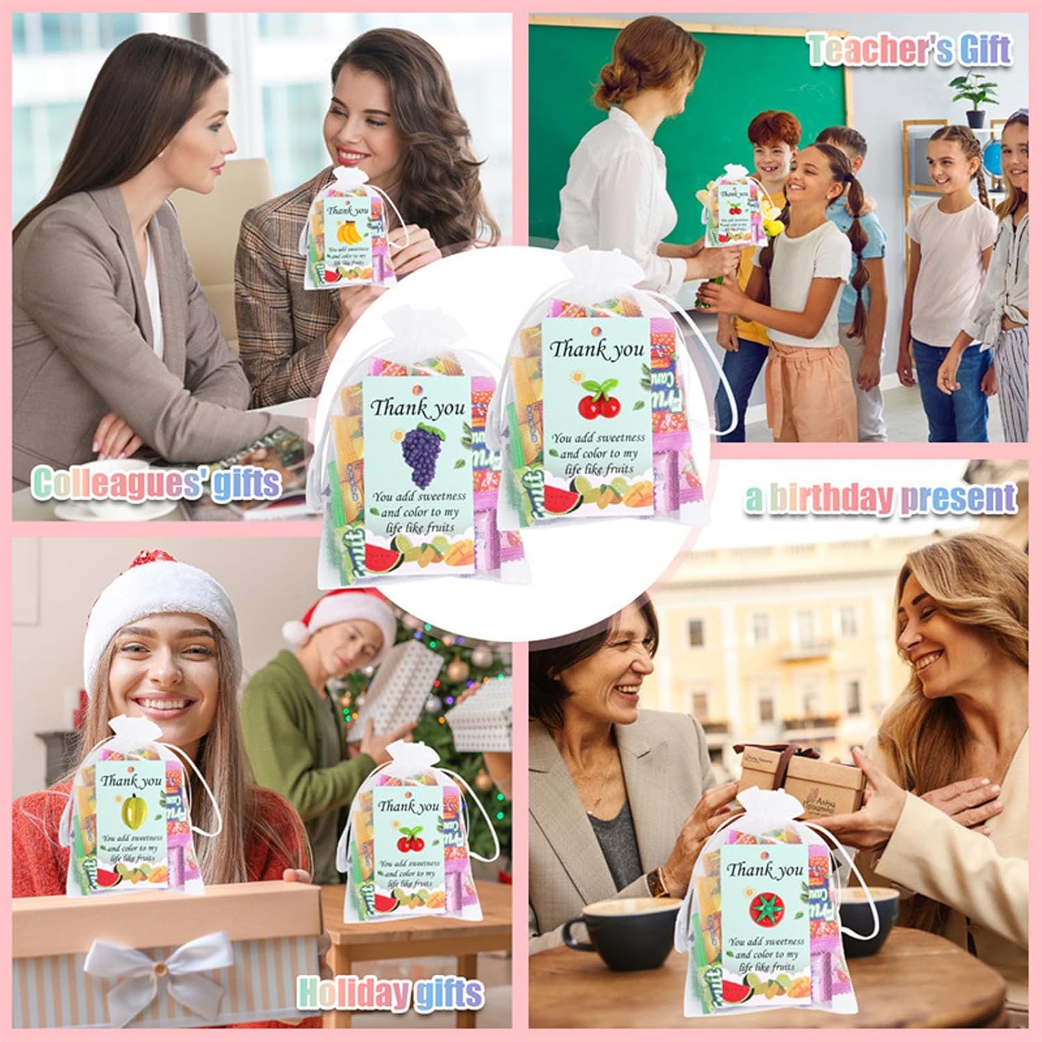 Mostra il tuo apprezzamento con questi biglietti di ringraziamento per insegnanti, colleghi e amici, design a forma di frutta, sono dotati di biglietti di ringraziamento e borsa con coulisse e nastro adesivo biadesivo, rendendo un ottimo regalo di apprezzamento per gli insegnanti Queste decorazioni per frutta leggere e portatili sono realizzate in resina, garantendo sicurezza e facile da maneggiare, mentre il colore brillante e l'aspetto realistico aggiungono un tocco di divertimento a qualsiasi ambiente Molto adatto per insegnanti, genitori, organizzatori di feste, colleghi e chiunque cerchi di aggiungere un tocco di gratitudine e divertimento al loro evento o incontro a tema Ampiamente usato per varie occasioni come il giorno degli insegnanti, il giorno del Ringraziamento, Natale, compleanno ed eventi scolastici, aggiunte essenziali a qualsiasi celebrazione Ogni set include 24 ornamenti in resina a forma di frutta, 24 biglietti di ringraziamento e 24 sacchetti con coulisse, 24 adesivi trasparenti a doppio lato, esprimendo grazie e diffondendo positività in aule e uffici allo stesso modo