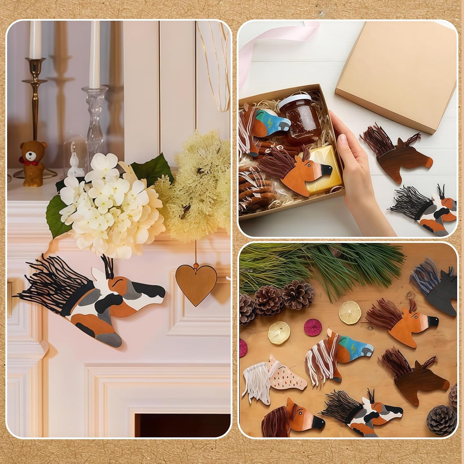 Set completo di 24 pezzi di cavalli in legno per lavoretti: Include 24 sagome di cavalli non verniciate, 12 colori (2 set), 4 pennelli e 8 fili in diverse tonalità. Tutto ciò di cui hai bisogno per dipingere e personalizzare è incluso Decorazioni uniche per Natale e feste: Aggiungi un tocco rustico alle celebrazioni. Ideale come attività interattiva, dove gli ospiti creano le loro opere d'arte personali e migliorano l'atmosfera Legno naturale leggero e resistente: I ritagli di cavalli sono realizzati in legno robusto e leggero, lucidato su entrambi i lati. Una dimensione di circa 10,5 x 10,5 cm perfetta per la creatività Stimola la creatività e lo spirito del fai da te: Personalizza i cavalli con colori e fili a piacimento. Ideale per risvegliare la fantasia e l'espressione artistica in bambini e adulti Regalo versatile per molte occasioni: Perfetto per feste di compleanno, Natale o come premio educativo. Ideale per creare regali personalizzati o decorazioni stagionali