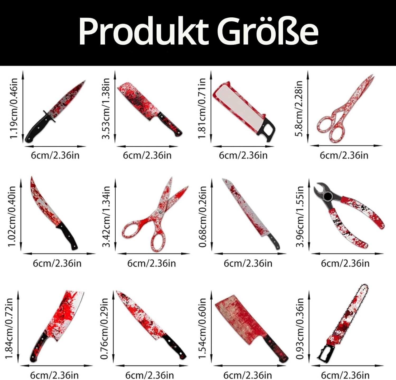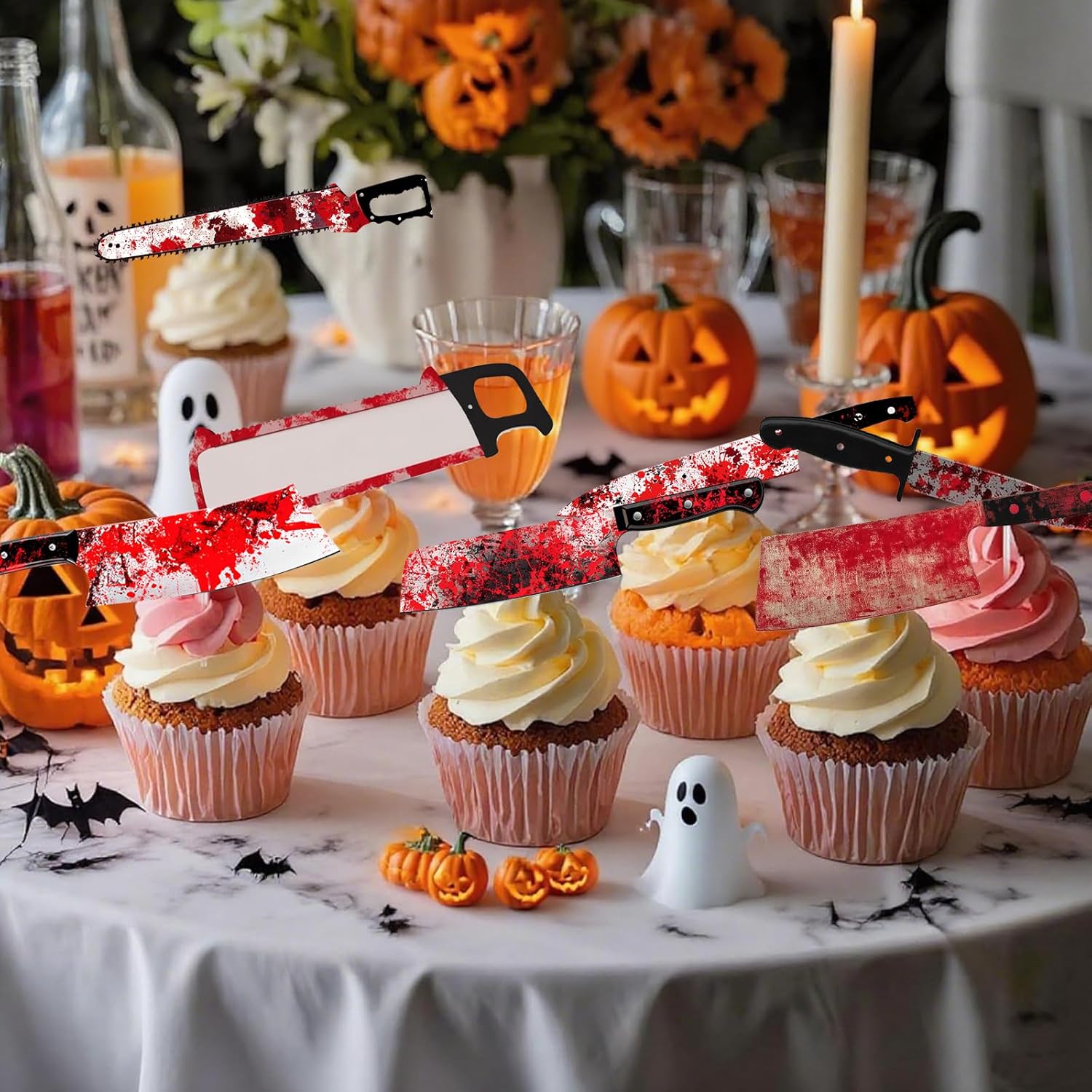 Torta decorativa per Halloween: riceverete 24 coltelli decorativi per torte di Halloween, 12 diversi tipi di coltelli per il sangue di Halloween (2 per ogni stile), dotato di bastoni e punti adesivi, quantità e stile sono sufficienti per soddisfare le vostre esigenze di decorazione di Halloween Materiale di alta qualità: questo set di coltelli decorativi per cupcake per Halloween è realizzato in carta di alta qualità con colori vivaci e stampa chiara, è durevole, non facile da rompere o sbiadire, non facile da rompere, sicuro ed ecologico e riutilizzabile, presenta un'immagine di coltello, molto adatta per la decorazione a tema horror di Halloween Facile da montare: la confezione contiene un set di coltelli per Halloween con bastoncini di colla e punti, che vengono consegnati separatamente e richiedono un facile montaggio fai da te. Ruotare i punti adesivi alcune volte con la punta dello stick di colla, quindi incollarli sul cartone per decorazioni per torte e posizionarli sulla torta. La decorazione per torta con macchie di sangue è emozionante e spaventosa, crea un'atmosfera spaventosa per la vostra festa o evento e dona più fascino ai vostri cupcake o dessert Ampiamente utilizzato: questo set di coltelli per torta di Halloween è adatto per tutte le occasioni come cimitero di Halloween, feste a tema horror, giochi di ruolo, feste di Halloween, feste in giardino, feste in maschera, casa infestata e altre feste a tema; possono anche essere utilizzate come torte, cupcake, muffin e decorazioni da dessert per soddisfare tutte le vostre esigenze di decorazione e creare una meravigliosa atmosfera di festa 【Consigli】Progettato per un lato, il retro è di colore bianco. Solo per scopi decorativi, questo non è commestibile e si prega di non utilizzarlo in forno o microonde