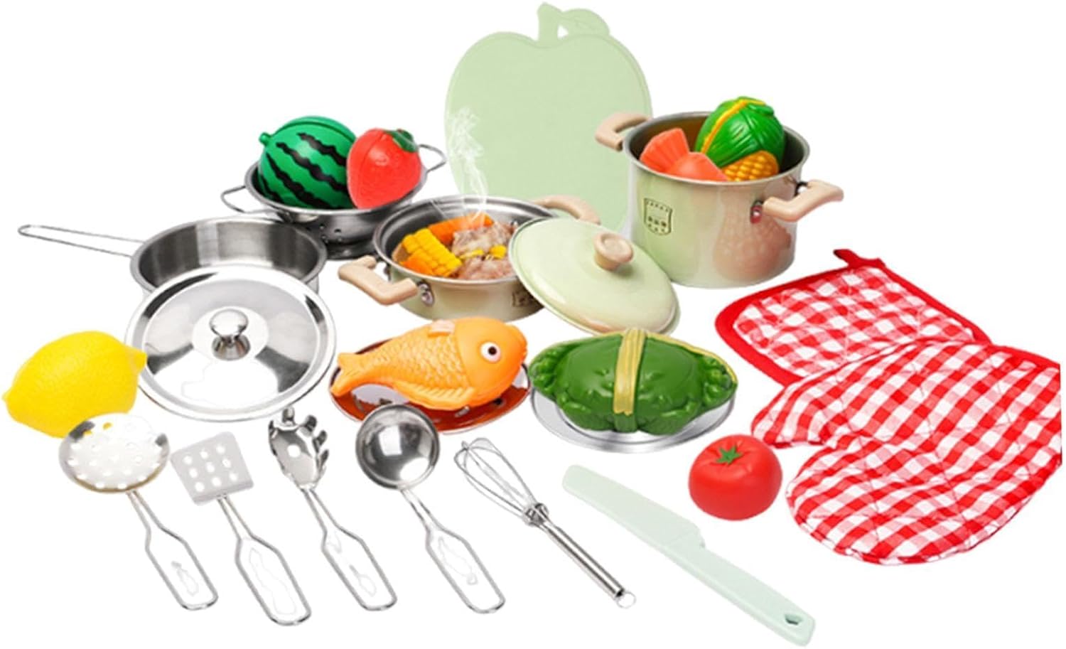 【Materiale】: Realizzate in acciaio inossidabile e PP, le pentole Miniature Fairy House sono robuste, resistenti all'usura e costruite per resistere a urti e colpi 【Design antiscottatura】: presenta manici in silicone resistenti al calore su pentole e coperchi per garantire la maneggevolezza delle manine durante il gioco o le vere sessioni di cucina 【Esperienza di cucina reale】: questo mini set di accessori da cucina è progettato per una cucina reale, consentendo ai bambini di preparare pasti commestibili mentre si godono un'avventura culinaria pratica 【Divertimento di gioco di ruolo interattivo】: il set di figurine Mini Terrarium include realistiche per il gioco di taglio, incoraggiando i bambini a immergersi nella gioia della cucina di fantasia, migliorando al contempo la loro creatività 【Attività di legame genitore-figlio】: promuove l'interazione familiare combinando il tempo di gioco con opportunità di apprendimento, aiutando i bambini a sviluppare capacità culinarie e coordinazione occhio-mano attraverso attività coinvolgenti
