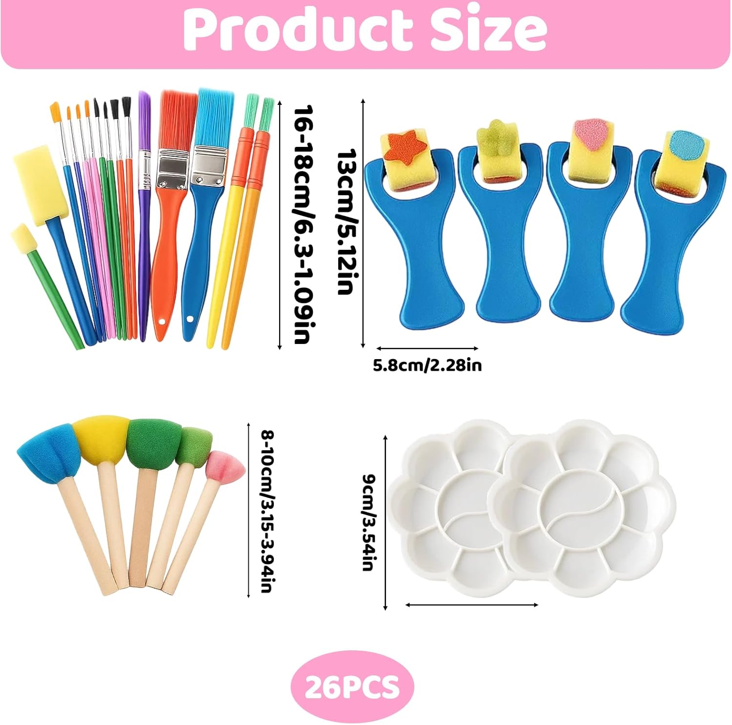 Pittura creativa: il set da 26 pezzi promuove la creatività e l'immaginazione dei bambini dai 2 anni in su; include 5 timbri a funghi, 15 pennelli, 4 piccoli elastici e 2 tavolozze di colori per una varietà di progetti di pittura Materiale sicuro: tutti i componenti sono realizzati con materiali atossici e appositamente progettati per le mani piccole; le maniglie ergonomiche consentono una facile presa e pittura Molteplici applicazioni: ideale per diverse tecniche di pittura come timbri, rulli e pennelli; perfetto per la casa, l'asilo o come attività creativa in viaggio Facile da pulire: le spugne e i pennelli sono facili da pulire con acqua e possono essere riutilizzati più volte; pratici per genitori e istituzioni educative Regalo ideale: il set versatile è perfetto come regalo di compleanno, regalo di Natale o per altre occasioni speciali; Promuove lo sviluppo motorio e le abilità artistiche