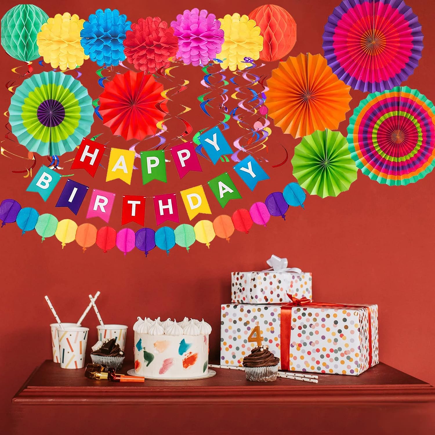 Ampiamente applicabile: il set di decorazioni per feste di buon compleanno è ampiamente utilizzato come festa di baby shower, festa di compleanno, decorazioni per feste a tema. Ottima decorazione: il set di decorazioni per feste è sicuro e può aggiungere colori alla tua festa allo stesso tempo migliorare le atmosfere delle feste. Stile alla moda: le varie belle bandiere origami aggiungeranno divertimento alla tua festa e immergeranno i tuoi ospiti in un'esperienza indimenticabile. Utile: il set di decorazioni per feste aggiunge tutti i tipi di divertimento alle tue feste e ti aiuta a risparmiare denaro ed energia. Facile da montare: basta posizionare, aprire e appendere il set di decorazioni su parete, soffitto, albero, porta, tenda, finestra, caminetto, corridoio, balcone, ecc.
