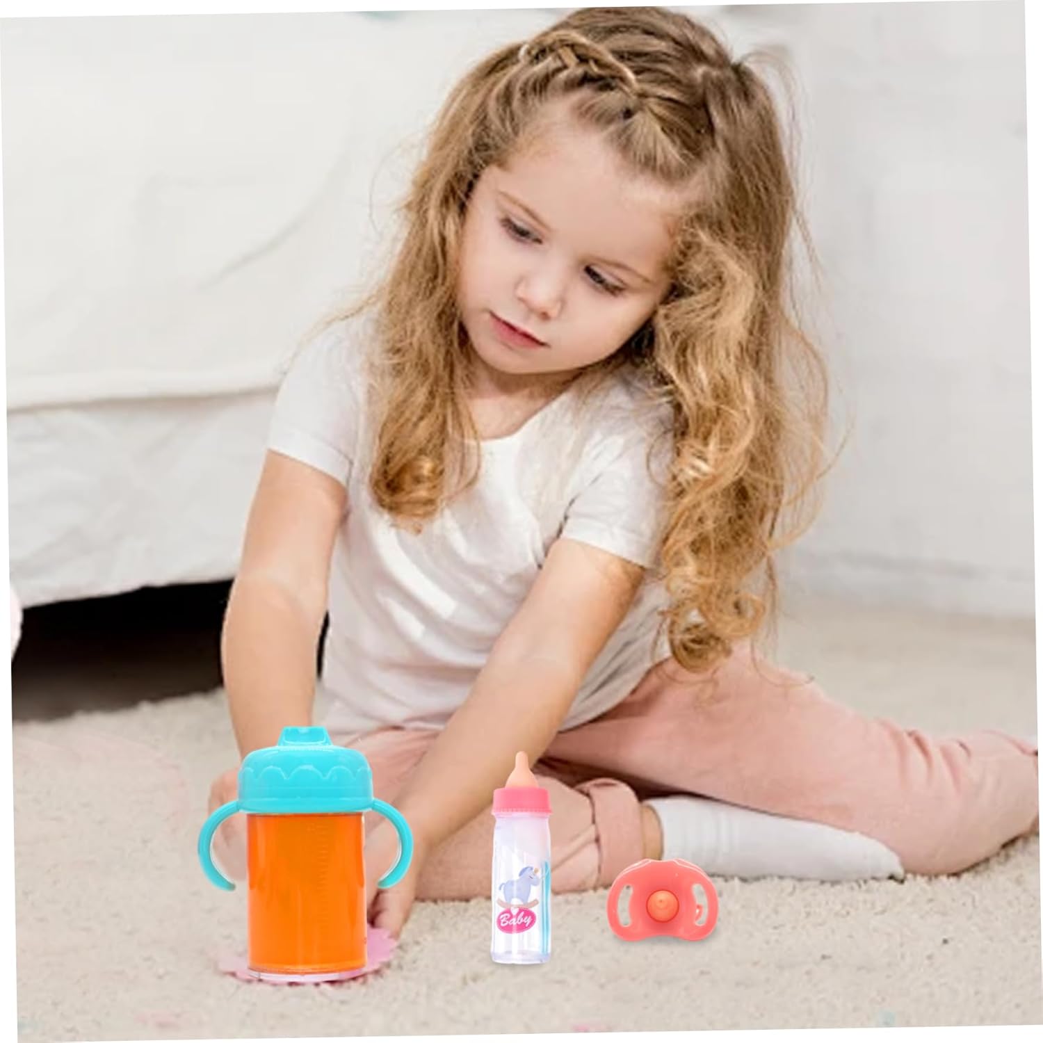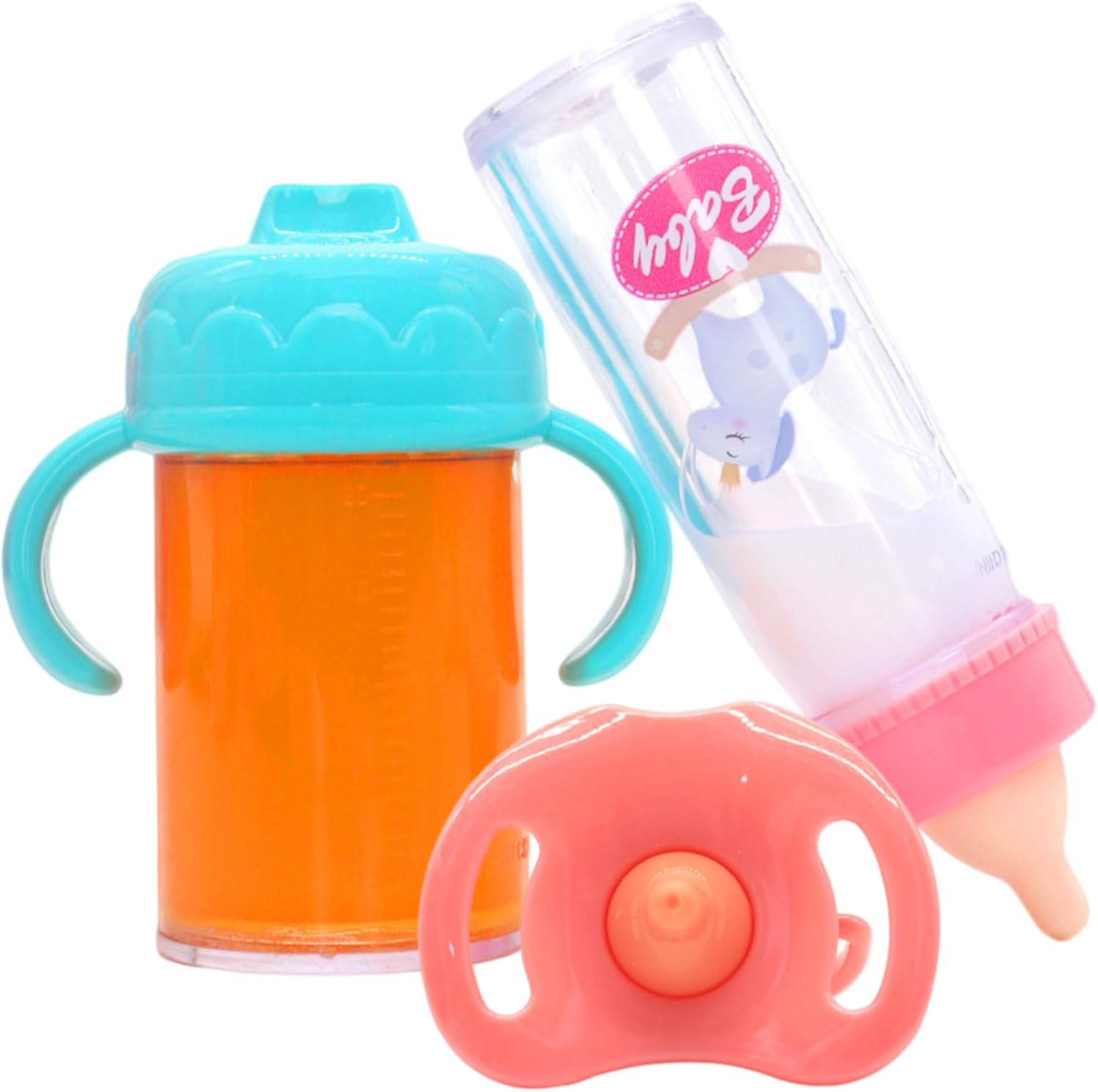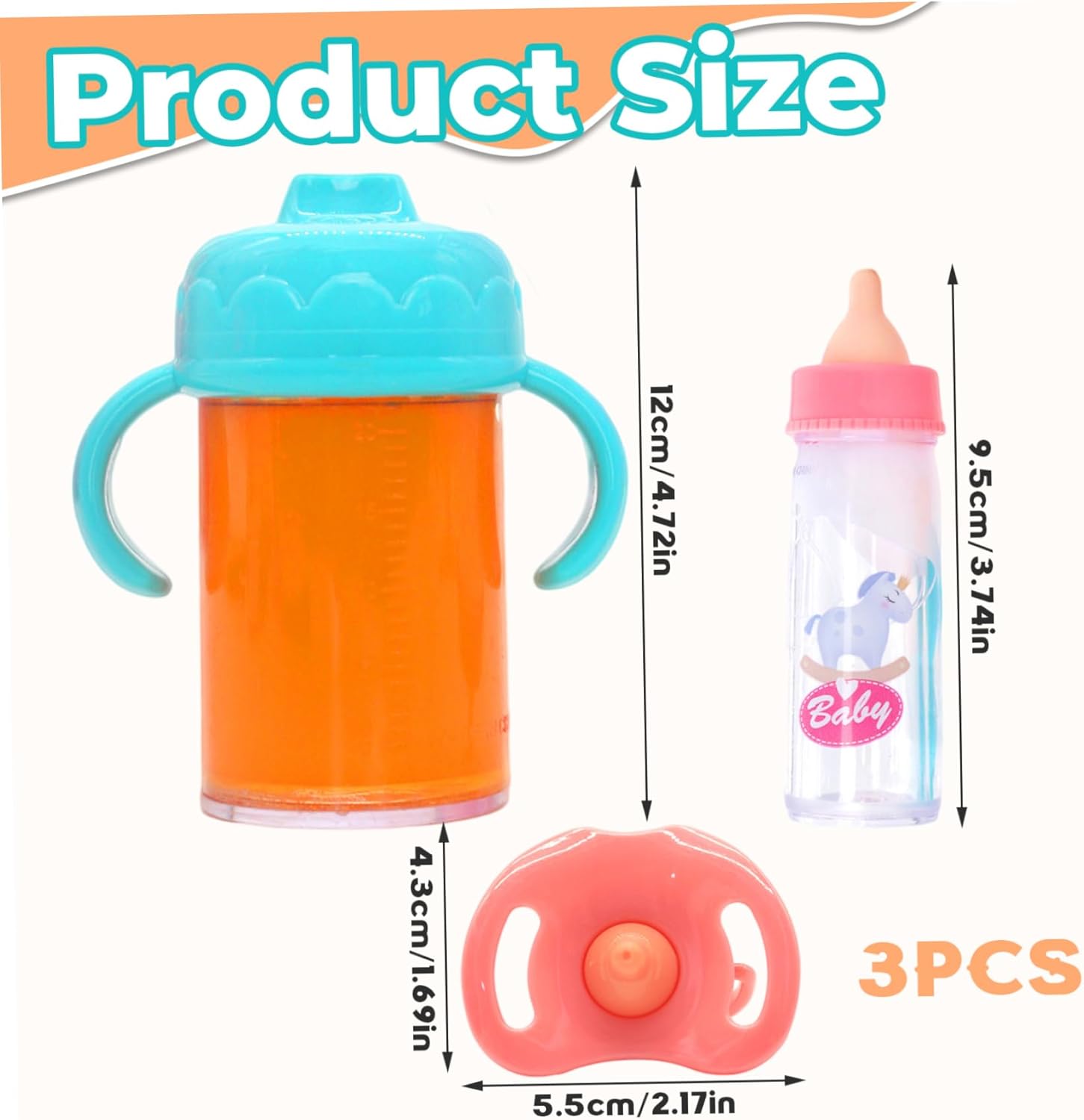 Materiali sicuri e adatti ai bambini: realizzate in plastica atossica e priva di BPA, queste bottiglie giocattolo garantiscono sicurezza durante il gioco, rendendole adatte ai bambini per un utilizzo senza preoccupazioni. Coinvolge la creatività e il gioco di ruolo: imitando le routine di alimentazione, i bambini sviluppano capacità educative e narrazioni fantasiose, promuovendo la crescita emotiva e il pensiero creativo attraverso la cura interattiva delle bambole. SET IDEALE PER BAMBINI: composto da tre biberon colorati e ciucci, questo affascinante set è un regalo delizioso per compleanni, vacanze o occasioni speciali, perfetto per incoraggiare ore di divertimento e apprendimento. Esperienza di alimentazione realistica: questi 3 biberon per bambole con tettarelle simulano l'allattamento reale del bambino presentando latte o succo che scompare magicamente quando la bambola si nutre, offrendo ai bambini un gioco coinvolgente e interattivo. DIMENSIONE PERFETTA PER GLI ACCESSORI PER BAMBOLE: Progettato per adattarsi alla maggior parte delle bambole standard, questo set per la pappa migliora il gioco fantasioso fornendo accessori per bambole realistici facili da tenere e gestire per le mani dei più piccoli.