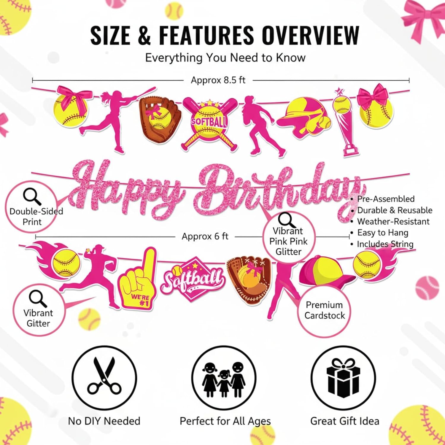 La confezione include: 1 striscione rosa Happy Birthday e 2 bandiere con design softball, 3 decorazioni di compleanno in totale. Queste decorazioni per feste di softball sono perfette per ravvivare l'arredamento della tua festa di compleanno di softball e aggiungere un vivace tocco festoso che renderà la tua festa ancora più divertente e memorabile per tutti. Materiale: realizzate con carta di alta qualità, queste decorazioni di compleanno sono leggere, ecologiche e facili da maneggiare. Il materiale cartaceo garantisce che le decorazioni per le feste di softball siano sicure per le feste di compleanno delle ragazze, ma anche abbastanza robuste da rimanere intatte durante tutto l'evento e rendere le tue decorazioni di compleanno di softball pulite e attraenti. Dimensioni e funzione: lo striscione Happy Birthday è lungo circa 6 piedi ed è ideale per essere appeso a pareti o fondali. Queste dimensioni rendono le decorazioni di compleanno di softball più versatili rispetto alle tradizionali decorazioni di compleanno. Si adattano a diverse sale per feste e aumentano l'atmosfera festosa generale. Scenari e regali: progettate per gli appassionati di softball, queste decorazioni sono perfette per feste di compleanno di ragazze, riunioni di softball o qualsiasi evento sportivo. Portano un'atmosfera allegra ed energica, rendendole meravigliose decorazioni di compleanno di softball che delizieranno i bambini e gli ospiti - sono adatte anche come regalo adorabile per qualcuno che sta progettando un layout per le decorazioni della festa di compleanno di softball. Facile da usare: basta aprire lo striscione e le bandiere, quindi appenderli con filo o nastro adesivo (non incluso) - Non sono necessari passaggi complicati. Questa semplicità ti fa risparmiare tempo e ti consente di trasformare rapidamente la tua stanza in un luogo vivace con queste decorazioni di compleanno, così puoi concentrarti sul divertimento delle decorazioni e dei festeggiamenti per le feste di softball.