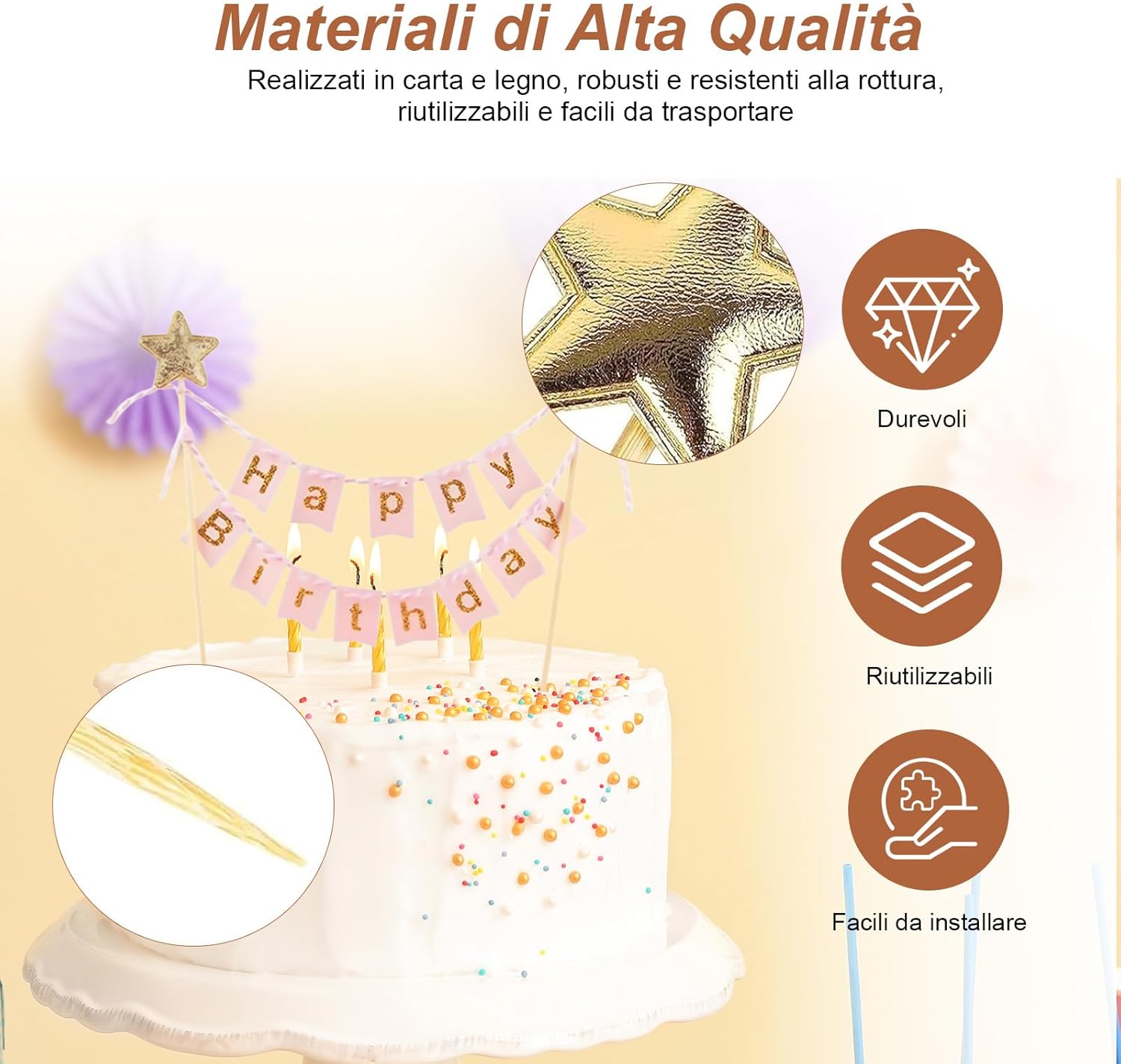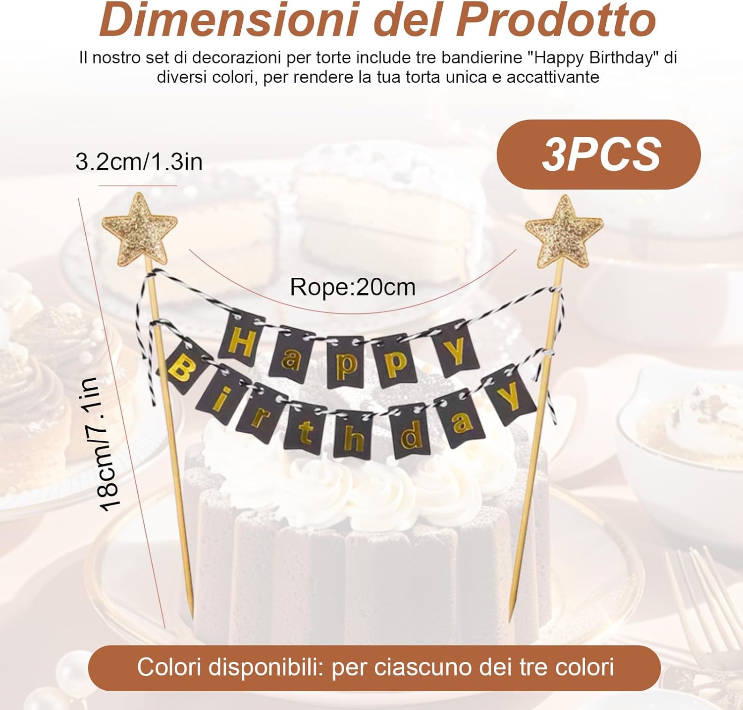 Contenuto della confezione: i Tortendeko "Buon compleanno" sono composti da 3 diversi colori di carta spessa. Questo set di 3 pezzi offre molte possibilità di decorazione. Si adattano a diversi stili di cucina per renderla più attraente Materiali di alta qualità: i Tortendeko "Buon compleanno" sono realizzati in carta spessa, resistente, infrangibile e riciclabile. Queste decorazioni sono solo decorative e non commestibili Caratteristiche: i 3 tipi di striscioni "Buon compleanno" sono realizzati in carta spessa e sono fissati a bastoncini di legno. Questi ultimi sono riutilizzabili dopo il lavaggio Facile da usare: i Tortendeko "Buon compleanno" sono da montare. Basta attaccare i bastoncini di legno al vassoio per torte e poi inserirli nella torta Usi versatili: le decorazioni "Happy Birthday Tortendeko" sono perfette per feste di compleanno, baby shower, feste di compleanno, decorazioni per feste di compleanno, cupcake, gelati e dessert. Sono ideali per feste di compleanno
