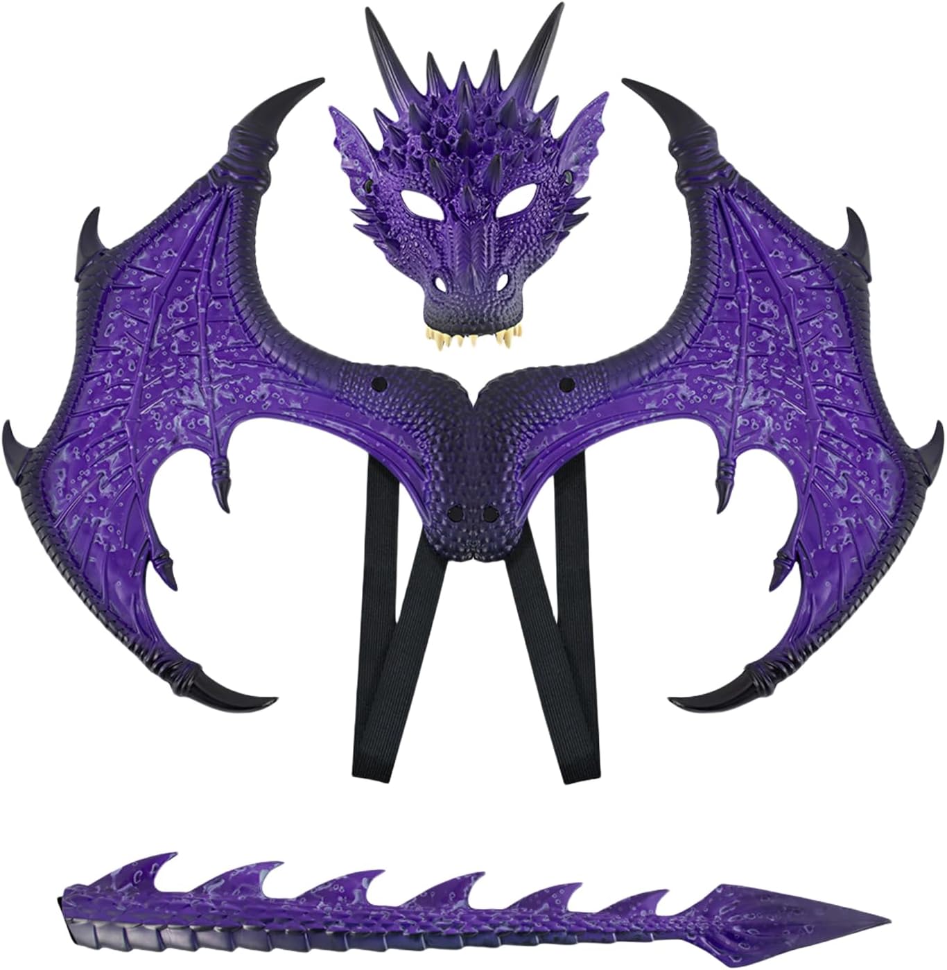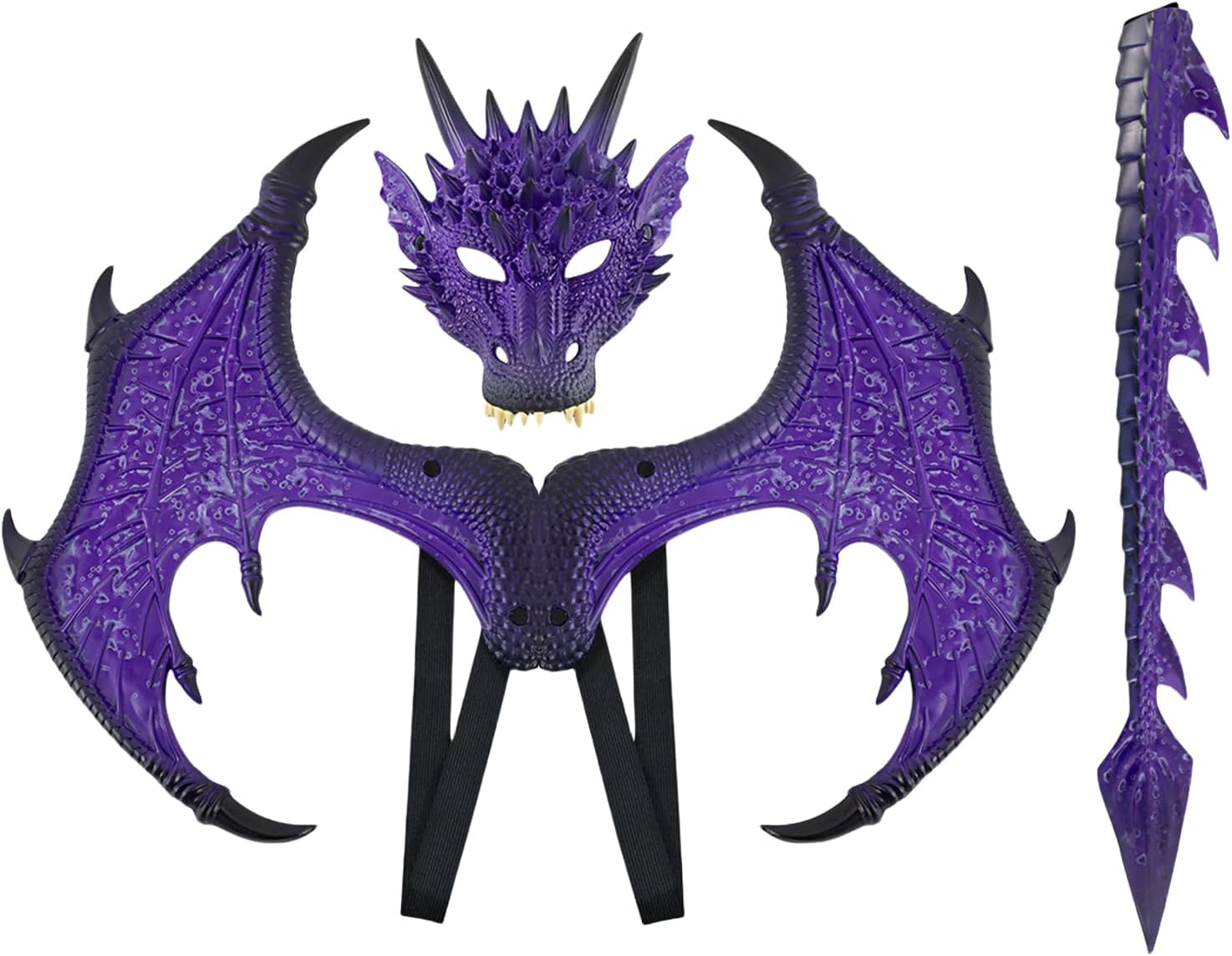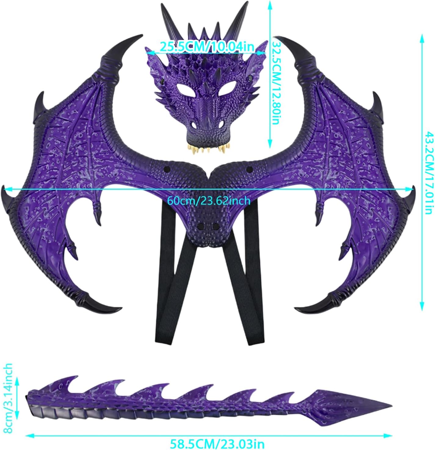 Set di 3 costumi da drago di Halloween, ali di drago, coda e maschere per Halloween, cosplay, bambini Caratteristiche: Materiali, tessuto sano schiuma di gomma, leggero e comodo da indossare e non danneggiare. Dragon Designs, Dragon Designs farà avverare il vostro Kids Dragon Dream! creerà atmosfere emozionanti alla festa in costume. Applicazione: adatto per Halloween, feste in maschera, feste in costume, festival della birra, foglietti, carnevale, Natale, o altre feste. Grazie all'ampia tracolla elastica, l'ala di dinosauro rimane in posizione e comoda per la spalla. Regalo meraviglioso, regalo speciale per il tuo amico, la tua famiglia o te stesso. Specifiche: Materiali: schiuma di gomma La confezione include: 1 set costume da drago di Nota: Si prega di considerare un margine di errore di 1-2 cm a causa della misurazione manuale. A causa della differenza tra i diversi monitor, l'immagine potrebbe non riflettere il colore reale dell'articolo.