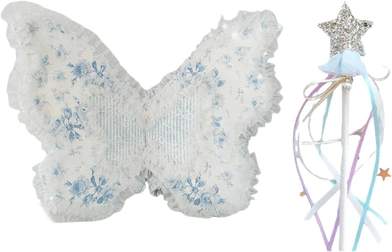 Combinazione di copricapo e bastoncini: il set include squisito copricapo e bastone magico, migliorando il divertimento del gioco di ruolo e stimolando l'immaginazione dei bambini Facile da indossare e regolare: il design è facile da usare e può facilmente regolare in base ai diversi tipi di corpo, garantendo un uso comodo e stabile Elegante: non solo adatto per il gioco quotidiano in famiglia e le attività scolastiche, ma anche come accessorio fotografico professionale per creare un fascino unico Tessuto squisito: tessuto morbido, confortevole e resistente al tatto, adatto per i bambini da indossare a lungo, sicuro e non irritante Design realistico con ali di farfalla: il design unico della coppia di ali di farfalla con colori vivaci e texture delicate, creando un effetto visivo da sogno