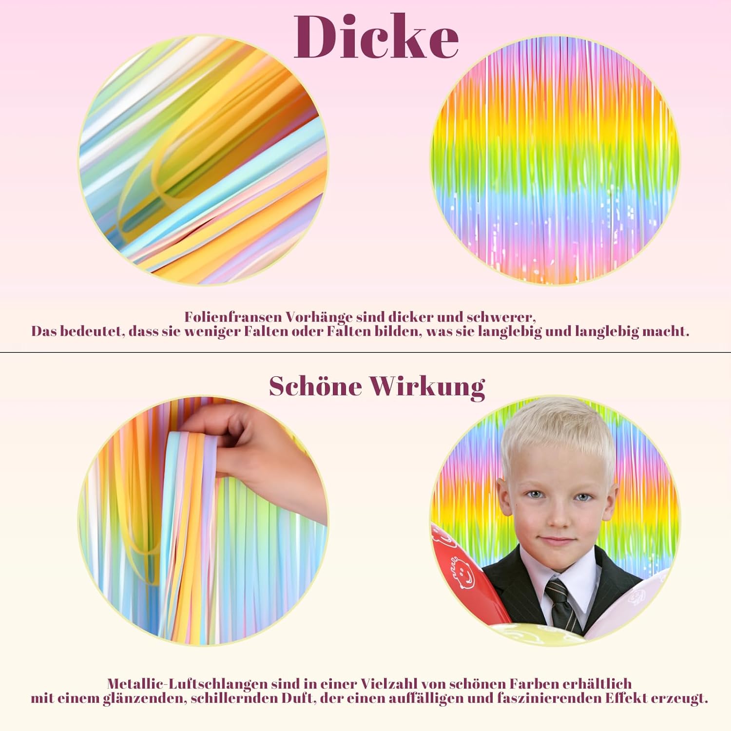 Tenda orpello: il set da 3 pezzi offre una decorazione versatile per diverse occasioni; la tenda arcobaleno dona alla tua casa un'atmosfera allegra; ideale per feste ed eventi speciali. Tenda per feste: le tende colorate in tinsel sono leggere e ariose; perfette per decorare il soggiorno e la camera da letto; Facile da installare e rimuovere. Tenda arcobaleno: le strisce colorate creano un aspetto vivace; Adatto per interni ed esterni protetti; Può essere utilizzato come divisorio o decorazione per finestre. Tenda a lame: realizzata in materiale di alta qualità per una lunga durata; la struttura leggera permette un movimento naturale; facile da pulire e facile da pulire. Tenda per feste: aggiunge un tocco di festa a qualsiasi celebrazione; i suoi molteplici usi lo rendono un elemento decorativo popolare; perfetto per matrimoni, compleanni e altre celebrazioni.