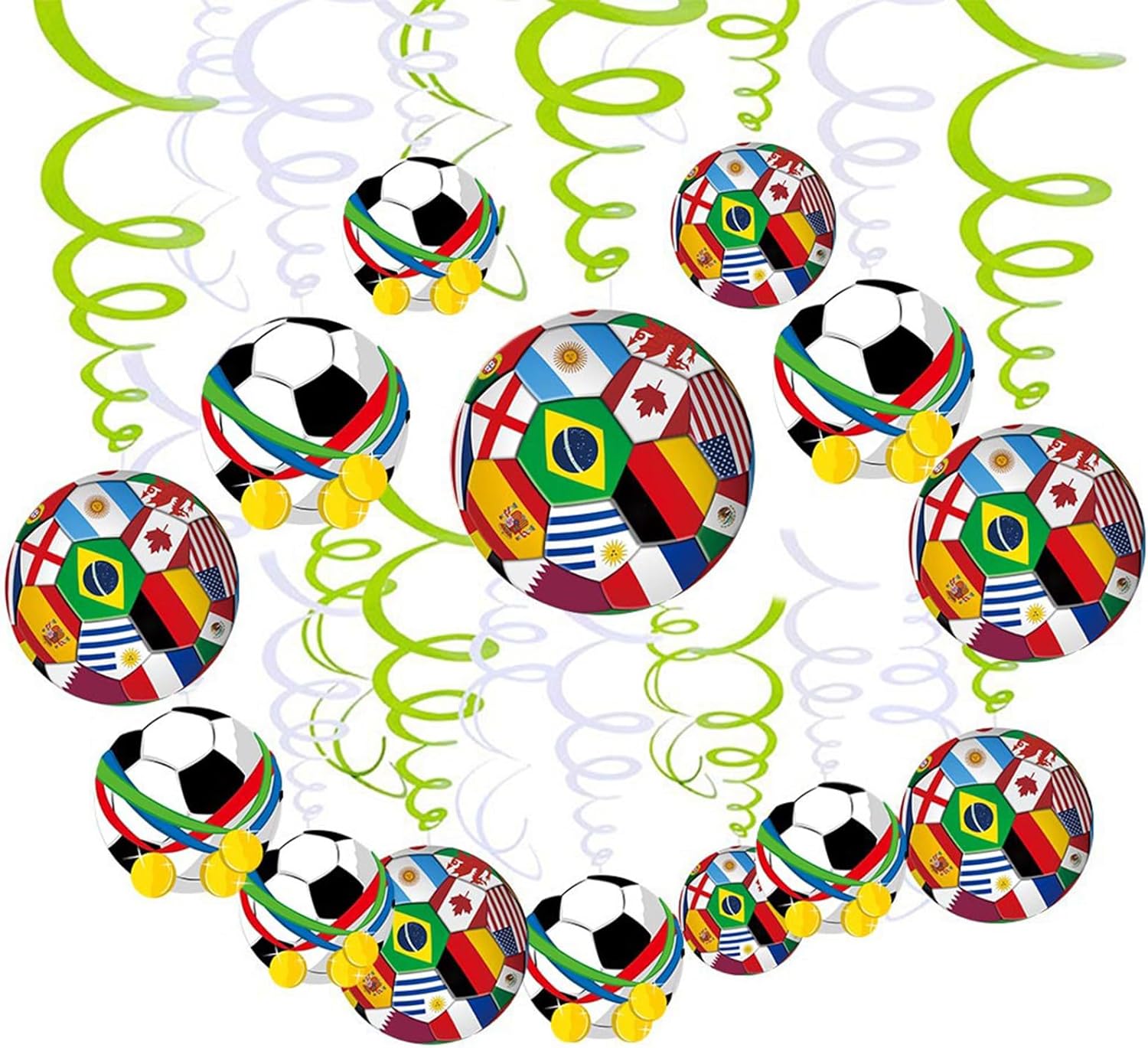 Include 30 vortici da appendere, adatti per la distribuzione di decorazioni sportive in famiglia, amici o eventi scolastici per creare un'atmosfera emozionante. Adatto per decorare pareti, mobili, stanze, ingressi, negozi e molto altro ancora. Ottimi oggetti di scena per eventi sportivi, eventi sportivi a tema e gioco. Inizia la tua festa con la decorazione, rendi la tua festa piena di atmosfera sportiva. Realizzato in carta e PVC, sicuro, stabile, non facile da scoppiare improvvisamente e riutilizzabile.