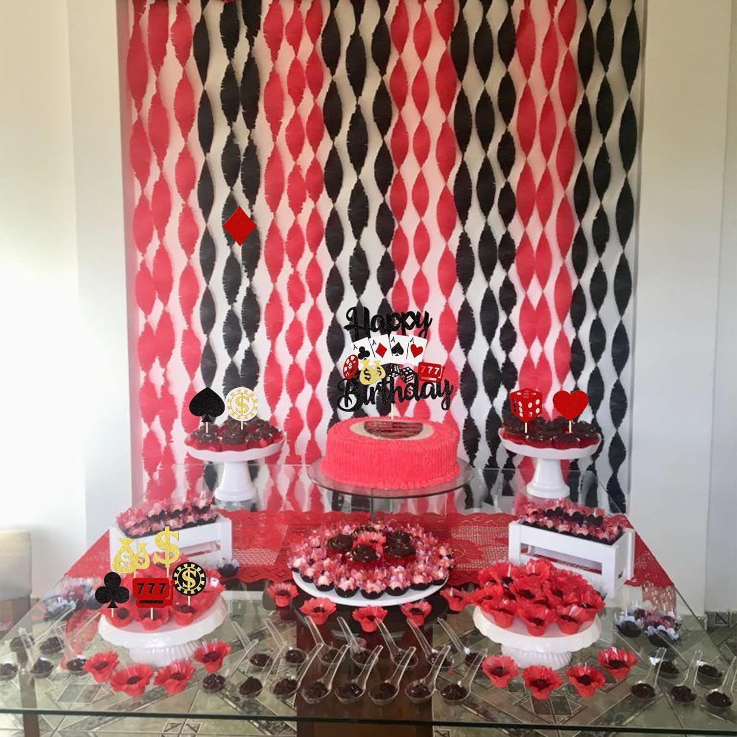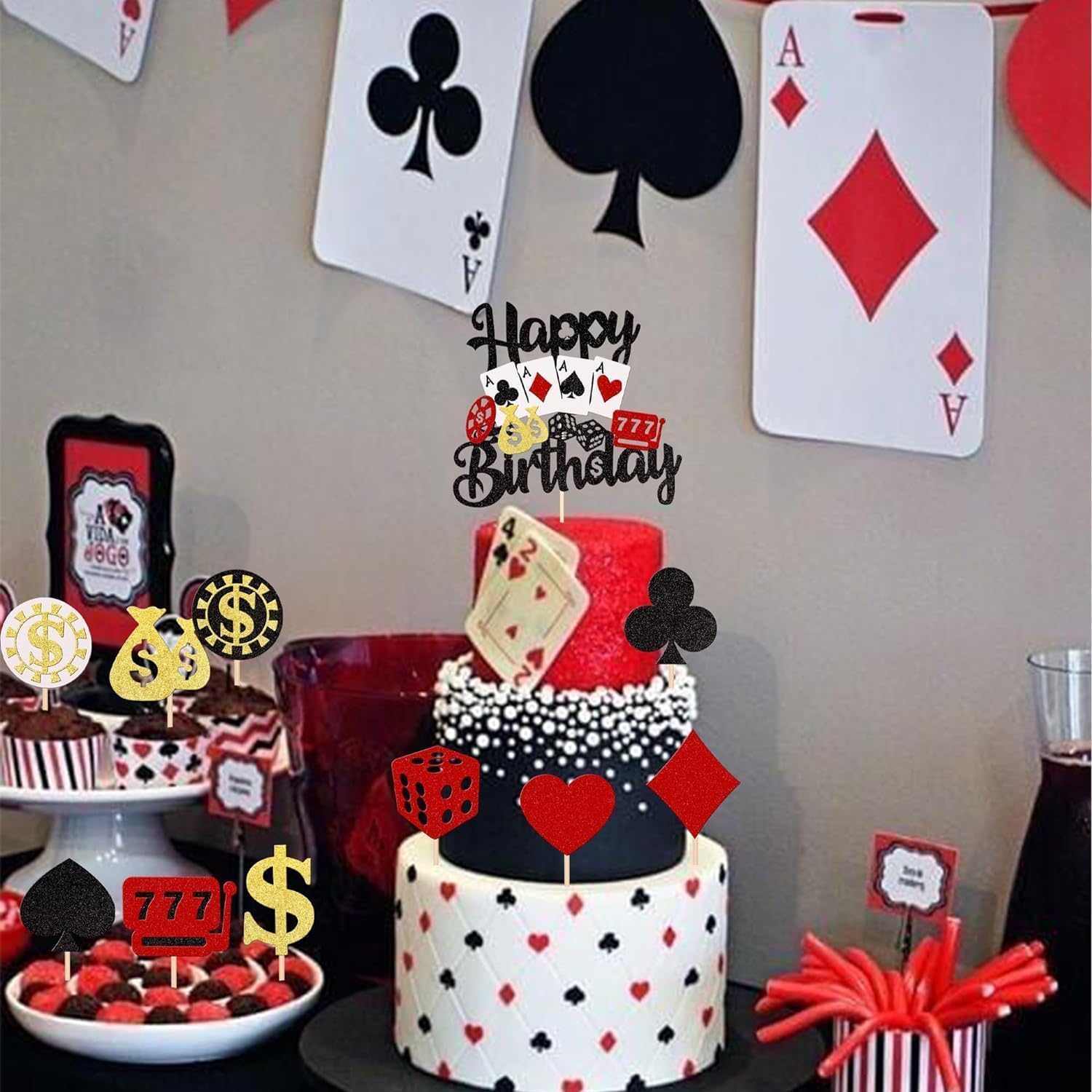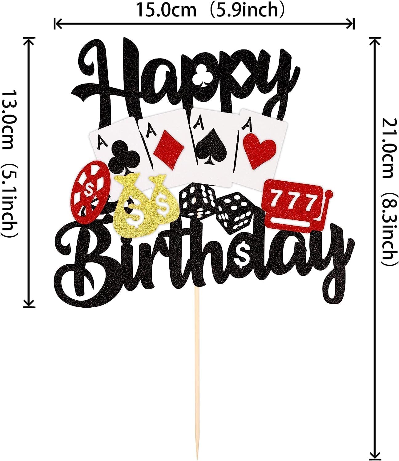 Materiale: i nostri toppers per cupcake sono realizzati in cartone glitterato su un lato spesso di alta qualità e bambù per uso alimentare, non tossico, inodore e non facile da rompere, il che li rende sicuri e affidabili. Contenuto della confezione: contiene 31 toppers per cupcake, 1 topper per torta + 30 toppers per cupcake (6 pezzi per ogni disegno) che possono creare DIMENSIONI diverse: la dimensione è 1,5 x 4,3 pollici / 2,4 x 3,6 pollici / 2,1 x 4,7 pollici / 1,9 x 4,5 pollici (con bastoncino) Applicazione: decorazione perfetta per cupcake, biscotti, torte, frutta, brownies, gelati e altro ancora, particolarmente adatta per il poker giochi con fiches, feste a tema casinò, feste a tema Las Vegas, decorazioni per torte per feste di compleanno al casinò. Suggerimenti: la nostra massima priorità è la vostra soddisfazione. Se non sei assolutamente soddisfatto del prodotto, ti rimborseremo per intero. Questi toppers per cupcake non sono commestibili e servono solo come decorazione. Si prega di non metterli nel forno o nel microonde.