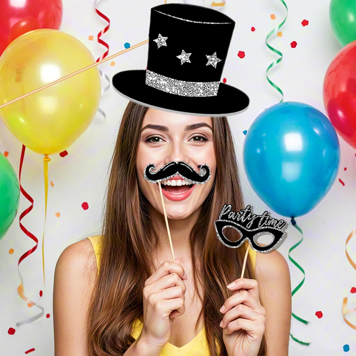 Set completo da 36 pezzi per divertirsi istantaneamente: gli accessori per feste contengono 36 versatili accessori come occhiali divertenti, baffi, cappelli, lavagne di testo e cartellini emoji, perfetti per feste di compleanno per bambini, matrimoni o eventi aziendali senza tempo di preparazione Universale per grandi e piccini: accessori per feste per bambini e adulti, oggetti di scena extra stabili in schiuma ecologica con bordi lisci, sicuri per bambini a partire dai 3 anni e abbastanza robusto per feste per adulti esuberanti Facile da montare: la galleria fotografica di compleanno richiede la decorazione non è un processo di assemblaggio molto complicato, basta aprire la confezione e incollarla con un semplice assemblaggio, e puoi goderti una festa felice. È necessario rimuovere la colla, incollarla al bastone, incollarla allo strumento. Con colla e requisiti predeterminati, l'arredamento è facile da gestire Divertimento coinvolgente: questo accessorio decorativo per feste di compleanno è realizzato in carta per feste di alta qualità, è piccolo, leggero e non ha odore sgradevole, quindi è facile da trasportare. Sono leggeri e confortevoli, in modo da poter godere di ore di risate e momenti indimenticabili Molteplici occasioni: gli accessori Qwrqwr Photo Box offrono una vasta gamma di accessori divertenti e creativi per migliorare la tua esperienza di festa. Da strane barbe e occhiali stupidi a strani segni e cappelli comici, ognuno ha qualcosa per se stessi. Che si tratti di feste di compleanno, feste di matrimonio o occasioni speciali, le decorazioni di compleanno sono l'aggiunta perfetta ai tuoi eventi. Le nostre dimensioni accuratamente progettate possono soddisfare le esigenze di diversi amici, in modo che tu ei tuoi amici possiate festeggiare una festa perfetta e indimenticabile