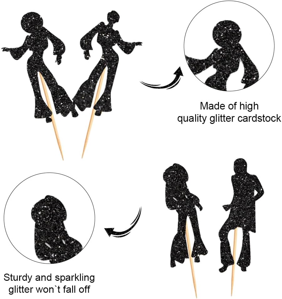 DECORATORI PER TORTE DA DISCO: Riceverai 36 inserti per topper cupcake a tema Disco Ball Music, questi 36 mini inserti per topper cupcake contengono 6 diversi disegni di figure danzanti da discoteca, 6 fogli di ciascun disegno. Gli speciali toppers per cupcake a tema discoteca rendono i cupcakes ancora più belli e accattivanti e portano divertimento alla festa. MATERIALE DI QUALITÀ PREMIUM: queste divertenti decorazioni per torte da discoteca sono realizzate in cartone alimentare di alta qualità e asta di bambù, sicure, non tossiche, inodore. Il materiale è durevole, riutilizzabile e bello da vedere, lo squisito design nero lucido e la creatività faranno risplendere la tua torta di compleanno, aggiungeranno più gioia alla tua festa di compleanno e creeranno un'atmosfera molto romantica. FACILI DA USARE: queste decorazioni per torte da discoteca sono meravigliosamente uniche, semplici, pratiche e veloci da usare, devi solo aggiungere decorazioni per torte alle tue torte, cupcake e piatti di frutta per stuzzicare l'appetito delle persone e rendere le tue torte più dolci e squisite. Nota: questa decorazione per torta non è commestibile ed è solo a scopo decorativo. Non utilizzarlo nel forno o nel microonde. DECORAZIONE TORTA DI COMPLEANNO: Questi toppers per torta da discoteca anni '70 sono perfetti per decorare torte, cupcakes, gelati, dessert, biscotti, ciambelle, frutta, formaggio, pane, muffin, ecc. Per rendere il tuo pasto delizioso e aggiungere un tocco meraviglioso alla tua tavola. Puoi inserire questi cake toppers sulla parte superiore della tua torta per renderli adatti a decorare torte, dolci o altri pasticcini per rendere unica la tua torta. OCCASIONI APPLICABILI: Questi toppers da discoteca sono adatti per molte occasioni, possono essere utilizzati per feste a tema musicale, feste a tema anni '70 e '80, feste vintage, feste di compleanno, feste a tema hippie, anniversari, decorazioni per feste di matrimonio, feste in giardino, riunioni di famiglia, tutte le feste a tema danzante e altro ancora. Può rendere la tua festa un'esperienza indimenticabile.
