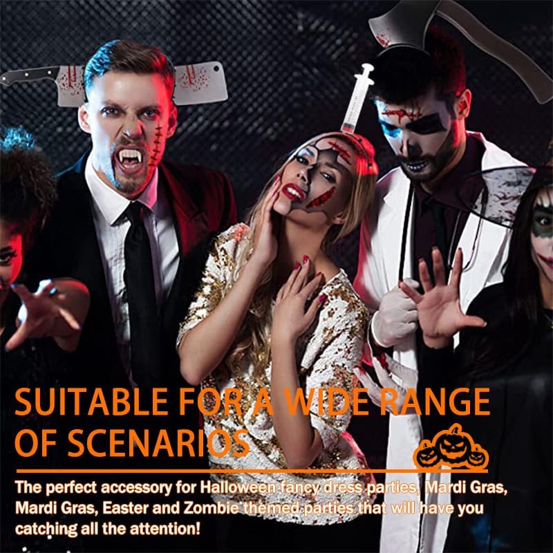 Comprato per la festa di Halloween con amici e devo dire che è stato un vero successo! Nel pacco ci sono ben quattro fasce diverse, tutte con un effetto horror super realistico (coltello, machete, ecc.), davvero spaventose e perfette per creare l’atmosfera. La plastica è morbida, si indossano senza problemi anche per molte ore e non danno fastidio ai capelli – meglio di tante altre provate in passato! Bonus incredibile: ci sono anche 30 tatuaggi adesivi con cicatrici e ferite, facili da mettere e super realistici! Li hanno amati sia i bambini che gli adulti, e hanno completato il travestimento alla grande. Ottima elasticità: le fasce vanno bene sia per me che per i miei figli, nessun problema e stanno ferme anche durante il gioco. Abbinate al trucco insanguinato hanno fatto davvero una figura pazzesca! Consigliato se volete colpire tutti alla festa, sia per Halloween che carnevale o altre occasioni “spaventose”. Arrivato veloce, prezzo onestissimo. Ricomprerò sicuramente!