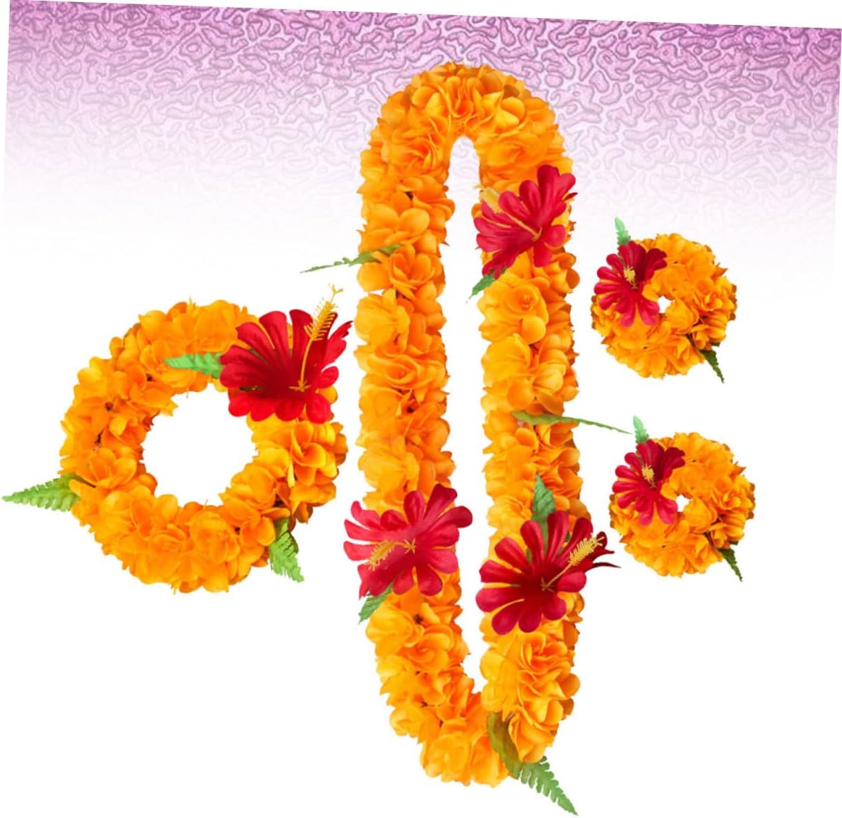 Ghirlanda di fiori artificiali - La dimensione giusta si adatta bene alla maggior parte degli adulti, set da 4 pezzi che include fascia per capelli, collana, 2 braccialetti e collana. Copricapo di fiori - Ottimo vestito adatto per celebrazioni luau estive, feste in costume, viaggi, occasioni speciali ecc., Accessori per la decorazione di feste luau. Bracciale da spiaggia - Fatto a mano con lavorazione squisita, i fiori sembrano naturali e delicati, rendendoli più affascinanti e belli, fasce per il trucco. Ghirlanda hawaiana: un oggetto di scena per il viaggio, crea un momento indimenticabile, ghirlanda di fiori luau. Ghirlanda di fiori artificiali - materiale per un uso duraturo e ripetuto, comodo da indossare, collana luau.
