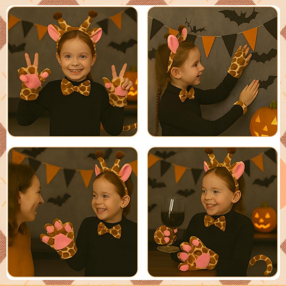 Design: Questo set di animali giraffa presenta un motivo cartoon alla moda e carino, che rende il tuo costume vivace, carino e divertente, ed è adatto sia per uomini che per donne. Materiale morbido: il set di costumi da giraffa per Halloween è realizzato principalmente in tessuto morbido, con la fascia e la coda della giraffa realizzate in un materiale leggermente soffice per un aspetto più realistico. È morbido e comodo da indossare, non si schiaccia ed è un regalo ideale per familiari, bambini e amici. Facile da indossare: la fascia per capelli, il papillon e la coda della giraffa sono dotati di un cordino elastico e sono elastici per una vestibilità comoda. Sono facili da indossare e da togliere, il che li rende molto comodi da indossare e facili da vestire da soli. Ampiamente applicabile: l'accessorio per costume da giraffa è adatto a molte occasioni, come feste di Halloween, feste in maschera, scherzi in famiglia, carnevali, balli di fine anno o feste in maschera di Capodanno, recite scolastiche, feste danzanti o feste di cosplay. La scelta ideale può portare più gioia e attirare l'attenzione della maggior parte delle persone. Cosa riceverai: riceverai un costume da giraffa, inclusi un cerchietto, un papillon, guanti e coda. Un set completo per il tuo cosplay e la tua festa, vivace e carino, che ti renderà il centro dell'attenzione!
