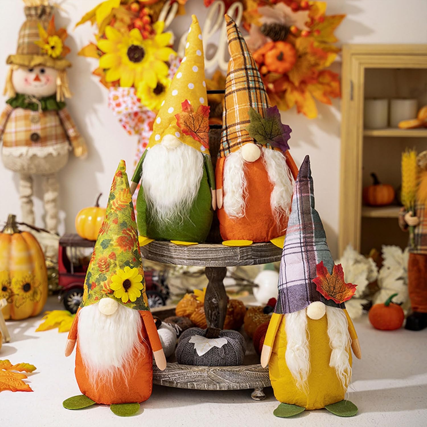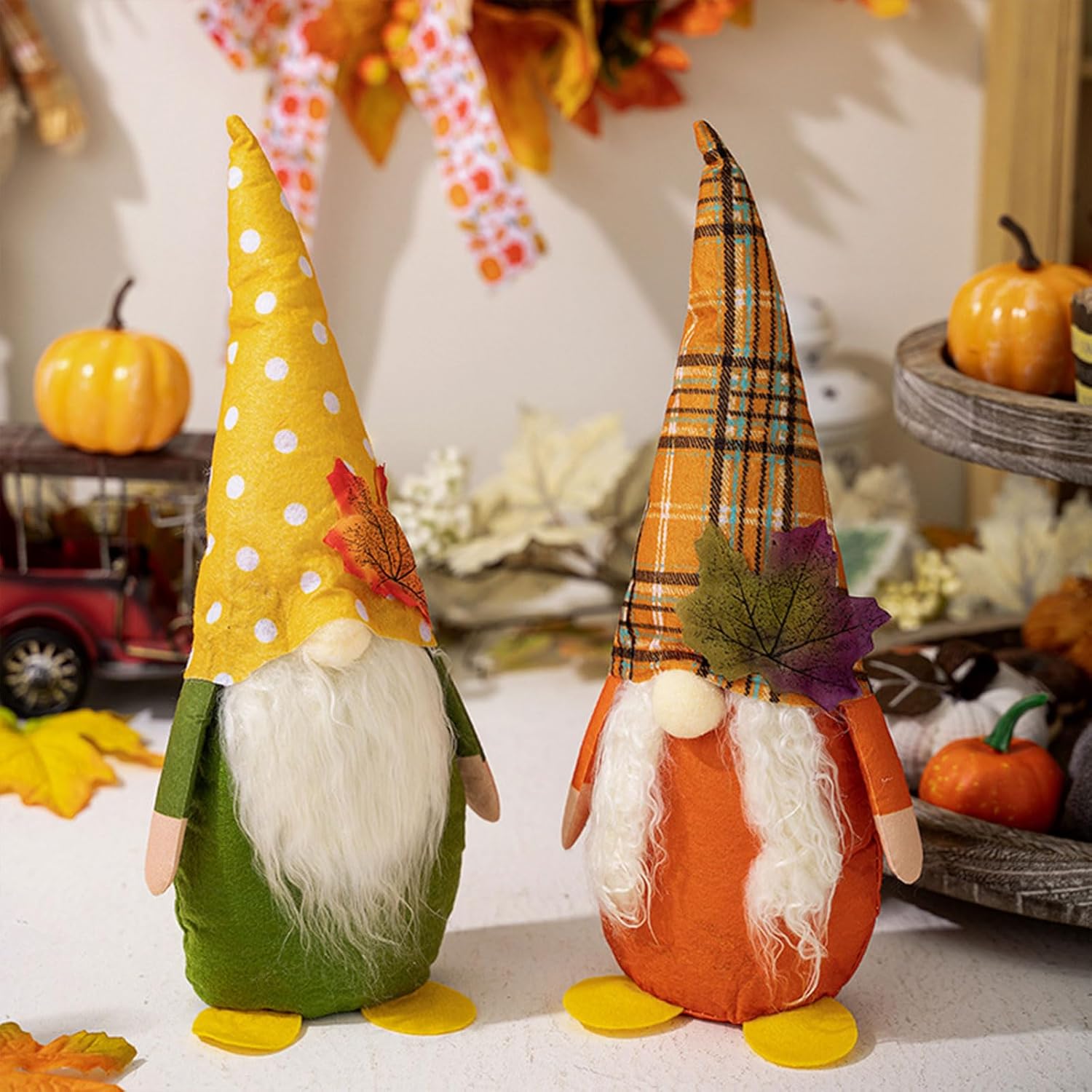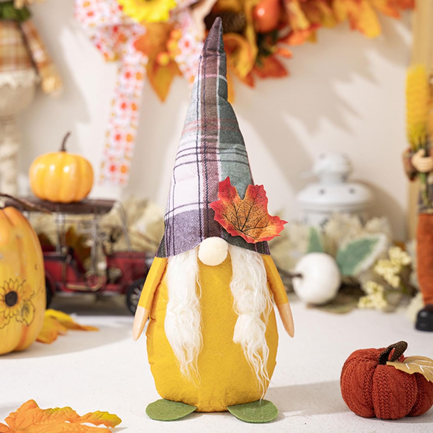 Sia per una festa del Ringraziamento, una riunione di famiglia o come ornamento per negozi, questi gnomi creano un ambiente caldo e invitante ovunque siano esposti Adatto a coloro che amano le belle decorazioni, questi gnomi sono un successo tra famiglie, studenti e impiegati cercano di abbellire il loro spazio per la vacanza Non solo questi gnomi del Ringraziamento servono come accento domestico, ma fanno anche amante, diffondendo piacere e gratitudine durante il periodo festivale Ogni gnomo è alto 10 cm, realizzato con materiali amichevoli con colori vivaci e delicata attenzione ai dettagli, garantendo che si distinguano Festeggia il Ringraziamento con un tocco di chaarm con il nostro set di 4 statuette di gnomi, l'aggiunta alle tue decorazioni per festival