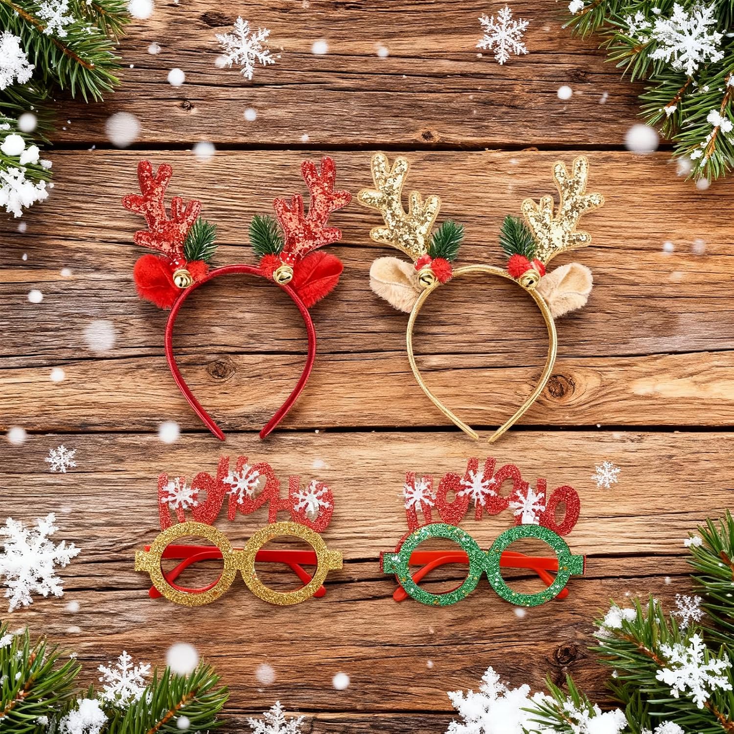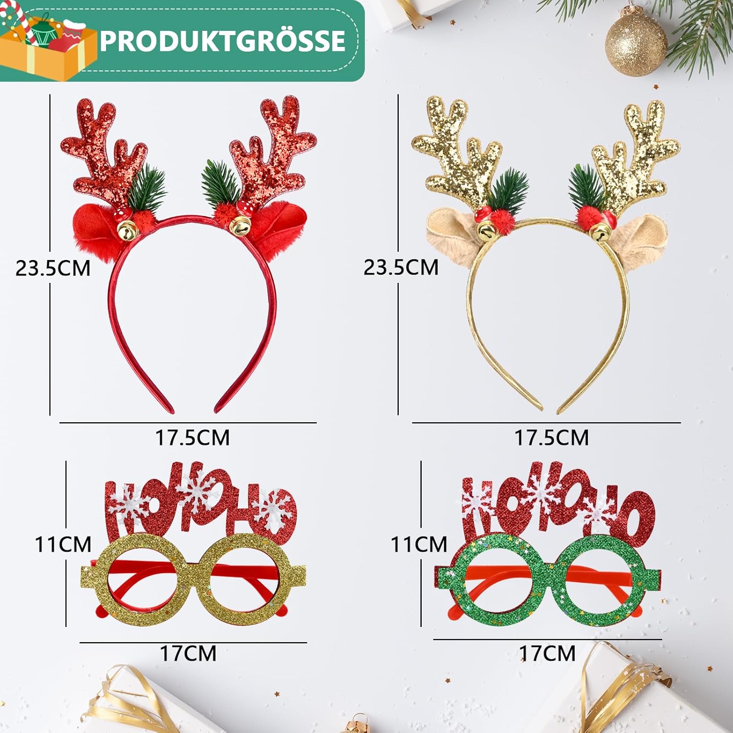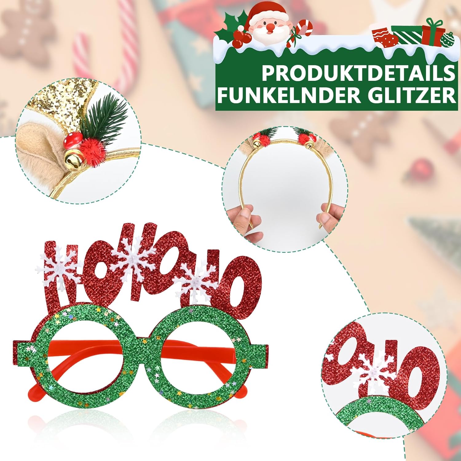 Descrizione prodotto Porta l'atmosfera festosa nel tuo periodo natalizio con questo incantevole set di 4 accessori natalizi. Il set include cerchietti luccicanti con renna e occhiali natalizi coordinati che completano perfettamente il tuo look festivo. I cerchietti per capelli sono decorati con corna scintillanti e offrono una vestibilità comoda per ore di comfort. Ideale per feste di Natale, feste di famiglia o come simpatico accessorio per tutto il periodo dell'Avvento. I materiali di alta qualità garantiscono una presa sicura e il design festivo farà sorridere ogni volto. Adatto a donne e ragazze di tutte le età, questo set aggiunge un tocco giocoso e festoso al tuo outfit. La combinazione di cerchietto, occhiali e fermagli per capelli consente diversi look eleganti per il periodo natalizio. Un accessorio indispensabile per tutti coloro che vogliono godersi appieno il periodo natalizio Avviso di sicurezza Nessuna avvertenza applicabile