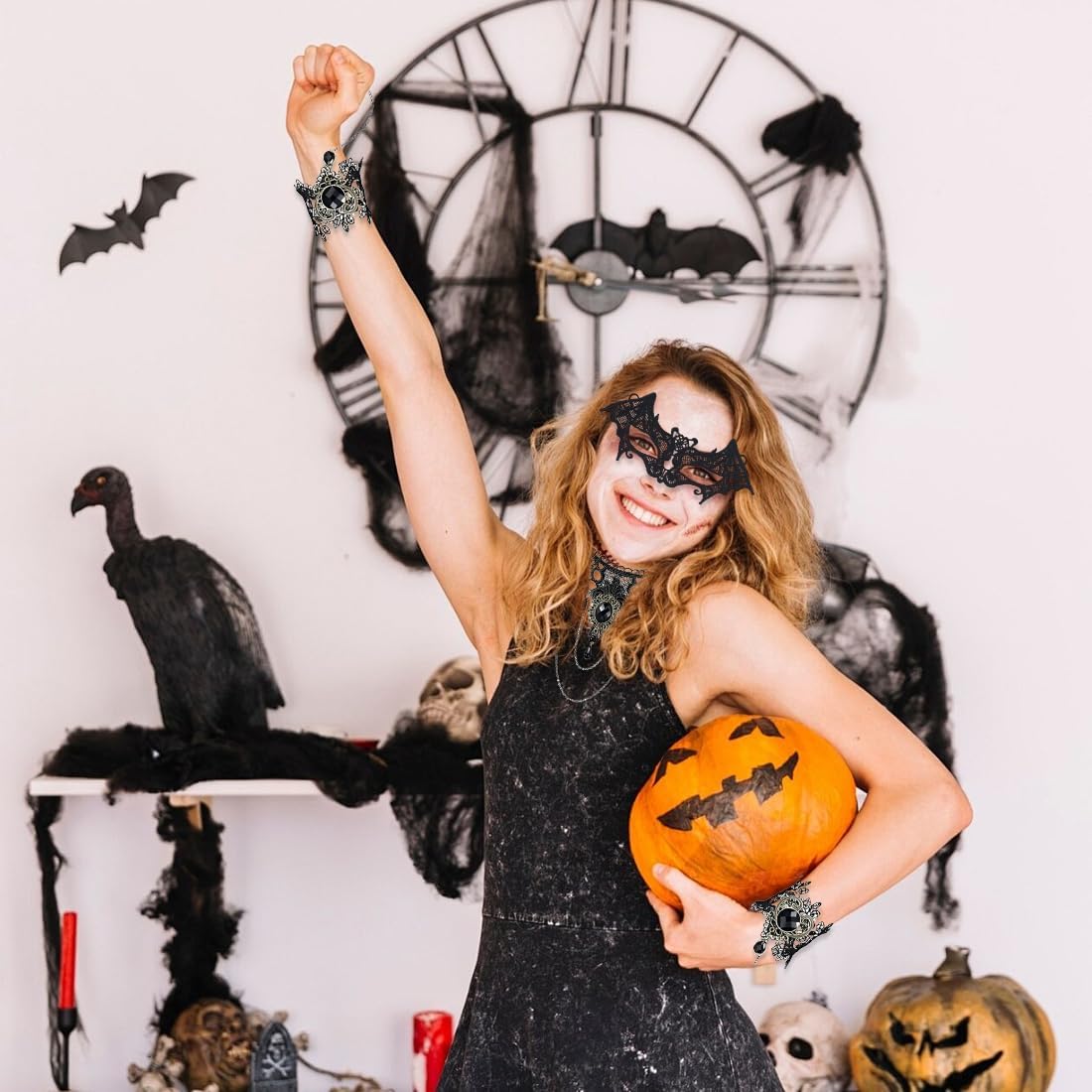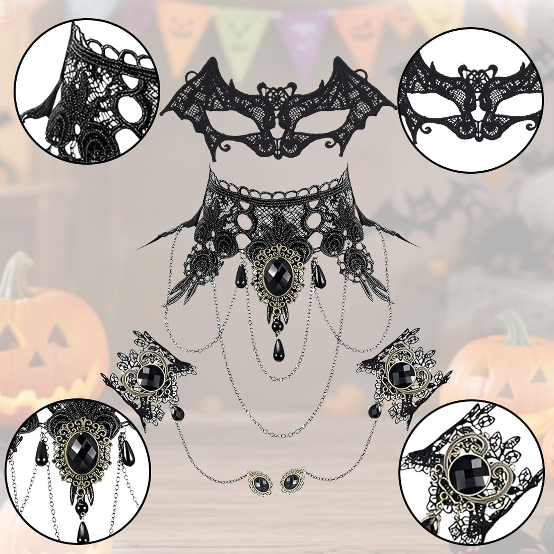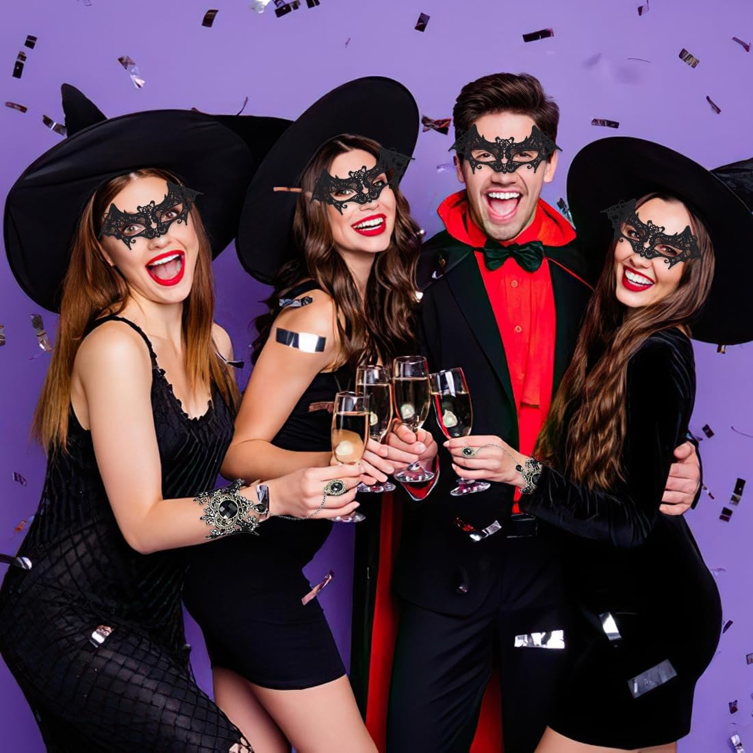 Materiali di alta qualità: Le nostre maschere misteriose sono realizzate in morbido pizzo lavorato a maglia, privo di odori e sostanze tossiche, garantendo un comfort ottimale. La lavorazione accurata e il design delicato offrono una sensazione di lusso, ideale per eventi prolungati come feste di carnevale o serate eleganti Design elegante e unico: Il set di maschere nere in stile gotico aggiunge un tocco di mistero e drammaticità al tuo look. La maschera veneziana scintillante e raffinata cattura l'attenzione e valorizza il tuo fascino, rendendoti protagonista di ogni occasione speciale Versatilità d'uso: Perfette per balli in maschera, Halloween, feste cosplay, carnevale, sfilate di moda e spettacoli teatrali. Questo set di maschere in pizzo è anche un regalo ideale per compleanni, Natale, Capodanno e altre celebrazioni importanti, adattandosi a molteplici occasioni Taglia regolabile: La maschera in pizzo, i braccialetti e il choker sono dotati di una catena di estensione o di un nastro regolabile, garantendo una vestibilità comoda per la maggior parte delle persone. Ideale per donne che cercano comfort e flessibilità senza rinunciare allo stile Set completo e raffinato: Il pacchetto include due maschere e un choker in pizzo, perfettamente coordinati per un look misterioso e sofisticato. Questo set è l'accessorio ideale per completare il tuo outfit e aggiungere un tocco di eleganza alle tue serate in maschera