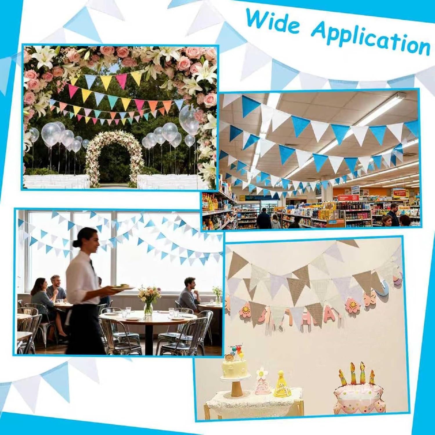 Contenuto della confezione: Hexizexi offre 4 confezioni di bandierine colorate per esterni. Ogni bandiera misura 4 metri di lunghezza, ogni confezione contiene 12 bandiere. Ogni bandiera misura 12,5 × 17 cm, con colori vivaci e ampie quantità per soddisfare le vostre esigenze quotidiane di festa e decorazione Materiale durevole: le bandierine impermeabili Hexizexi sono realizzate in materiale di canapa imitazione di alta qualità e corda di canapa naturale, resistenti allo sbiadimento e all'usura, durevoli e riutilizzabili, adatte sia per uso interno che esterno Colore vivace: le bandierine da giardino colorate Hexizexi offrono sei colori tra cui scegliere: blu, verde, giallo, arancione, rosso e viola, soddisfacendo le tue esigenze per creare spazi e atmosfere diversi e portare più vitalità a feste ed eventi Fai da te personalizzato: le bandierine Hexizexi Party hanno spazi vuoti sulle loro superfici, che consentono di personalizzarle con vernici, adesivi e penne colorate in base alle tue preferenze, creando bandiere triangolari uniche nel suo genere Ampie applicazioni: le bandierine Hexizexi possono essere ampiamente utilizzate in feste di compleanno, matrimoni, decorazioni festive, decorazioni da giardino, camere dei bambini, negozi, ristoranti, campeggio e altre occasioni e ambienti per aggiungere atmosfera e vitalità