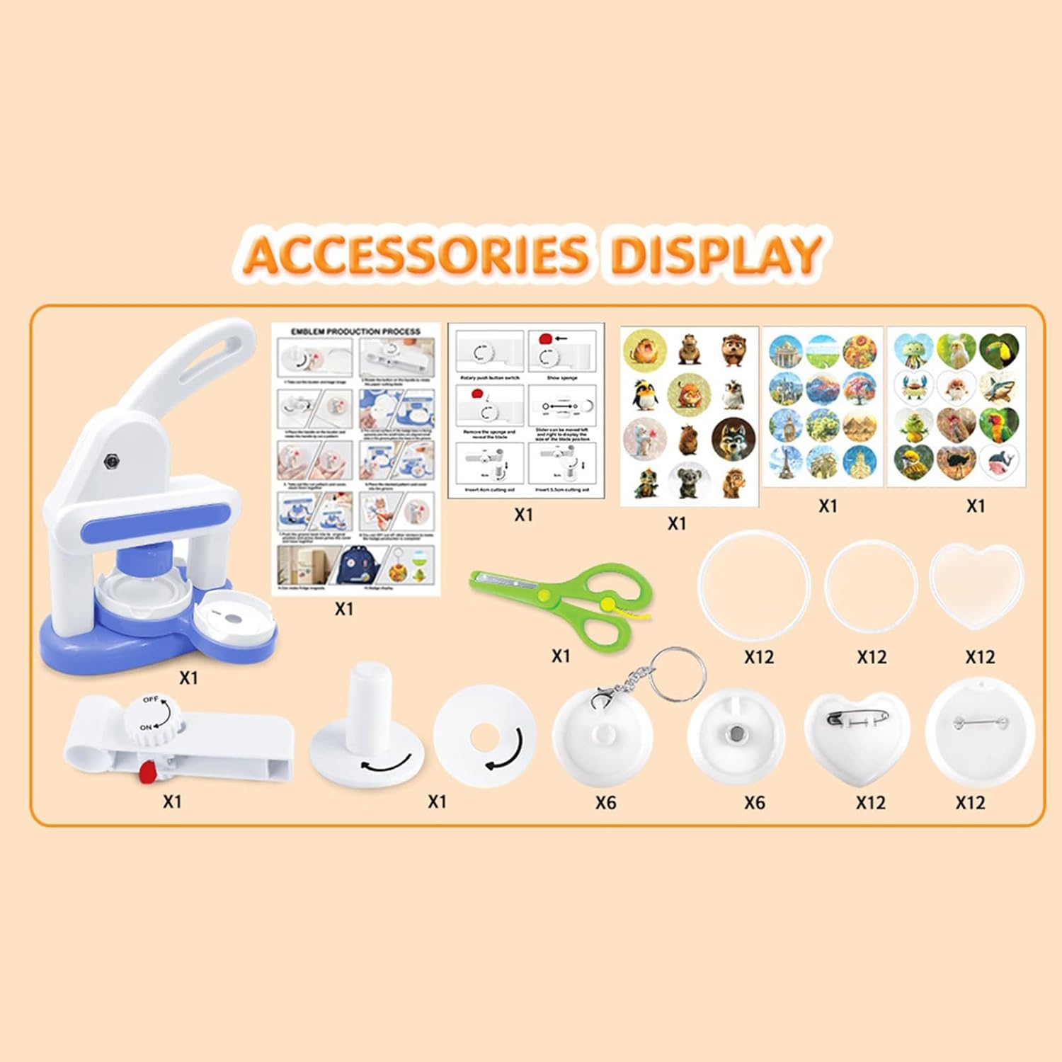 La confezione regalo portatile include tutti gli accessori Badge Maker per bambini, consentendo un'espressione artistica immediata senza configurazioni o strumenti complessi Ideale per bambini e appassionati di artigianato, questo strumento educativo migliora la creatività sviluppando abilità motorie attraverso le personalizzazioni manuali sui badge Il meccanismo di stampa integrato con taglierina circolare da 55 mm garantisce il taglio del modello e il montaggio sicuro del badge utilizzando modelli di design e componenti riutilizzabili Per progetti scolastici, regali di festa come ornamenti di Natale, forniture per feste di compleanno o personalizzare con foto, disegni e adesivi decorativi Crea fino a 48 distintivi unici con questo set Button Maker Machine, con struttura in ABS e bordi arrotondati sicuri per i bambini per il fai da te
