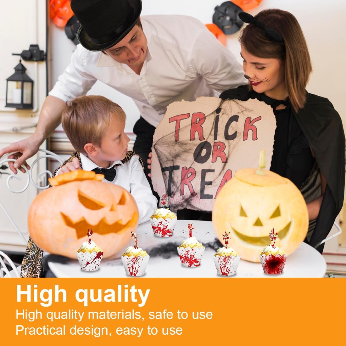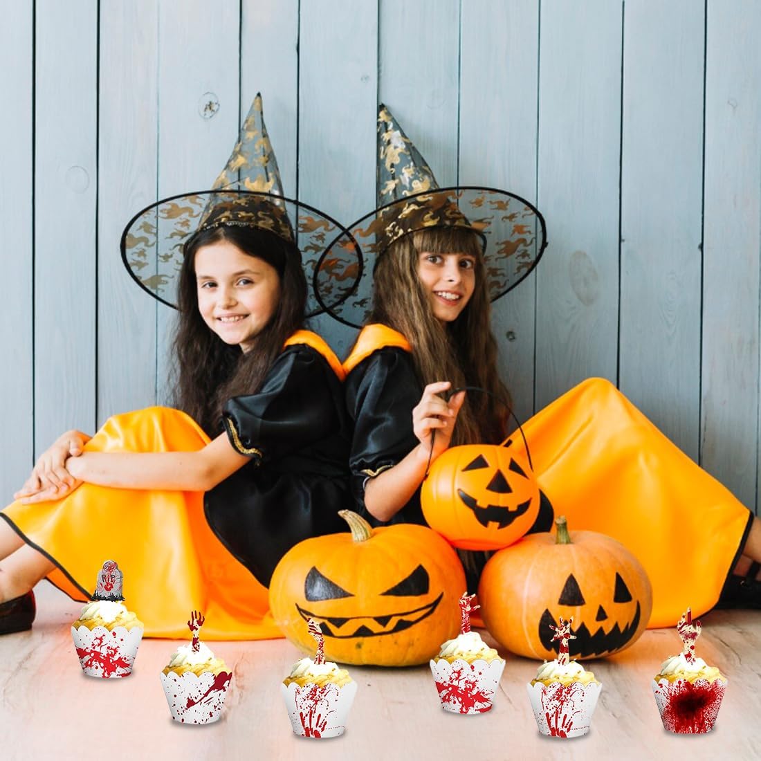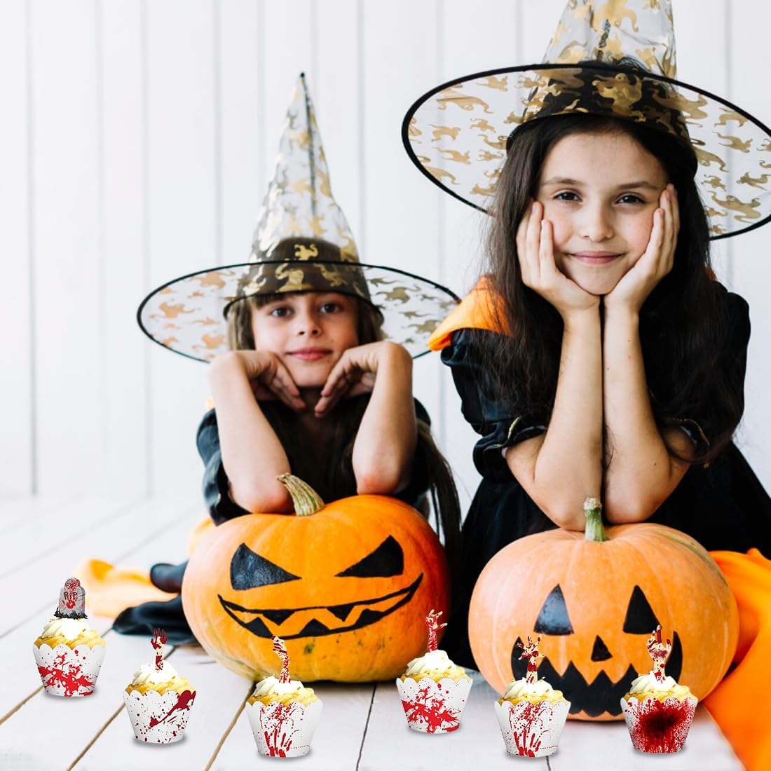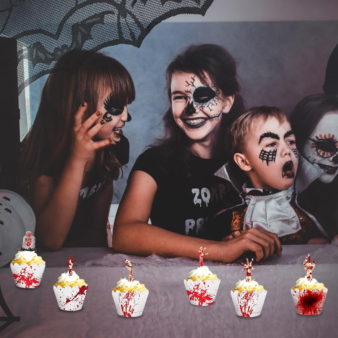 Set di Decorazioni di Halloween da 48 Pezzi: Riceverai 24 wrapper per cupcake e 24 topper con 8 motivi horror unici come mani di zombie insanguinate e lapidi, ideali per una decorazione da festa spaventosa. Atmosfera Spaventosa per la Tua Festa: Trasforma il tuo buffet in una scena del terrore; i design dettagliati e insanguinati creano il perfetto fattore di paura e impressionano i tuoi ospiti a ogni festa di Halloween. Decorazioni Versatili per Dolci e Cibo: Non solo per cupcake e muffin, ma anche perfette come decorazioni per torte, spiedini per brownies, cubetti di formaggio o frutta, per arricchire ogni cibo di Halloween. Materiale di Alta Qualità e Sicuro: Realizzato in cartoncino robusto con stampa chiara; i wrapper sono senza fondo e facili da assemblare, si prega di notare che le decorazioni non sono commestibili e non devono essere messe in forno. Ideale per Halloween e Feste a Tema: Il complemento perfetto per le tue preparazioni di Halloween e la decorazione definitiva per la tua festa horror, carnevale o festa a tema horror, per rendere snack e dolci indimenticabili.