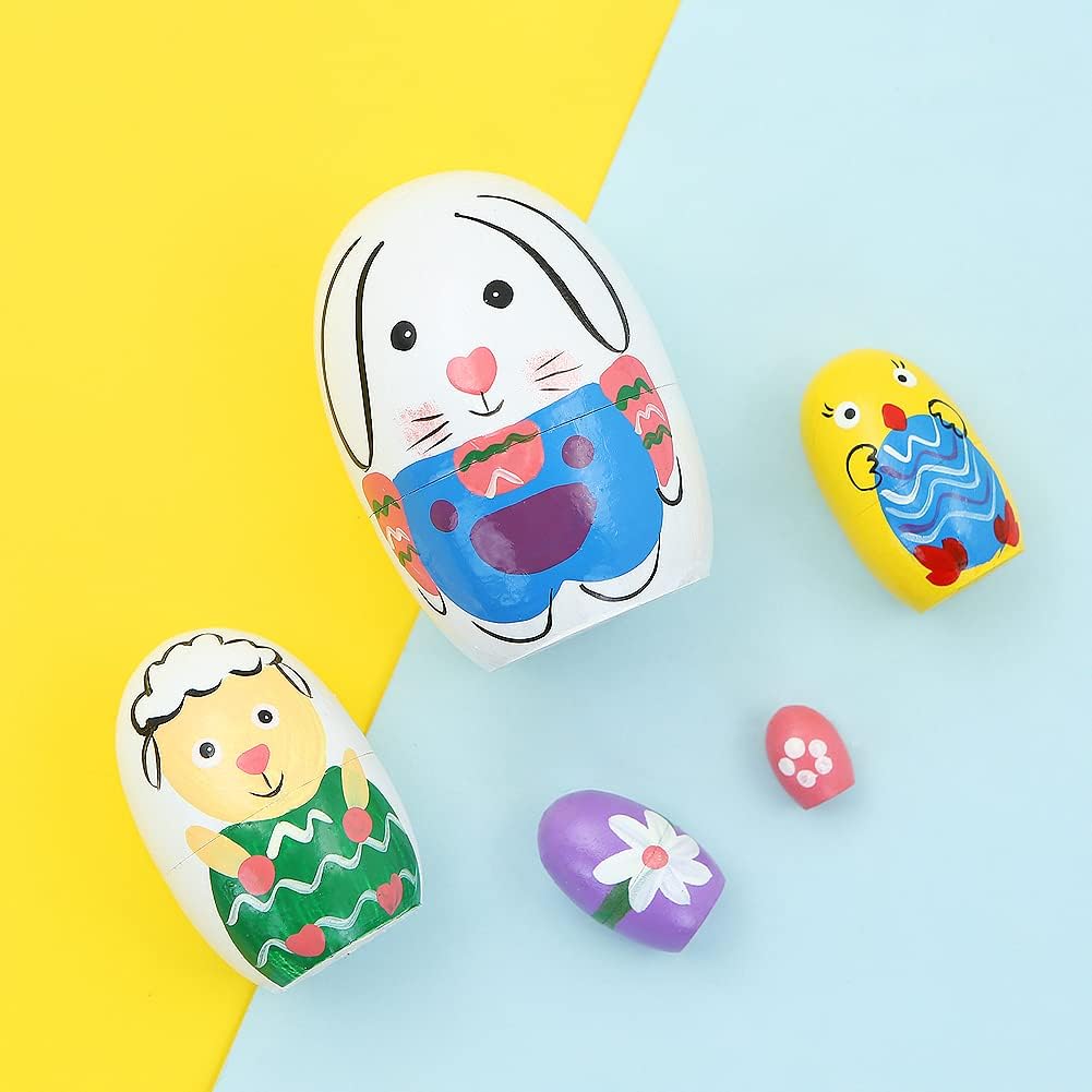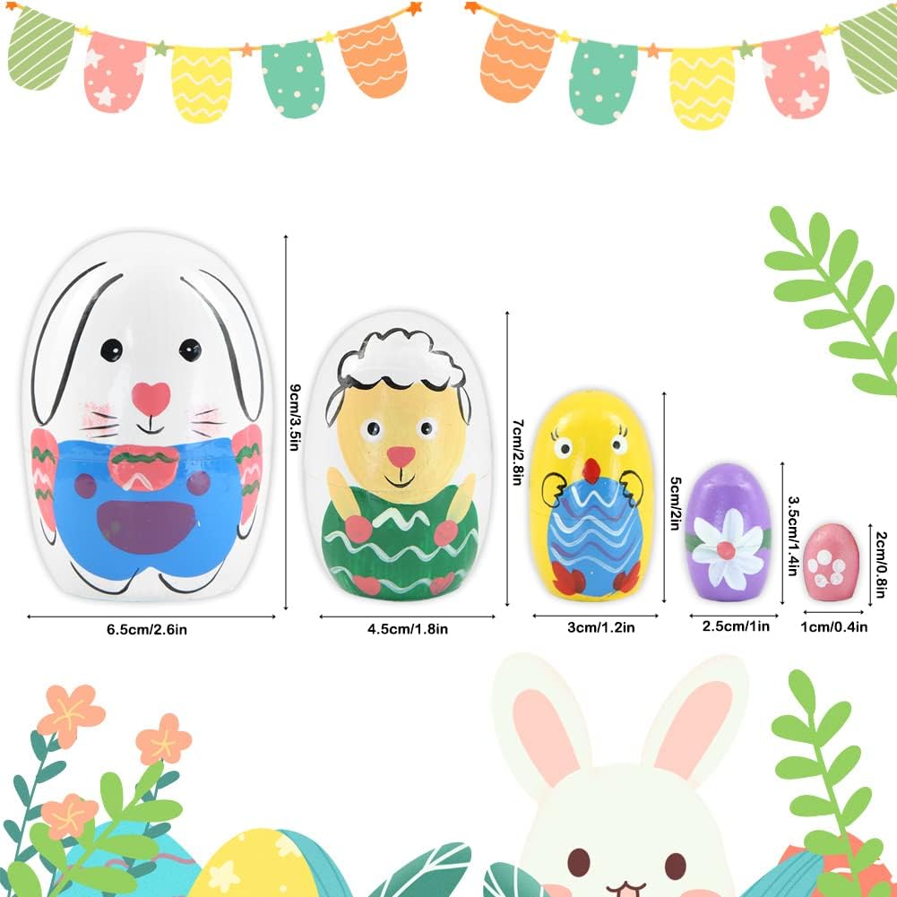 🎁 Ogni strato di una bambola che nidifica con un coniglio ha un motivo diverso: coniglio, pecora, gallina e fiore. Ogni pannolino ha un colore diverso, che è molto apprezzato dai bambini. 🎁 È disponibile in 5 colori e sta diminuendo di dimensioni. Quello più piccolo è posto all'interno dell'altro più grande. Può stare in piedi perché la sua base è piatta. 🎁 È realizzato in legno di alta qualità, fatto a mano, squisito, dipinto a mano, sicuro e senza odore pungente. 🎁 Le nostre bambole in legno utilizzano colori vivaci per supportare il riconoscimento dei colori dei bambini e per aumentare la consapevolezza dei bambini sui colori e su una varietà di animali e piante. Promuovere lo sviluppo della prima infanzia. 🎁 Adatto per la decorazione domestica. Può essere utilizzato per riporre snack, articoli vari, gioielli, ecc. per Capodanno, Natale, Pasqua, San Valentino, compleanni e altre feste, regali speciali per amici, famiglia e bambini.