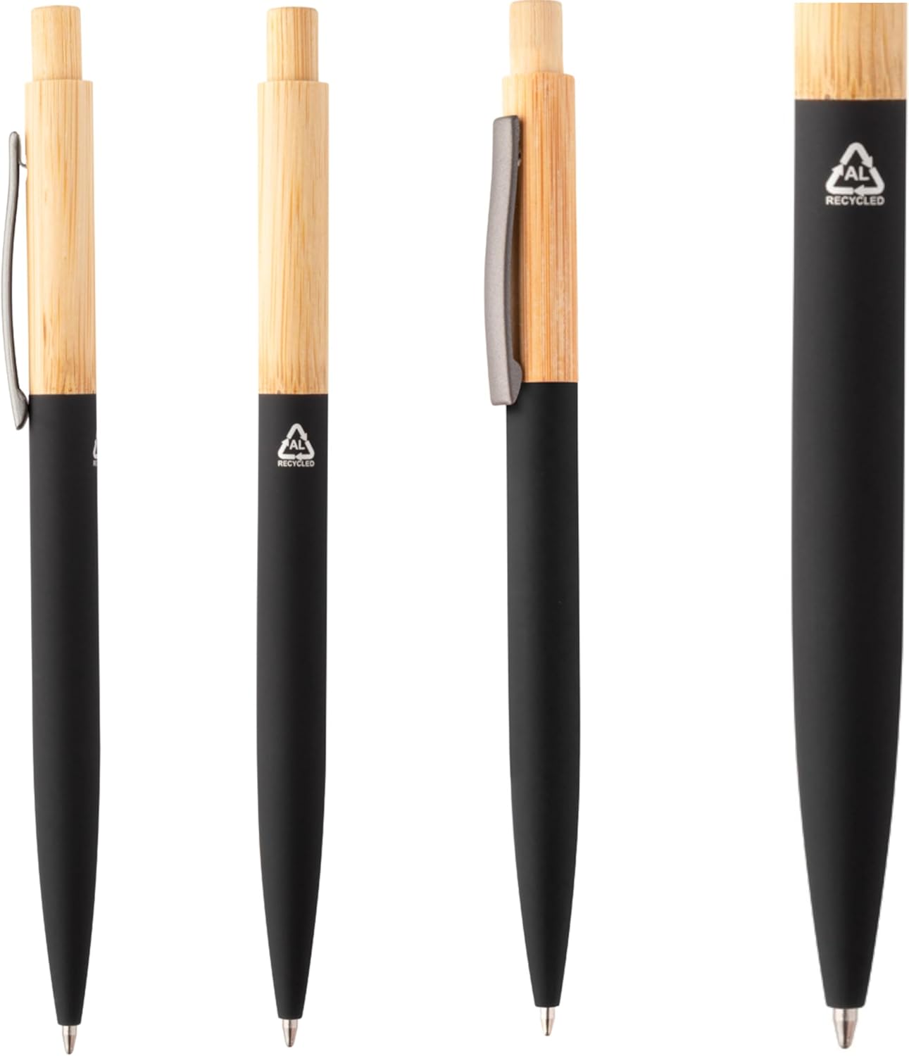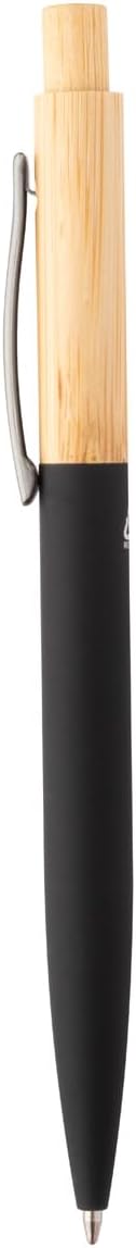 Set di 5 penne a sfera sostenibili: penne ecologiche in bambù e alluminio riciclato con superficie gommata soft touch per una piacevole sensazione di scrittura, ideali per ufficio, scuola, università e casa. Design elegante e moderno: elegante combinazione di bambù naturale e clip in metallo gunmetal, completata da un rivestimento gommato di alta qualità per una tenuta ottimale, la penna ecologica perfetta per l'uso quotidiano. Durevole ed ecologico: grazie al mix sostenibile di materiali di legno di bambù e metallo riciclato, un'alternativa ecologica alle tradizionali penne a sfera in plastica, per una scrittura sostenibile con stile. Scrittura piacevole e precisa: la mina blu di qualità garantisce una scrittura fluida e uniforme, ideale per appunti, disegni, diari, schizzi o come penna promozionale per aziende. Idea regalo perfetta e articolo promozionale: penna a sfera di alta qualità per partner commerciali, colleghi, studenti o studenti, ideale come regalo promozionale, gadget per ufficio sostenibile.