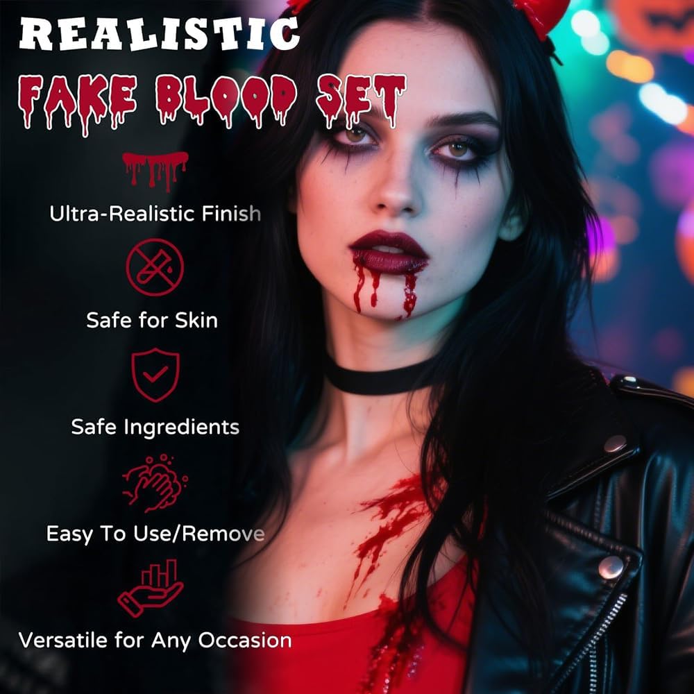 Descrizione prodotto Come usare: fissare la porta terminale a punta inclusa al corpo della bottiglia. Puoi semplicemente esprimere il sangue falso e creare un effetto di flusso sanguigno libero. Applicare sulla pelle con spugne e punte delle dita per creare abrasioni e strutture di ferite realistiche. Usa questo sangue falso per creare un look unico di Halloween. Pulizia: il sangue falso lavabile è un salvavita per i costumi di Halloween, specialmente per bambini e famiglie. Questo sangue artificiale è appositamente formulato per essere facilmente lavato con acqua calda di sapone. Se è presente un residuo di pigmento, rimuoverlo con un rimuovente del trucco. Le macchie di sangue artificiali sui vestiti possono essere rimosse facilmente immergendoli in detergente e acqua calda per un'ora. Avviso di sicurezza NO