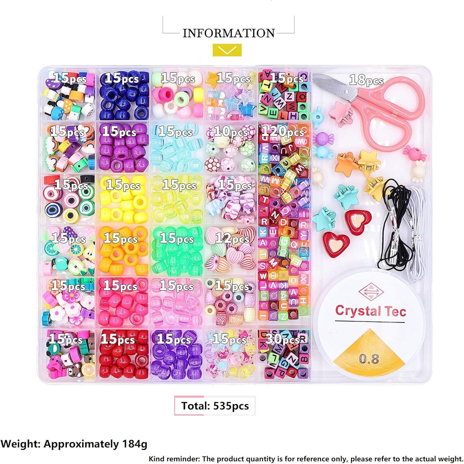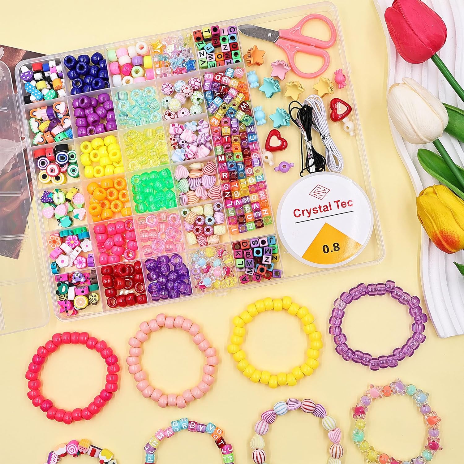 Materiali di alta qualità: i kit di perline per bambini in plastica utilizzati per i braccialetti sono accuratamente lavorati, con una superficie liscia e una forma perfetta, ogni perla è progettata con precisione per offrirti un'esperienza di creazione di gioielli eccezionale. Divertiti: fai da te perline gioielli per bambini artigianali, i bambini approfondiscono la loro percezione e l'amore per i colori, il nostro set di gioielli fai-da-te non solo favorisce il lato artistico, ma incoraggia anche lo sviluppo giocoso della comprensione e dell'apprezzamento del colore. Ha molti usi: Friendship braccialetto kit crea collane, bracciali, acconciature, portachiavi e molti altri progetti artigianali e gioielli, libera la tua creatività con la nostra abbagliante tavolozza di colori! Creazione fai da te: queste scatole di perle per bambini artigianali non sono solo vantaggiose per lo sviluppo creativo dei bambini, ma offrono anche agli anziani un'attività pacifica senza compromettere la coordinazione mano-occhio, il nostro set di gioielli fai da te è adatto a tutte le fasce d'età. Contenuto della confezione: Avrai 535 pezzi scatola di perle per braccialetto bambino kit, nella scatola trasparente ci sono anche 1 rotoli di elastici, un rotolo di elastici trasparenti e alcuni piccoli accessori per aiutarti a realizzare le tue perle.